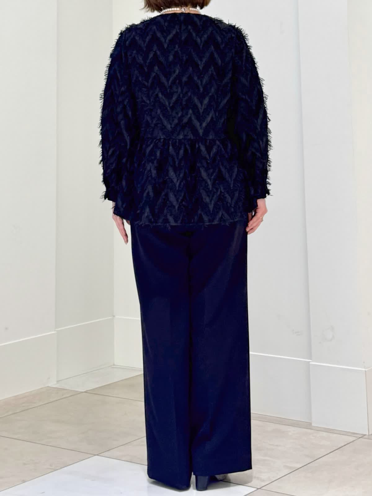 卒業・入学からお呼ばれまでさまざまなセレモニーシーンに活躍するブラウスとパンツです。