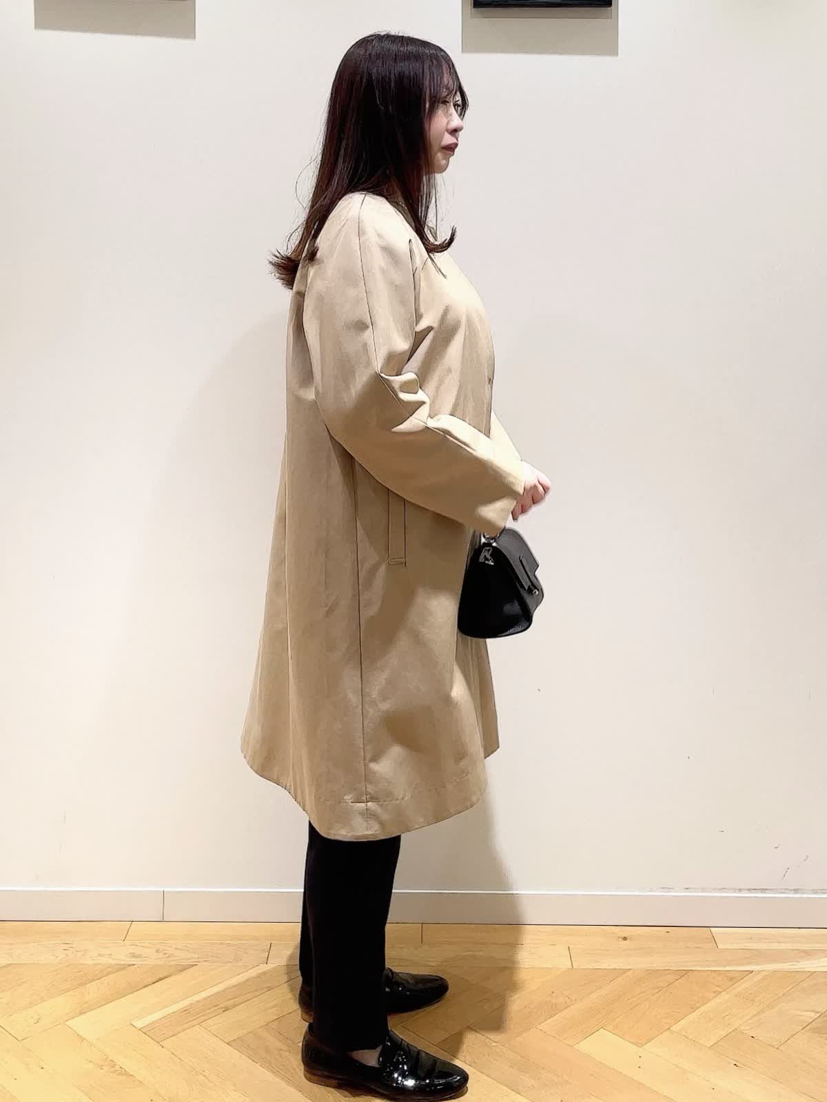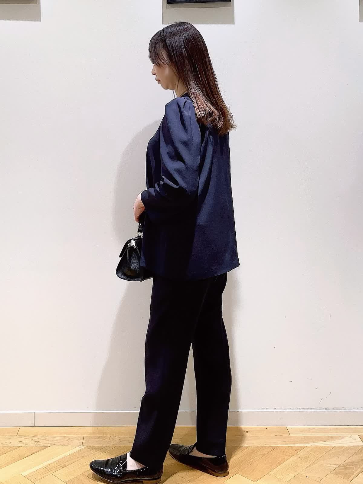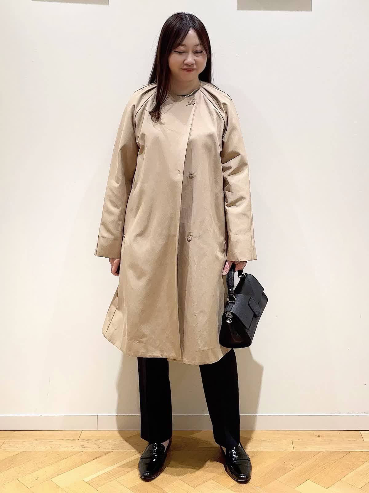 【着用サイズ】全て9号【着用カラー】コート:ベージュ ブラウス:ネイビー パンツ:ネイビー バック:ブラック セレモニースタイル。ノーカラーのコートは程よいAラインシルエットで、シンプルなデザインなのでキレイめでもカジュアルなコーディネートにもマッチします。前を開けても閉じても着れる2way仕様。ラグランスリーブでジャケットの上からでも楽に着れます。同素材のブラウスとパンツはジャケットなしでもきちんと感のあるセットアップです。袖のタックデザインも盛り過ぎず上品な印象です。パンツは後ろゴム仕様のテーパードなので単品使いもしやすく1本あると重宝します。卒入学式やお仕事、お食事会など様々なシーンでお使いいただけます。シワになりにくい素材で手洗い可能です。
