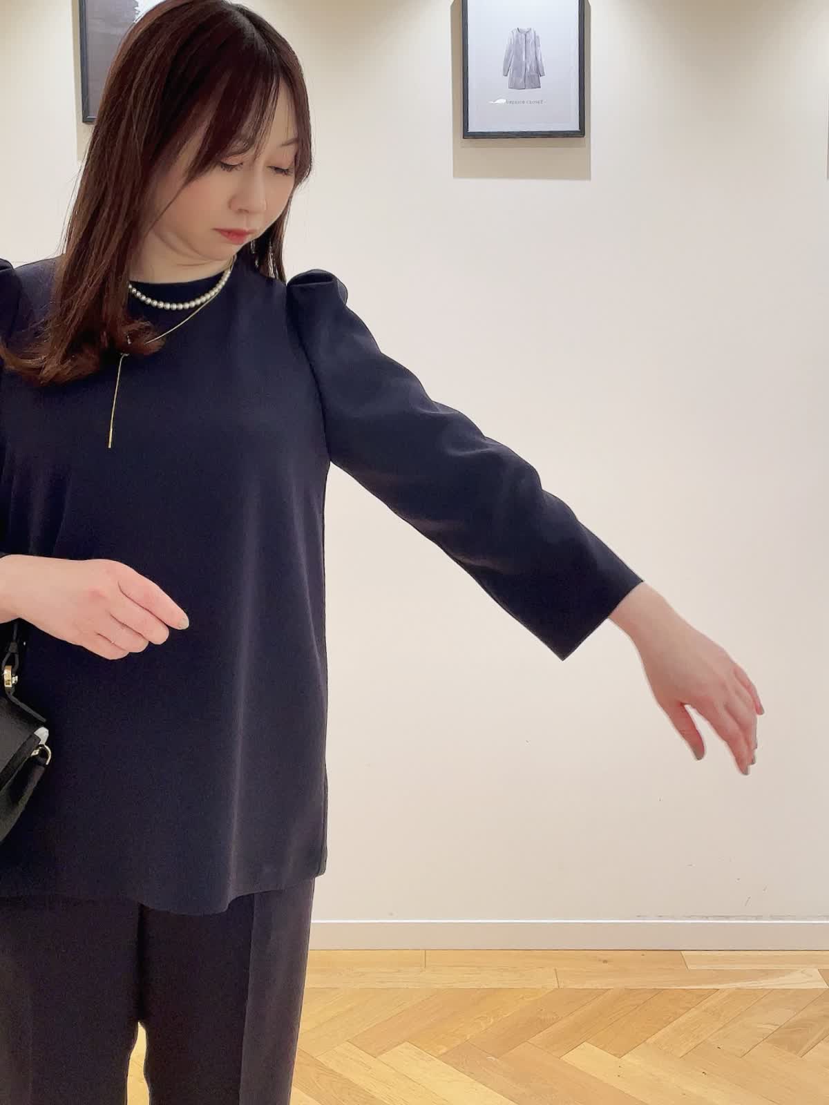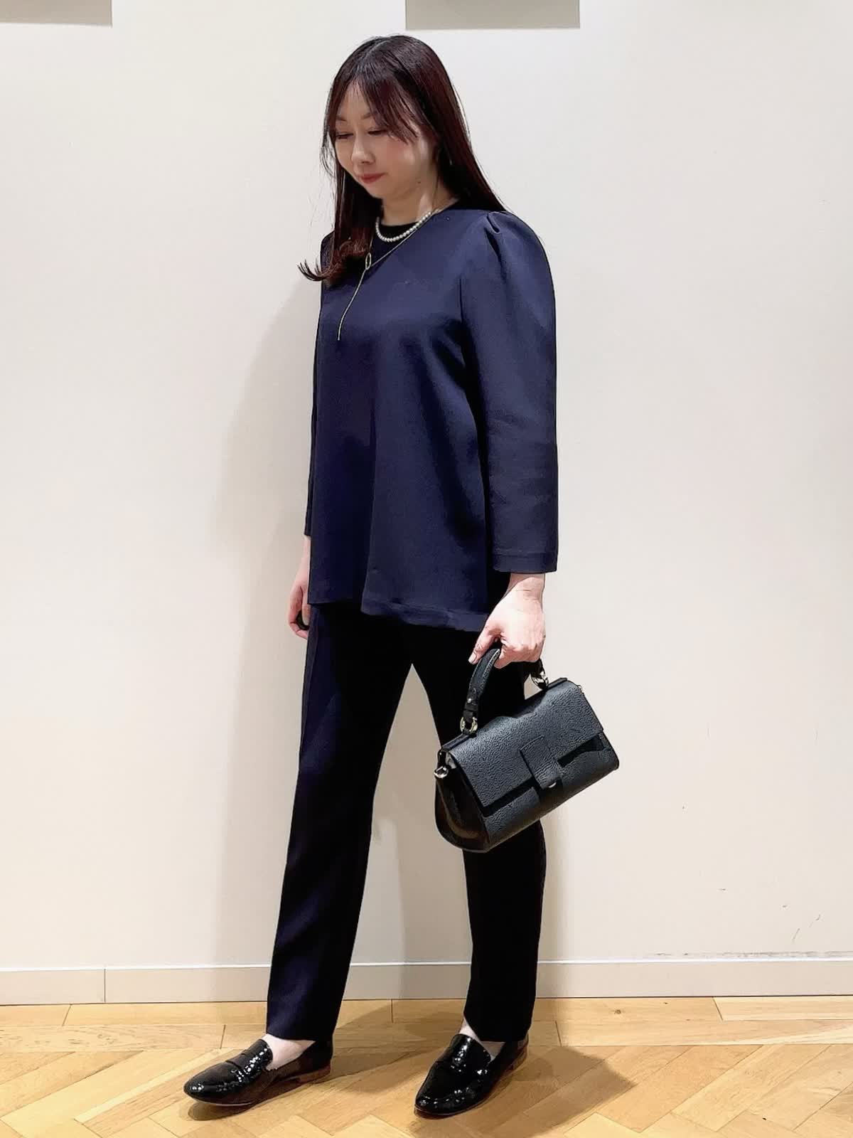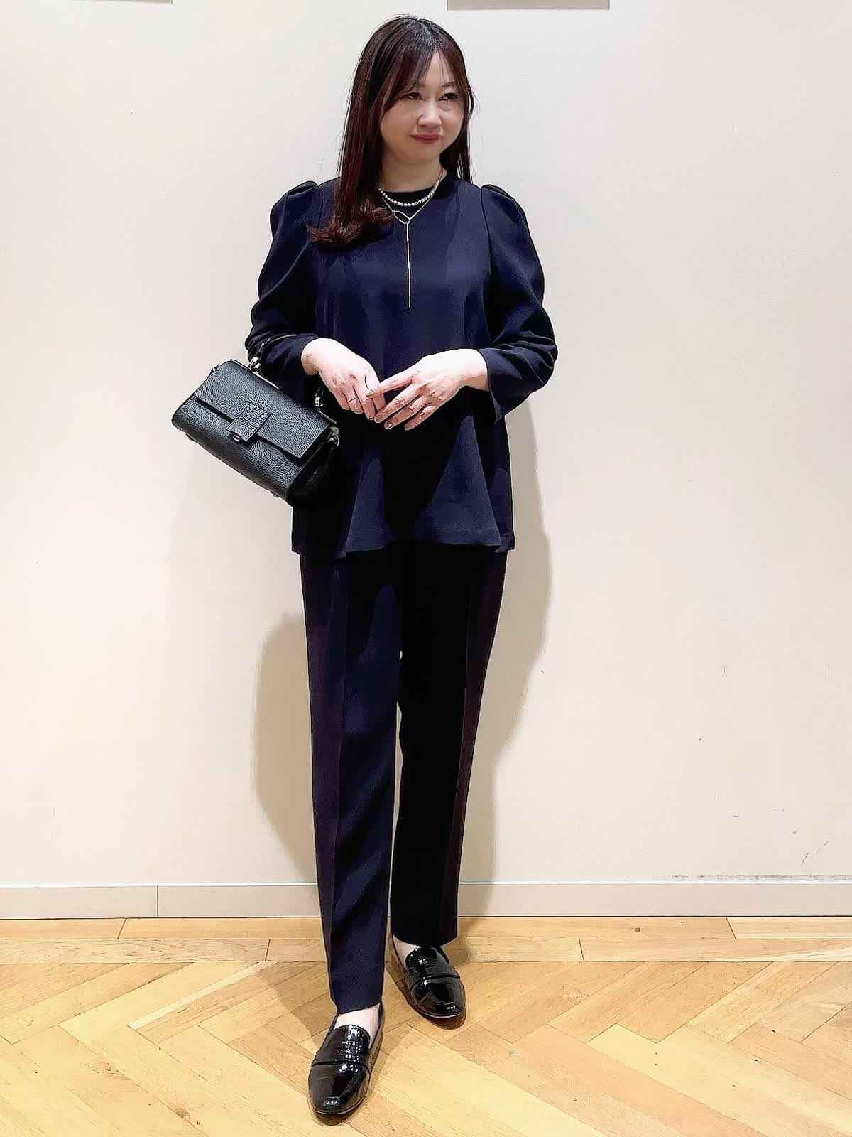 【着用サイズ】全て9号【着用カラー】コート:ベージュ ブラウス:ネイビー パンツ:ネイビー バック:ブラック セレモニースタイル。ノーカラーのコートは程よいAラインシルエットで、シンプルなデザインなのでキレイめでもカジュアルなコーディネートにもマッチします。前を開けても閉じても着れる2way仕様。ラグランスリーブでジャケットの上からでも楽に着れます。同素材のブラウスとパンツはジャケットなしでもきちんと感のあるセットアップです。袖のタックデザインも盛り過ぎず上品な印象です。パンツは後ろゴム仕様のテーパードなので単品使いもしやすく1本あると重宝します。卒入学式やお仕事、お食事会など様々なシーンでお使いいただけます。シワになりにくい素材で手洗い可能です。