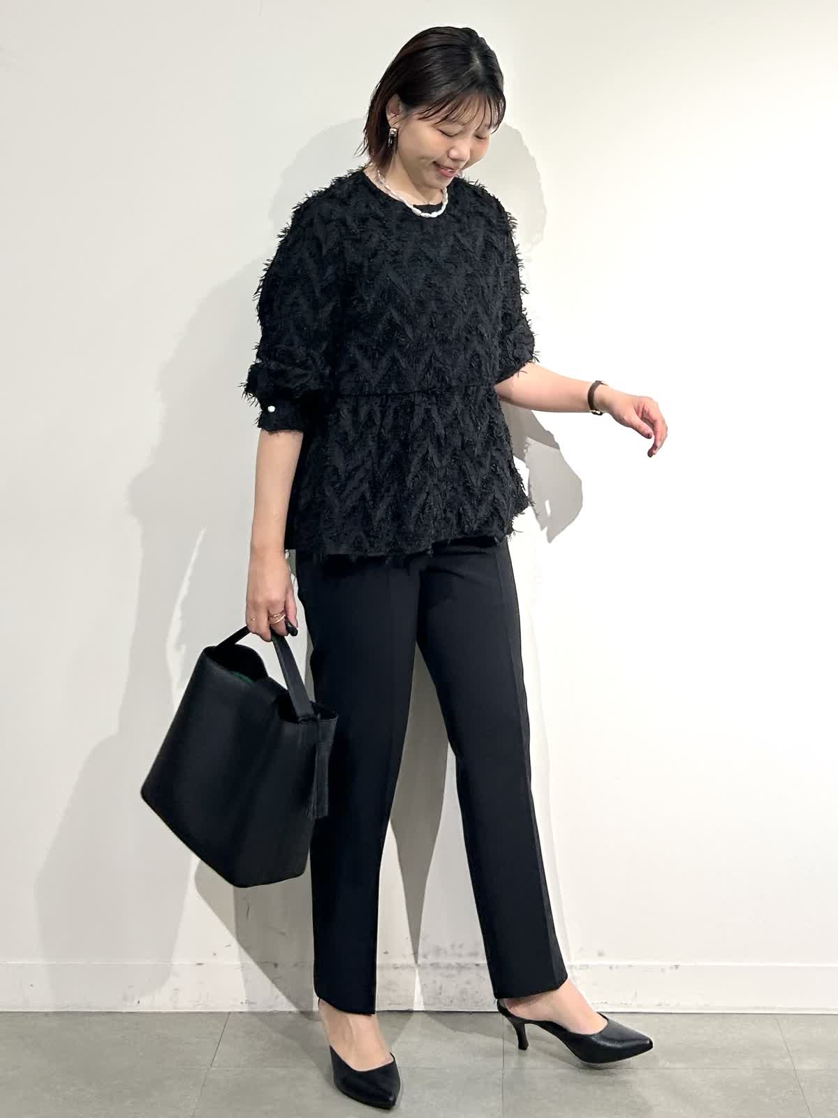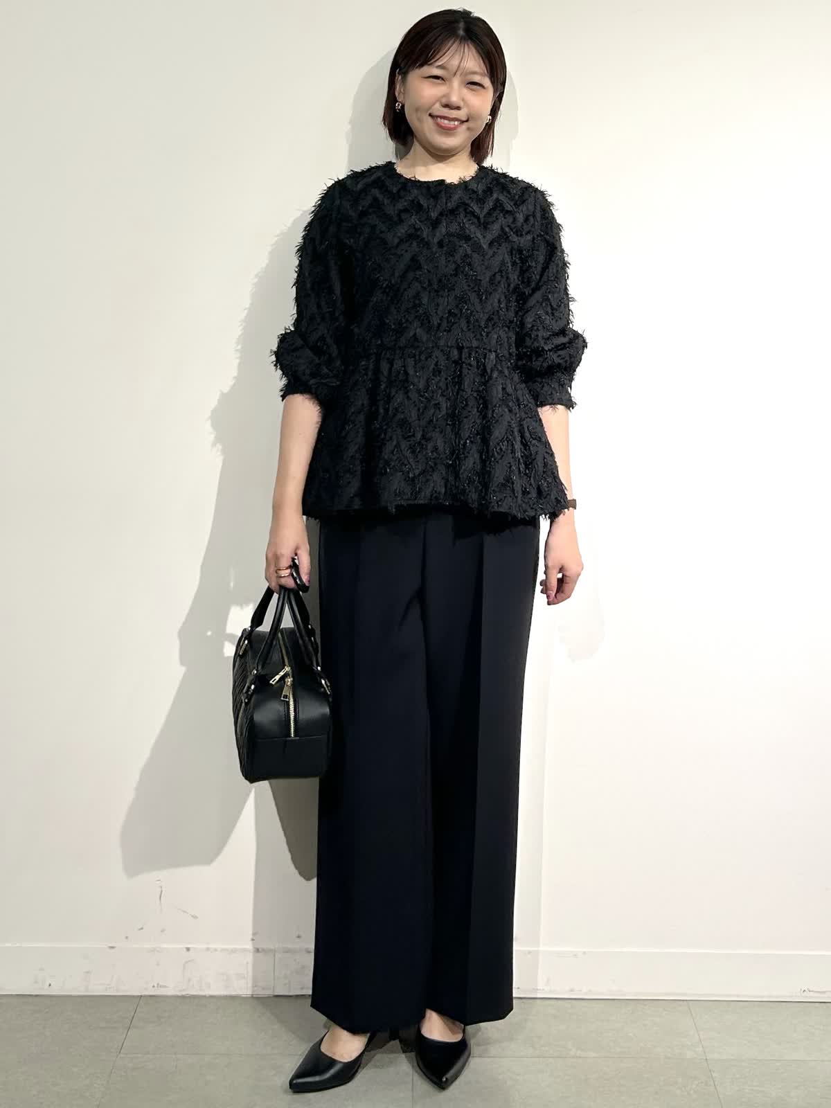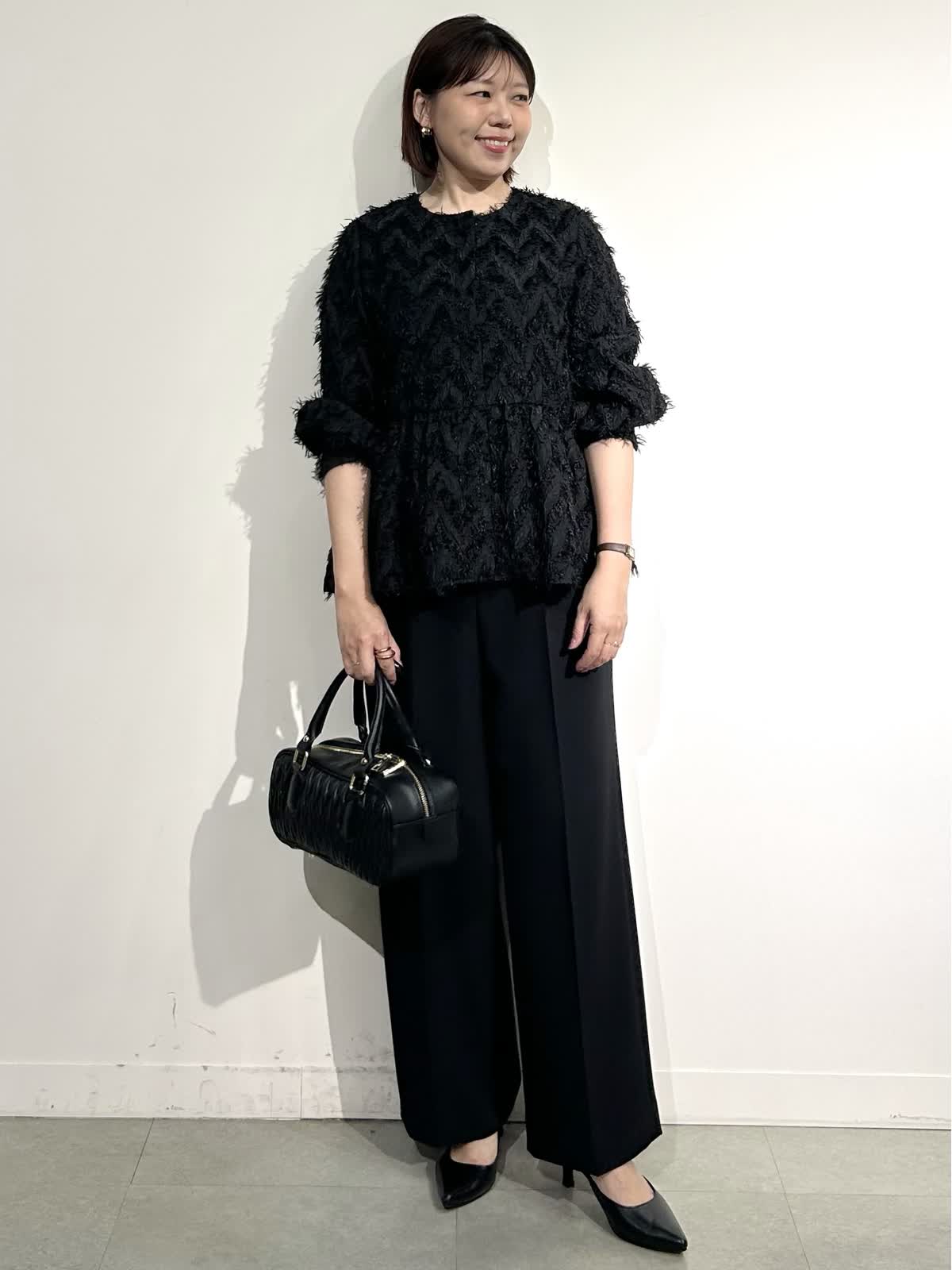 セレモニーなどのフォーマルシーンに大人かわいいパンツスタイル。