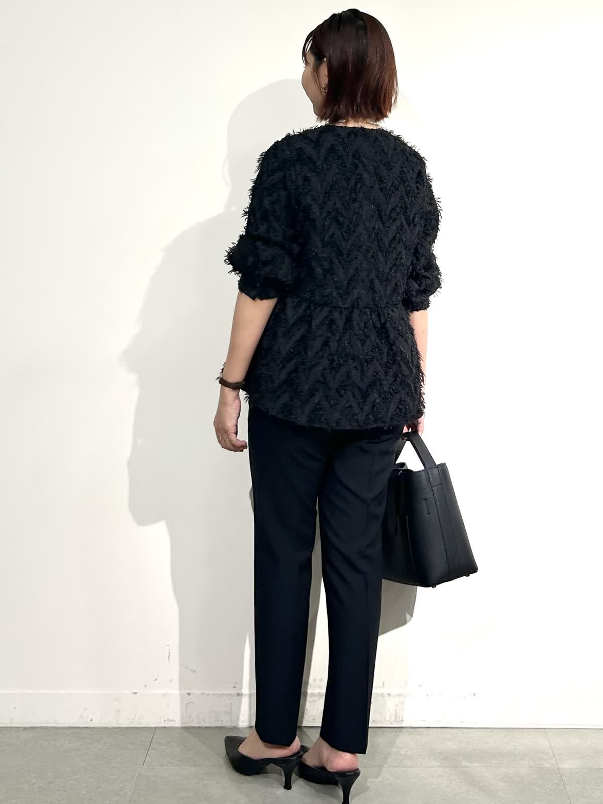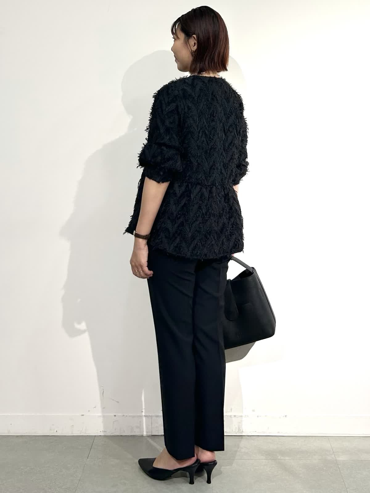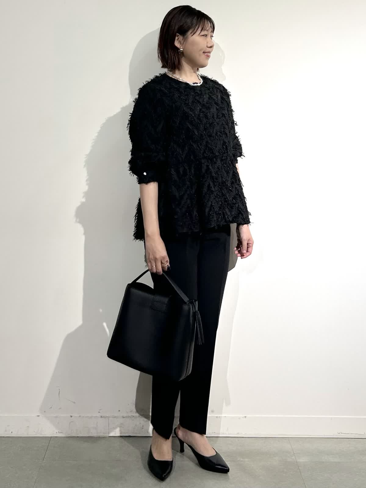 ブラウスはコラボSTORYのこだわりアイテムでジャケットとブラウスのいいとこどり。羽織としても使えて、ブラウスとしても1着で華やかさが出て、ペプラムシルエットでスタイルアップまでかないます。