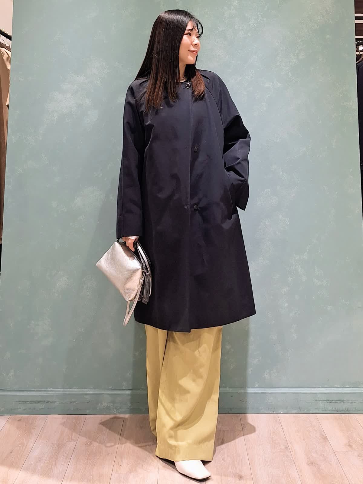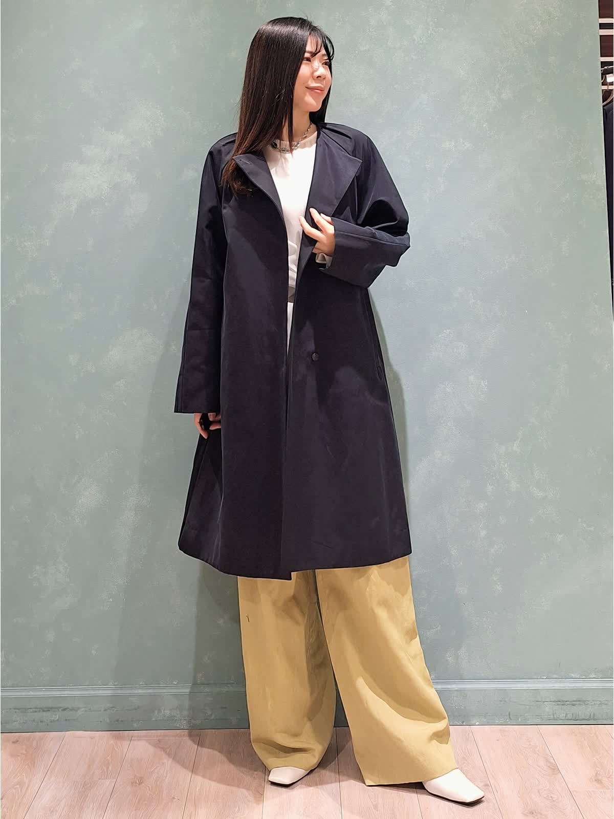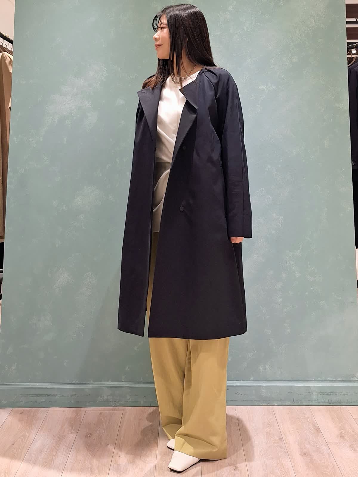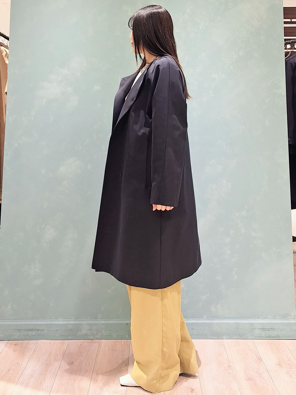 【着用サイズ、カラー】コート:7号、ネイビー ブラウス:9号、オフホワイト パンツ:9号、キミドリ 春の休日お出掛けスタイル。INEDの新作ノーカラーコート。グログラン生地で張りがあり柔らかい。ラグランスリーブで肩回りは体に添う丸みのあるシルエットです。ゆったりめなので、インナーは選ばず羽織って頂けます。今回はラヴェイユのラップブラウス×ラップパンツに合わせて、こなれ感のある大人カジュアルにコーディネートしました。ぜひチェックしてみて下さいね!