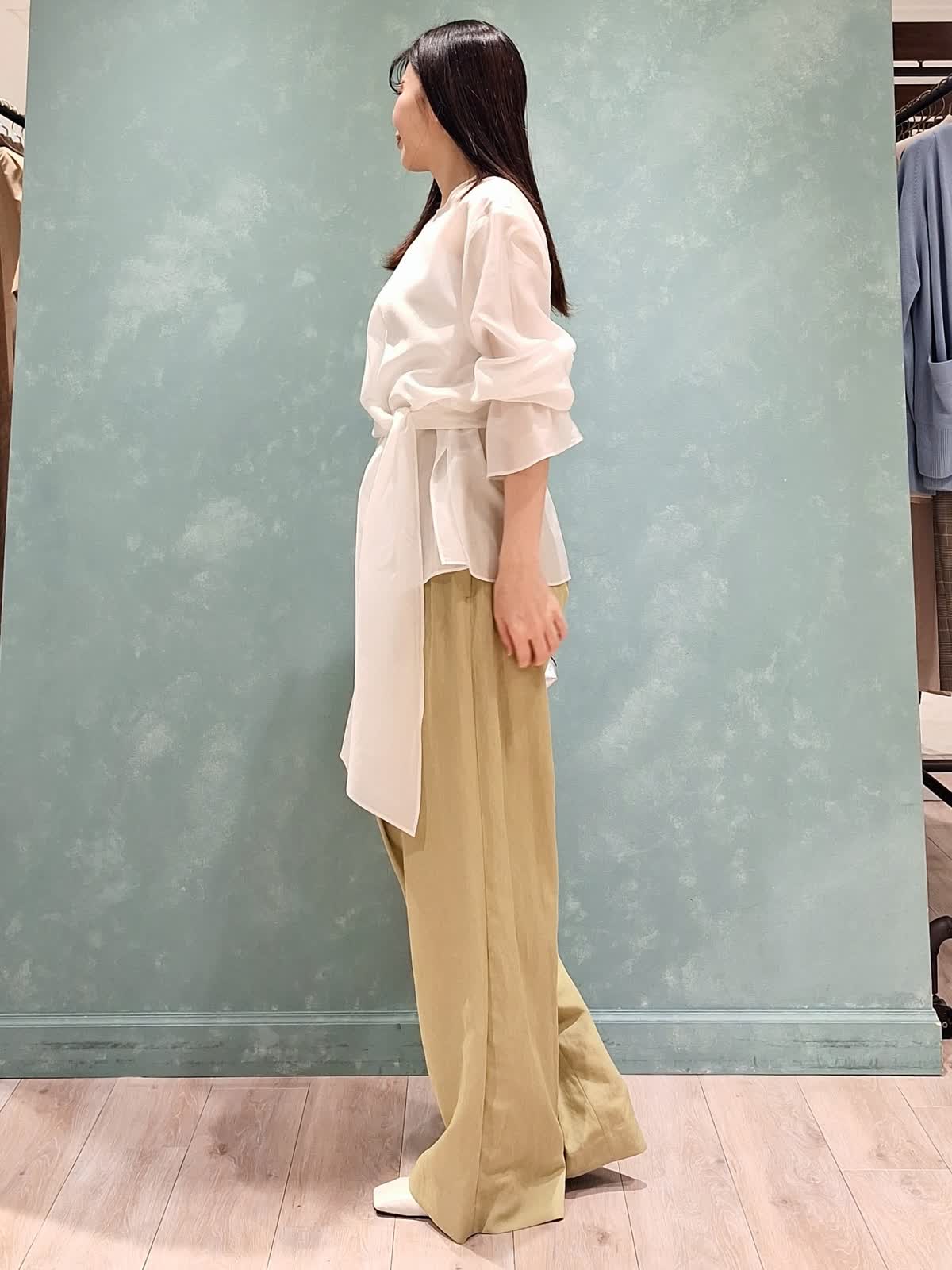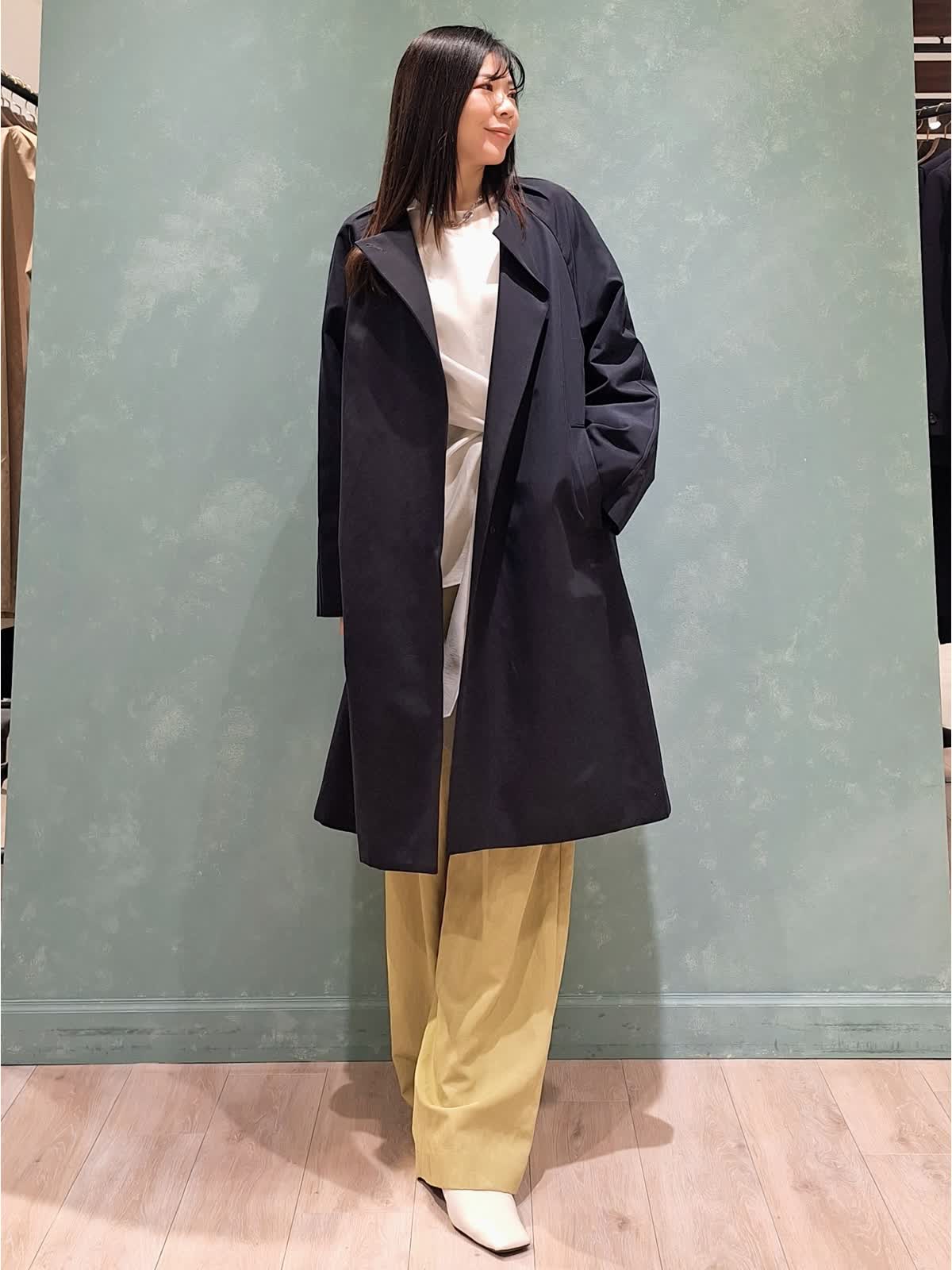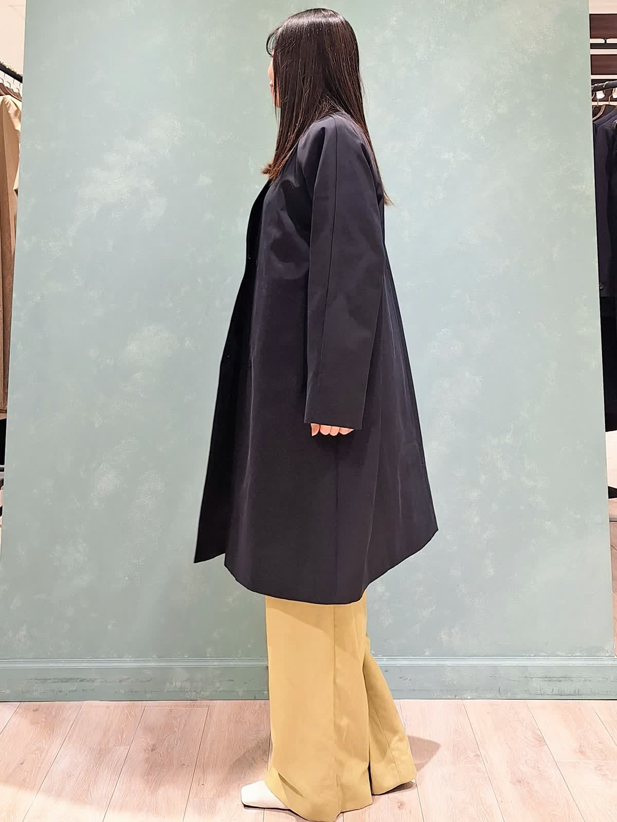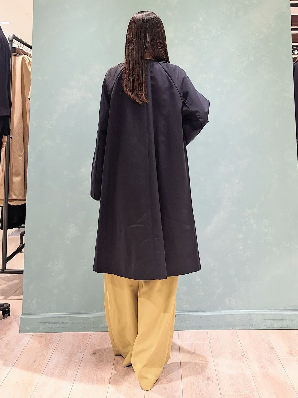 【着用サイズ、カラー】コート:7号、ネイビー ブラウス:9号、オフホワイト パンツ:9号、キミドリ 春の休日お出掛けスタイル。INEDの新作ノーカラーコート。グログラン生地で張りがあり柔らかい。ラグランスリーブで肩回りは体に添う丸みのあるシルエットです。ゆったりめなので、インナーは選ばず羽織って頂けます。今回はラヴェイユのラップブラウス×ラップパンツに合わせて、こなれ感のある大人カジュアルにコーディネートしました。ぜひチェックしてみて下さいね!