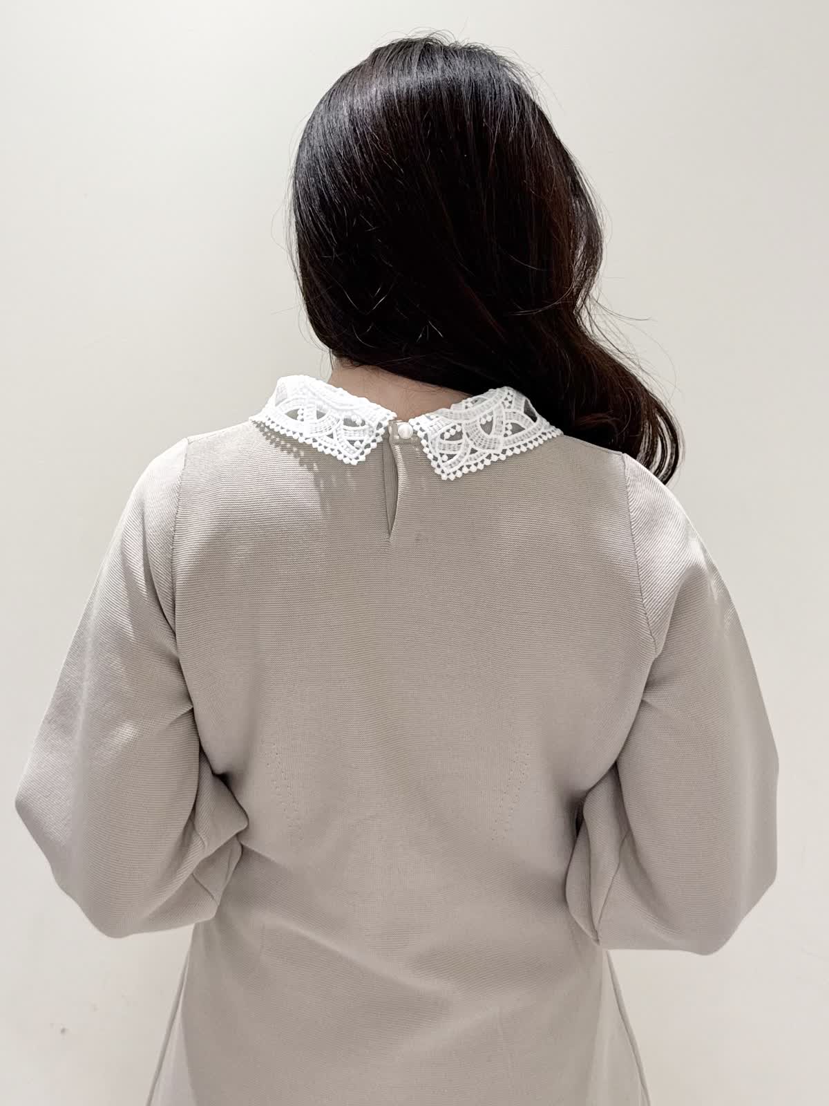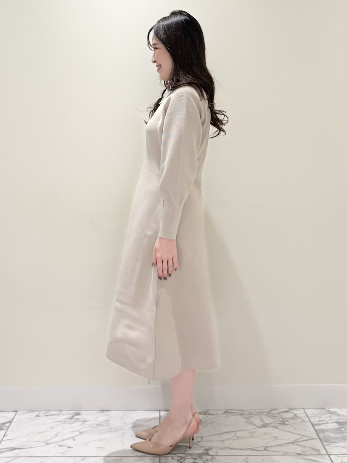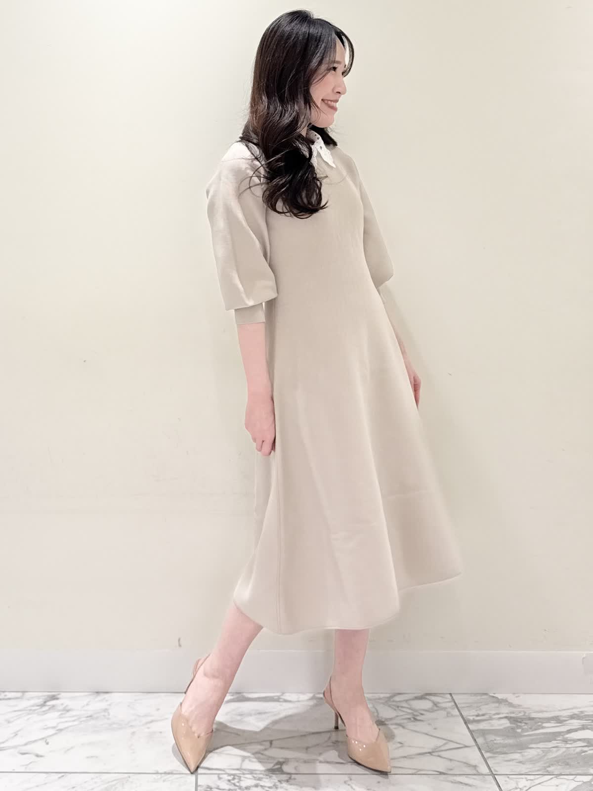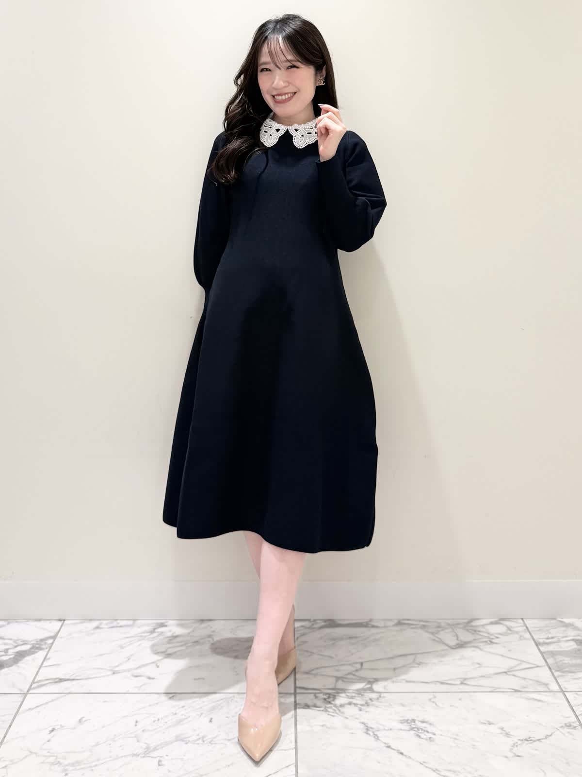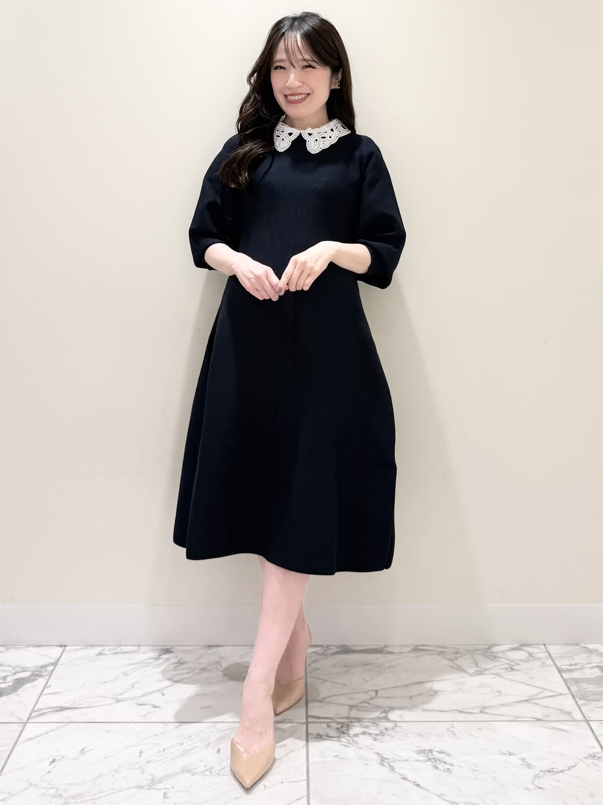 【着用サイズ/カラー】ニットワンピース:7号/ベージュ?ネイビー 今から着られる春の新作ワンピース♪おでかけやお食事会、コーディネートに困った時の必需品、ニットワンピース!襟レースが上品できちんとした印象、顔周りを明るく見せてくれます。取り外しできるので、シンプルにクルーネック仕様でネックレスをしてもおすすめです。柔らかいニット生地で着心地◎今の時期から着やすい袖丈に程よいボリュームスリーブはたくし上げたふんわり袖も可愛いです。フィット&フレアシルエットで着るだけでスタイルアップが叶い、長すぎない着丈がバランス良く着ていただけます。いつものサイズで大丈夫です。
