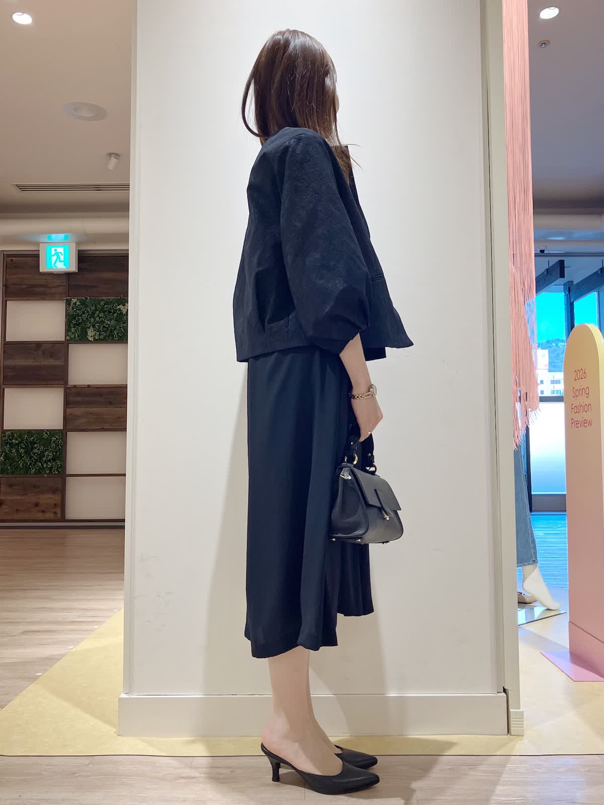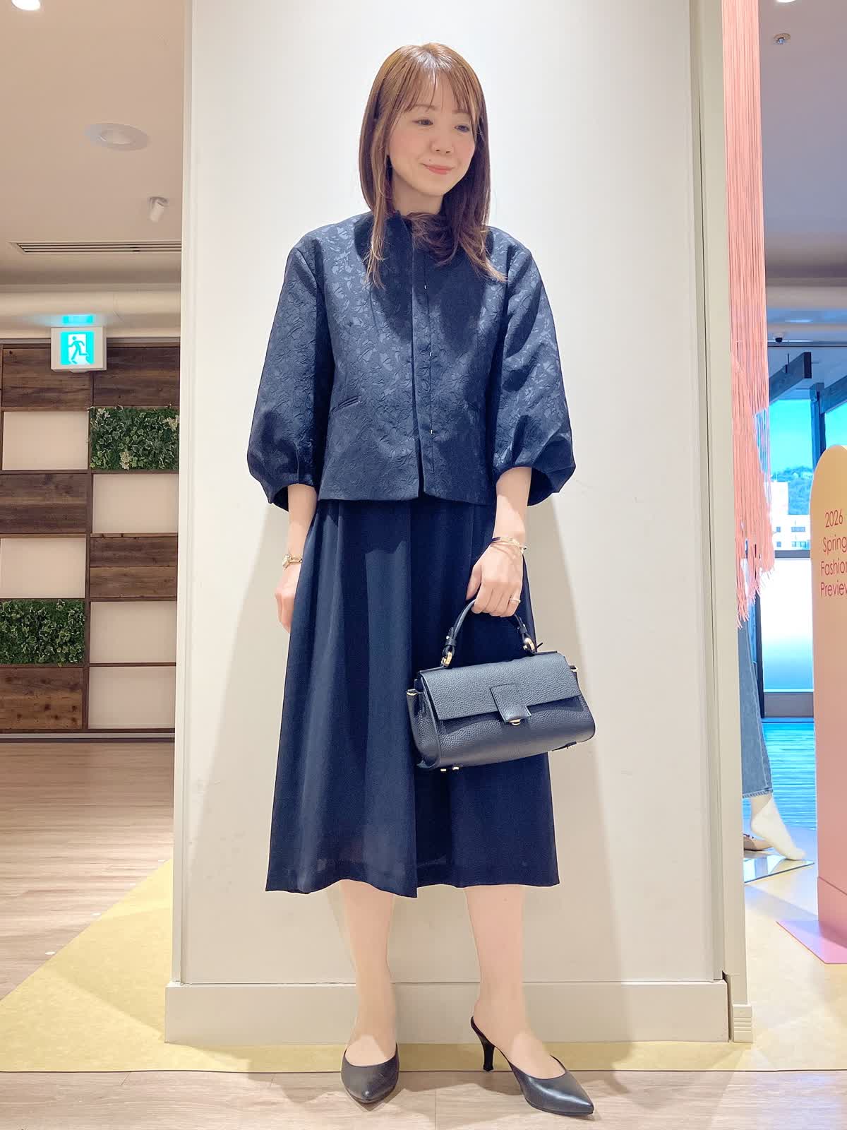 【着用サイズ】ジャケット:9号 ワンピース:9号【着用カラー】ジャケット:ネイビー ワンピース:ネイビー コーディネートのテーマはセレモニースタイリングです。卒業、入学シーズにおすすめなのが、ジャガードのジャケット。ネイビーなので派手すぎず、お洒落なコーディネートにまとまります。ワンピースの着丈も短めなので、すっきり着られます。 人と差のつく今風なセレモニーのコーディネートにおすすめです。