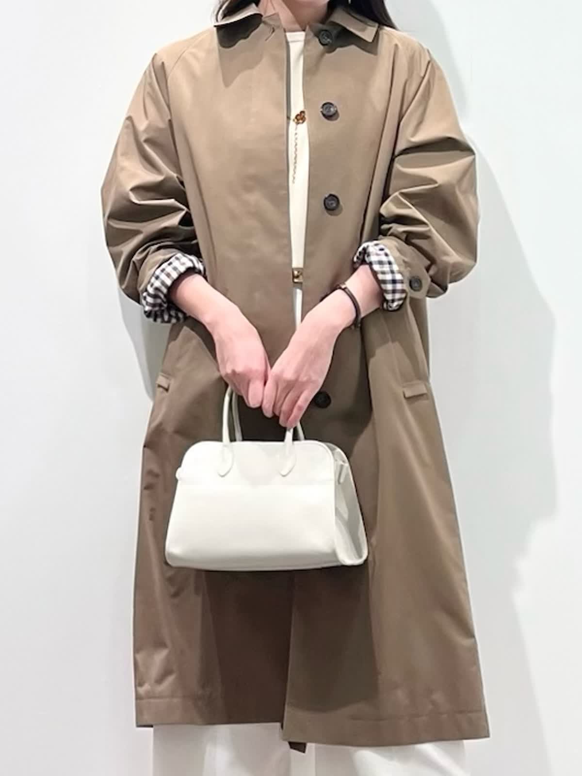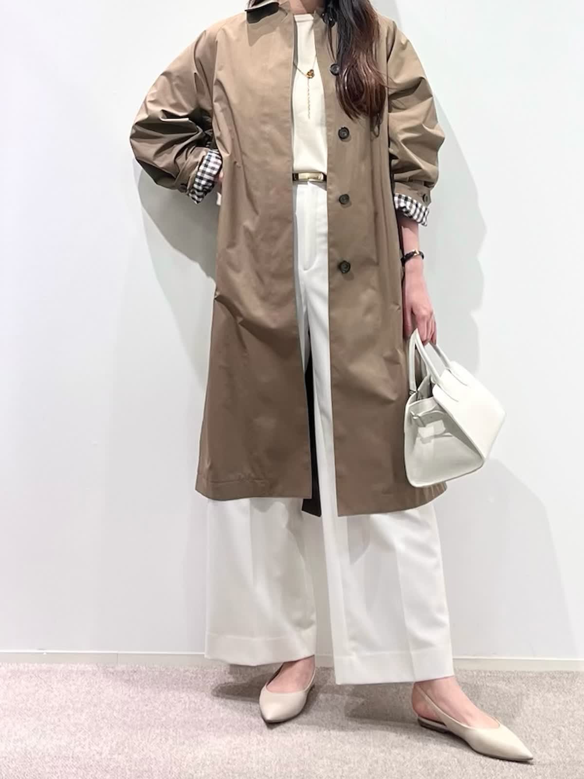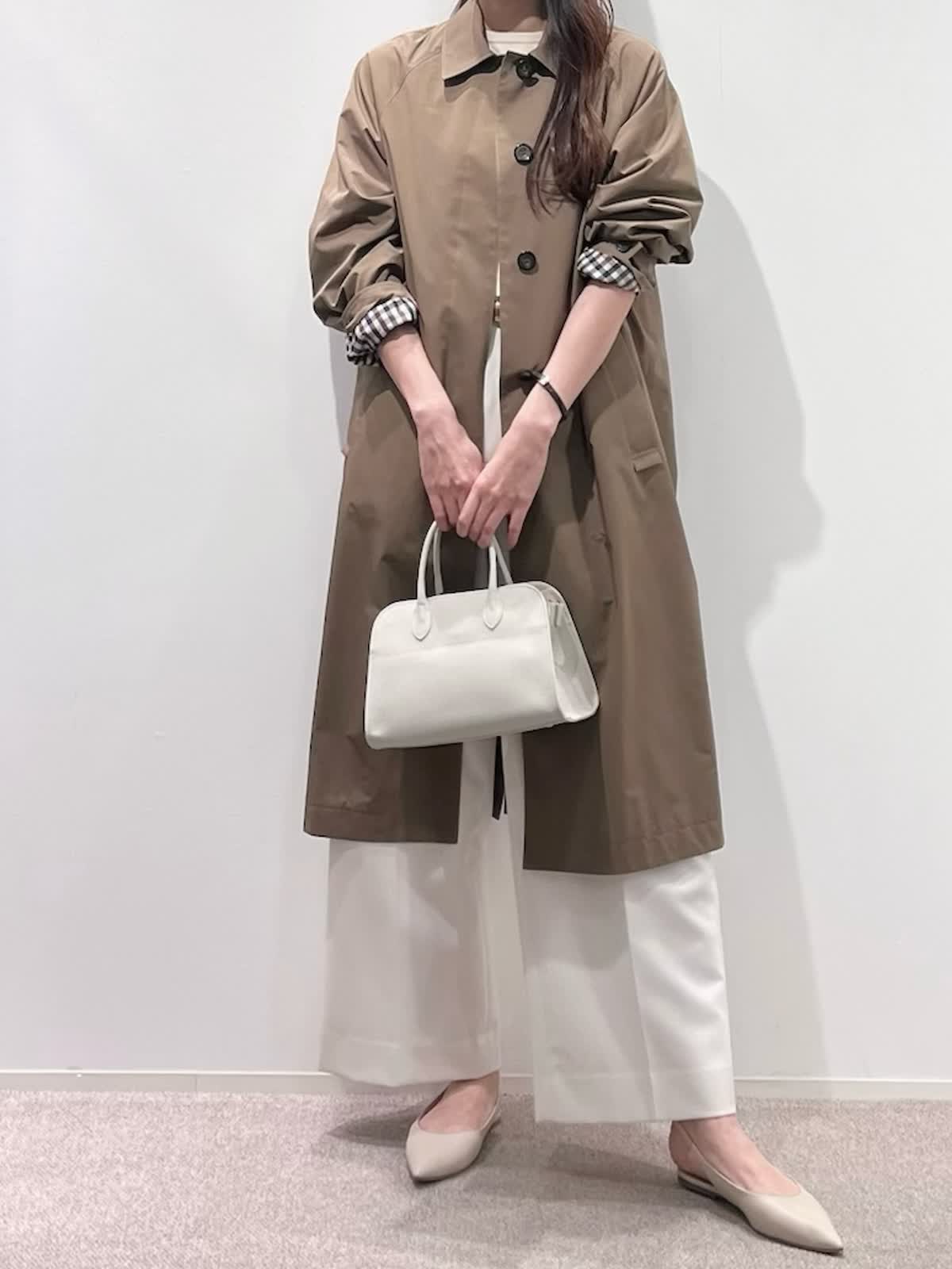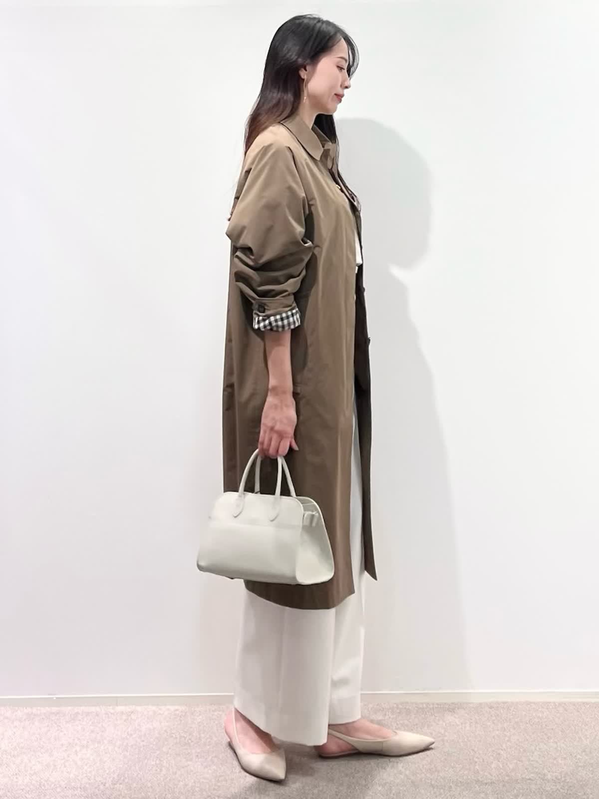 【着用サイズ】コート:9号 カーディガン:9号 ニット:9号 パンツ:9号 【着用カラー】コート:モカチャ カーディガン: ベージュ ニット:ベージュ パンツ:オフホワイト バッグ:グレー 、グレーベージュ 「春のお出かけ王道アウター×パンツコーデ」 軽くて羽織るだけで一気に春顔になる【アクアスキュータム】のステンカラーコート。ゆとりのあるシルエットとロング丈のバランスがすっきり着こなせるデザイン。袖口のチェックの裏地がおしゃれで、こなれ感のある着こなしに。 インナーは、オフィスシーンや休日にも万能なニュアンスカラーのアンサンブルニット。オーバーサイズの1枚着ニットと、ベーシックカーディガンで、単品でも着回し力抜群です。 ロングシーズン活躍出来るおすすめの春コーデです。