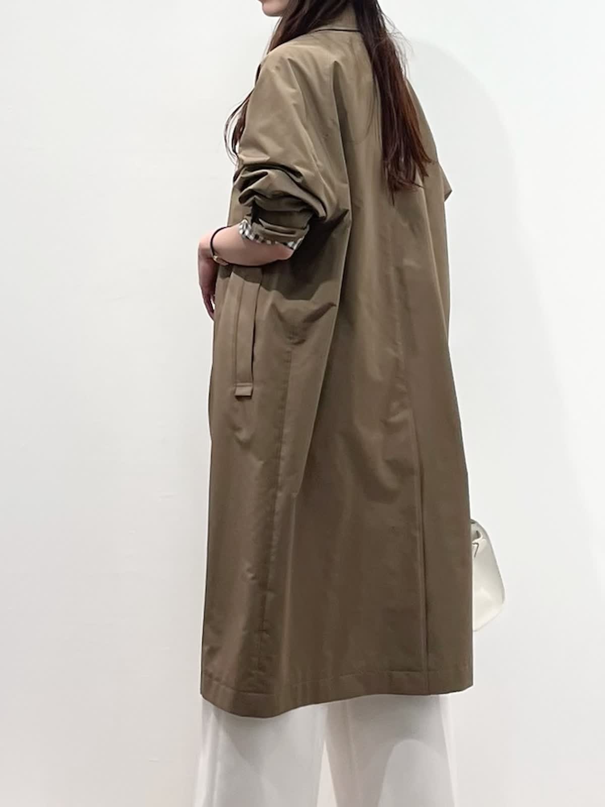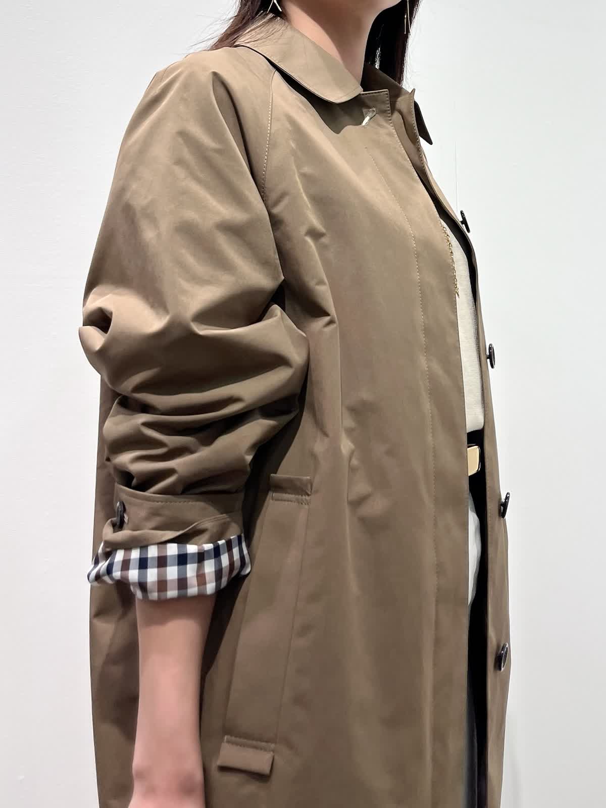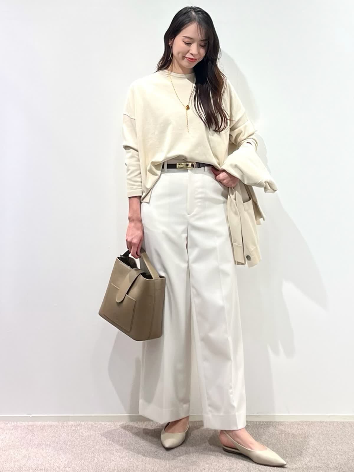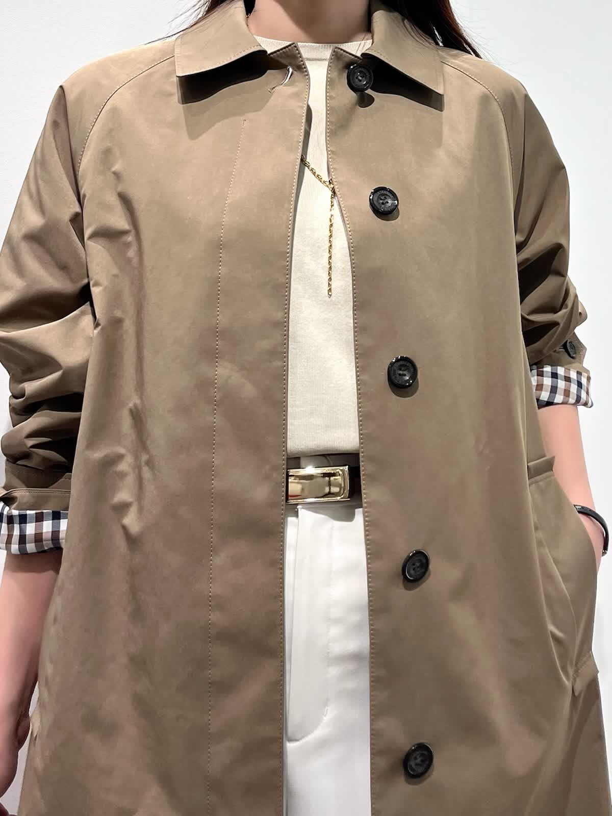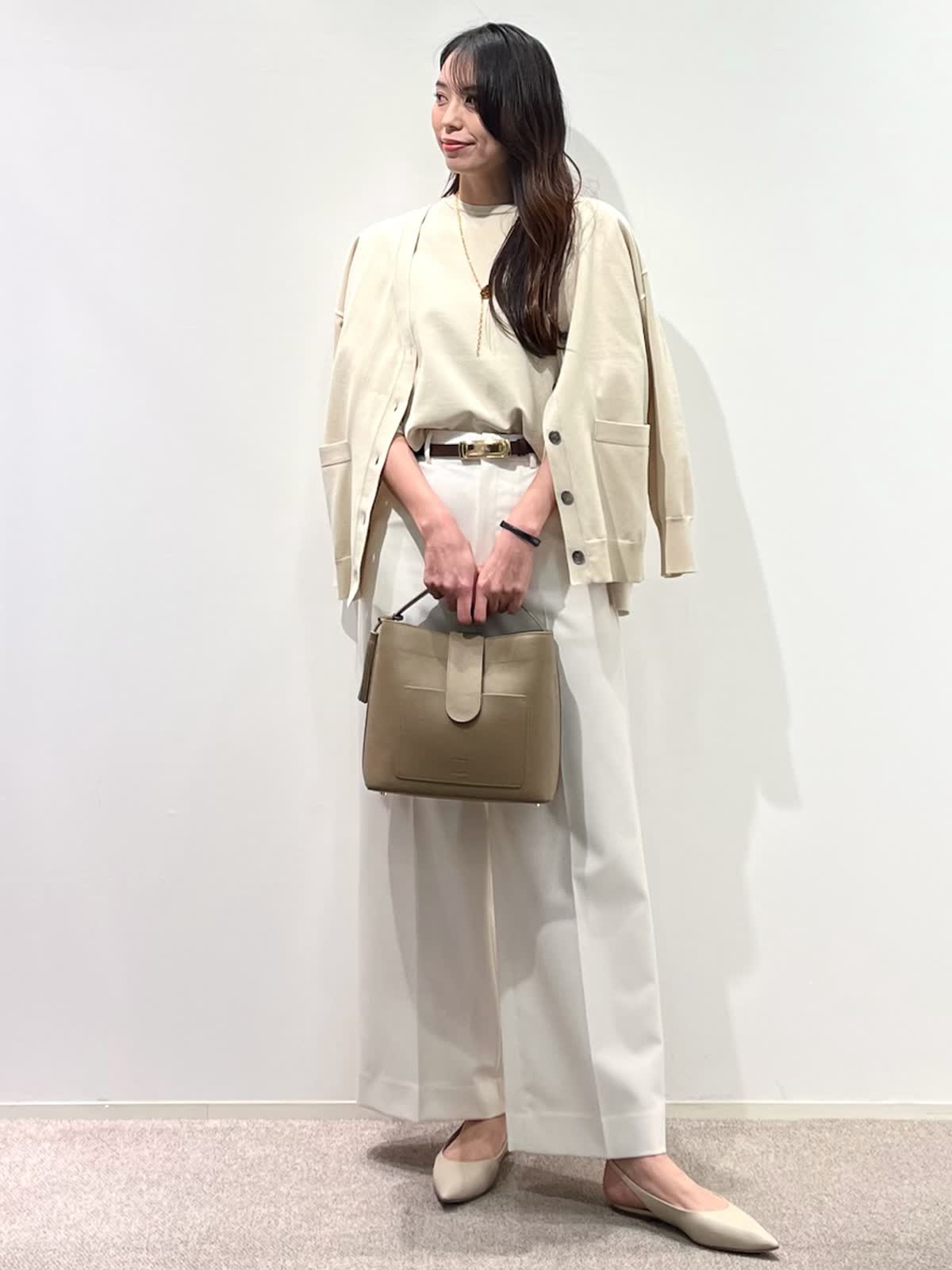 【着用サイズ】コート:9号 カーディガン:9号 ニット:9号 パンツ:9号 【着用カラー】コート:モカチャ カーディガン: ベージュ ニット:ベージュ パンツ:オフホワイト バッグ:グレー 、グレーベージュ 「春のお出かけ王道アウター×パンツコーデ」 軽くて羽織るだけで一気に春顔になる【アクアスキュータム】のステンカラーコート。ゆとりのあるシルエットとロング丈のバランスがすっきり着こなせるデザイン。袖口のチェックの裏地がおしゃれで、こなれ感のある着こなしに。 インナーは、オフィスシーンや休日にも万能なニュアンスカラーのアンサンブルニット。オーバーサイズの1枚着ニットと、ベーシックカーディガンで、単品でも着回し力抜群です。 ロングシーズン活躍出来るおすすめの春コーデです。