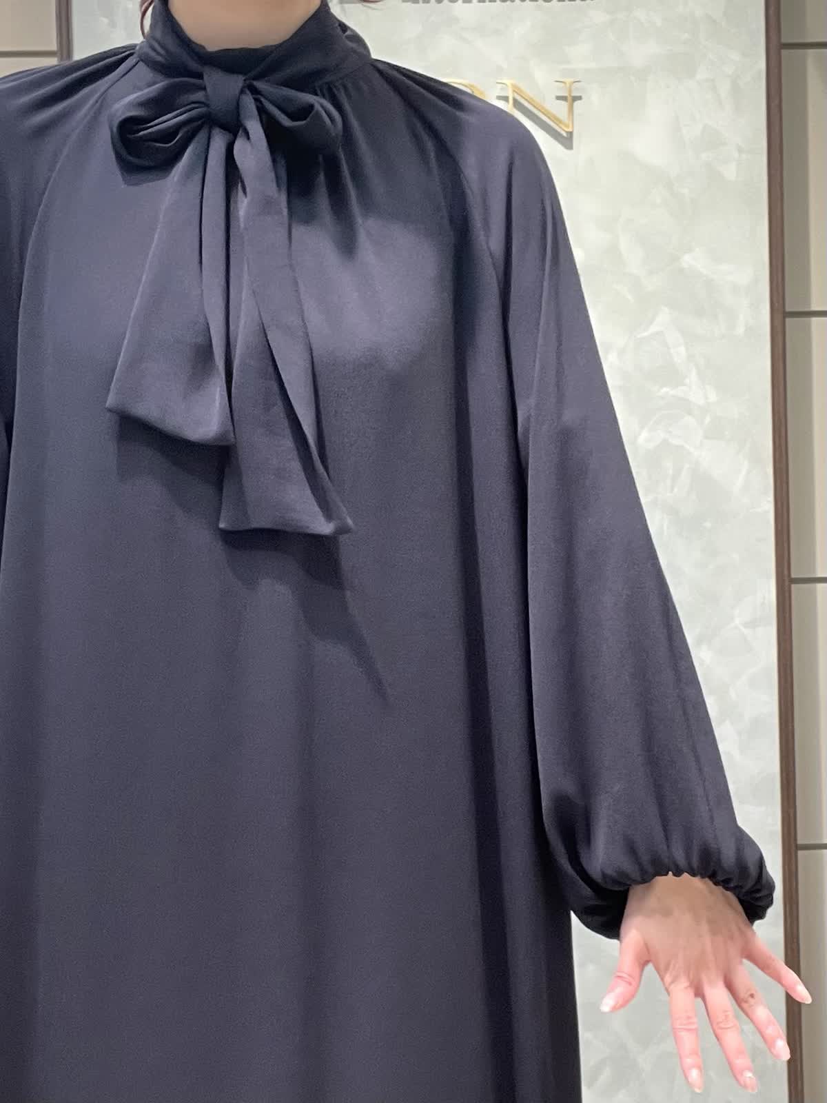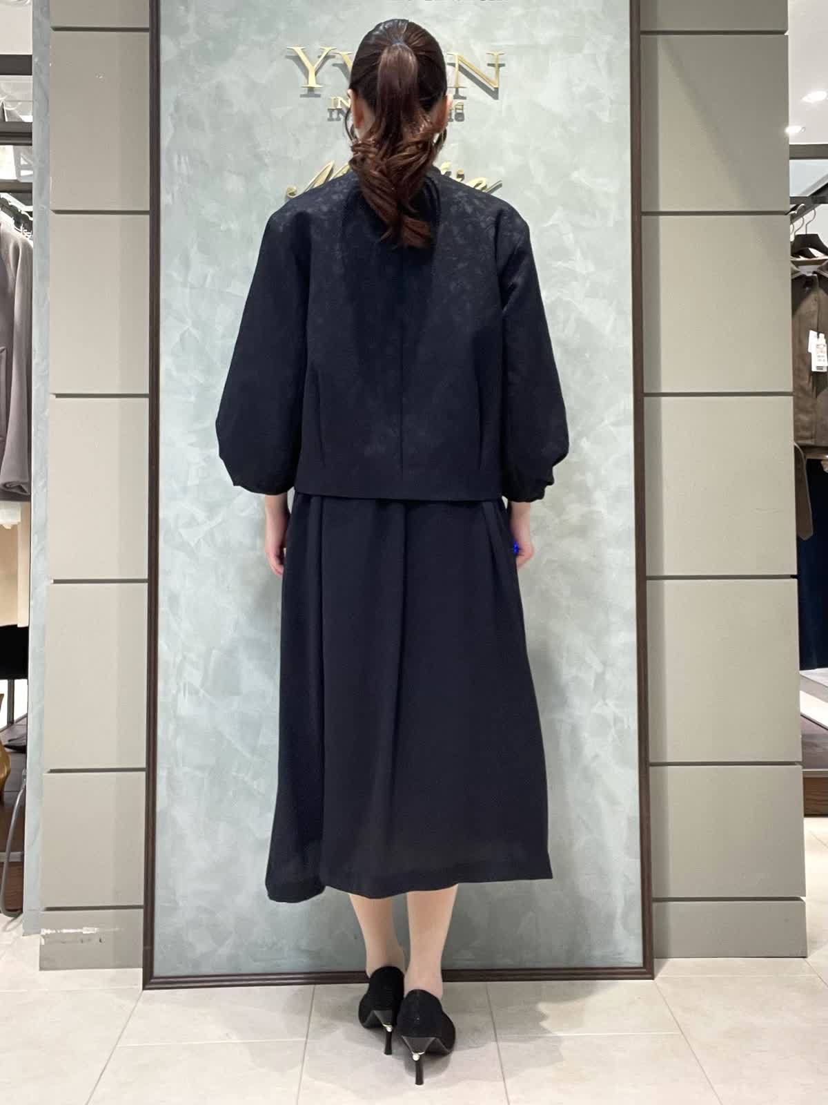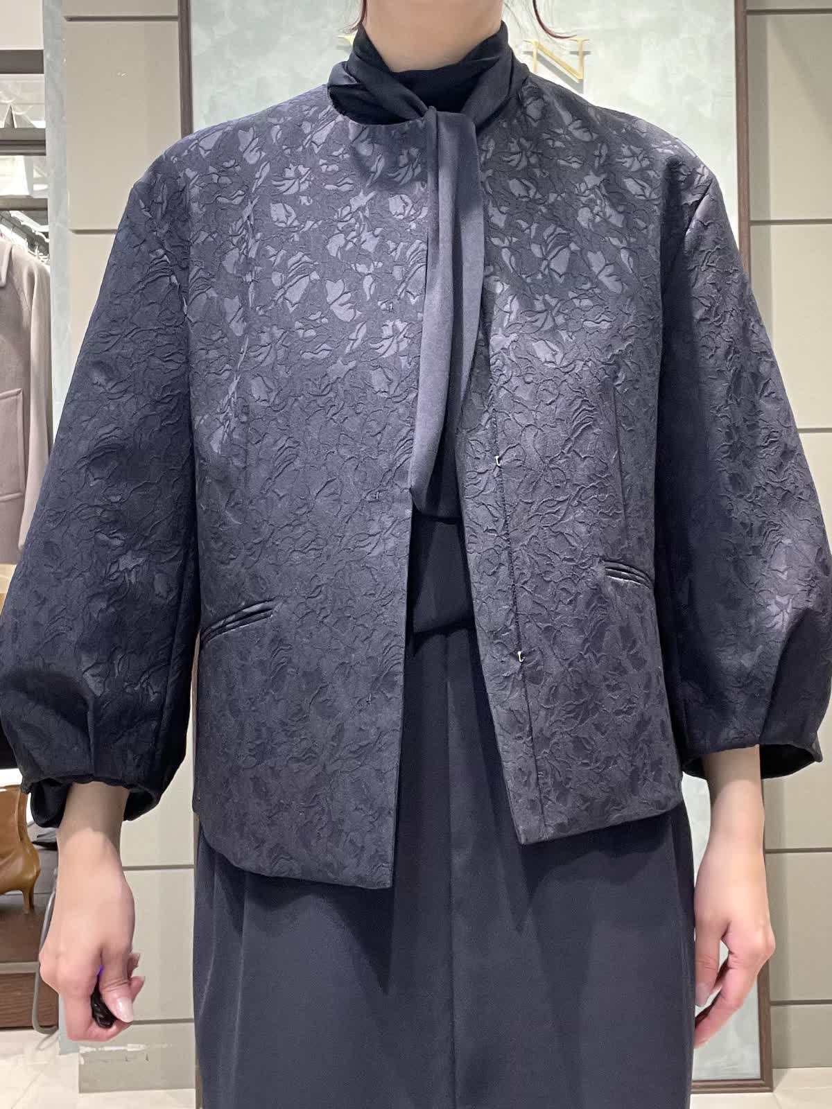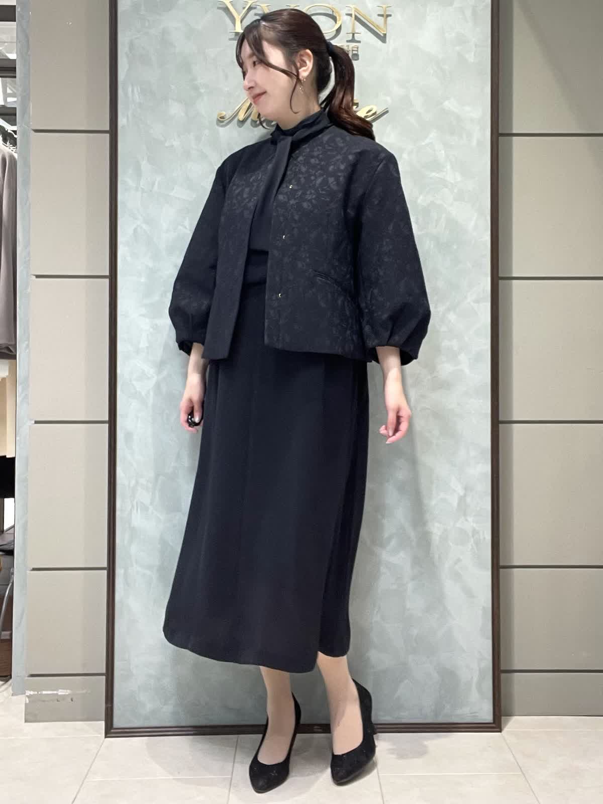 【着用サイズ】ジャケット:7号 ワンピース:7号 セレモニースタイリングです。ジャケットはシーズンレスで着用できる軽くて羽織りやすいジャガードのお素材です。丸みのあるお袖、ゆったりすぎない身幅、すっきりの着丈で全体のバランスが良いです。普段使いでカットソーにデニム合わせも素敵です。ワンピースはさらっとしていて落ち感のあるポリエステルのお素材です。ボディライン拾いにくく、シルエットが綺麗です。お袖口ゴム、ポケットあり、ペチコート付きです。着丈は157センチでふくらはぎくらいです。