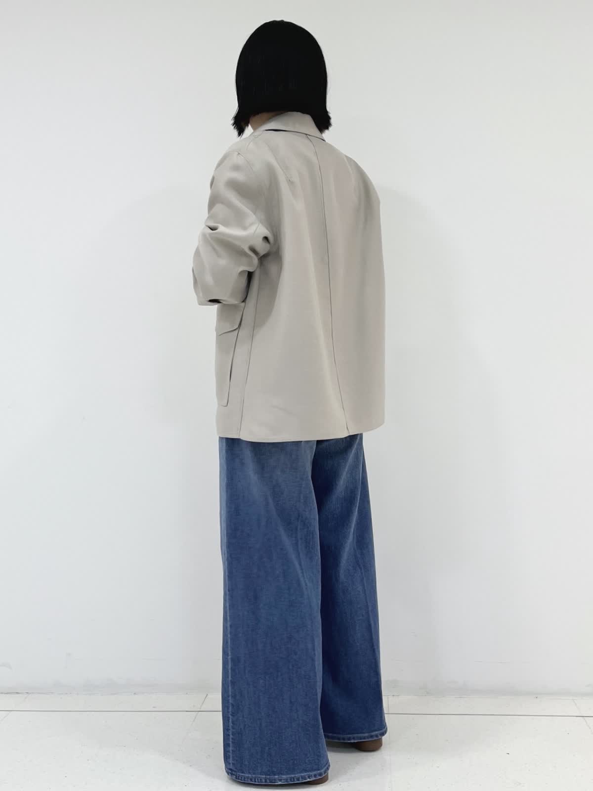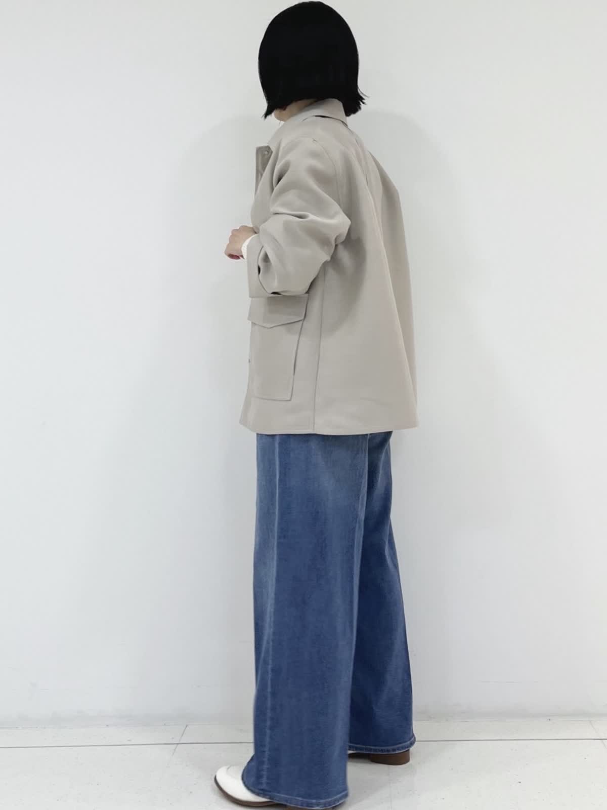 【着用サイズ】ジャケット:9号/ベージュ ニット:フリー/オフホワイト パンツ:7号/インディゴ 程よくゆったりとしたサイズ感のシルエットのジャケット。適度なハリもあり抜け感のあるシルエット、軽い着心地が魅力です。 ヒップが隠れる着丈、またお家で洗える素材も嬉しいポイントです!