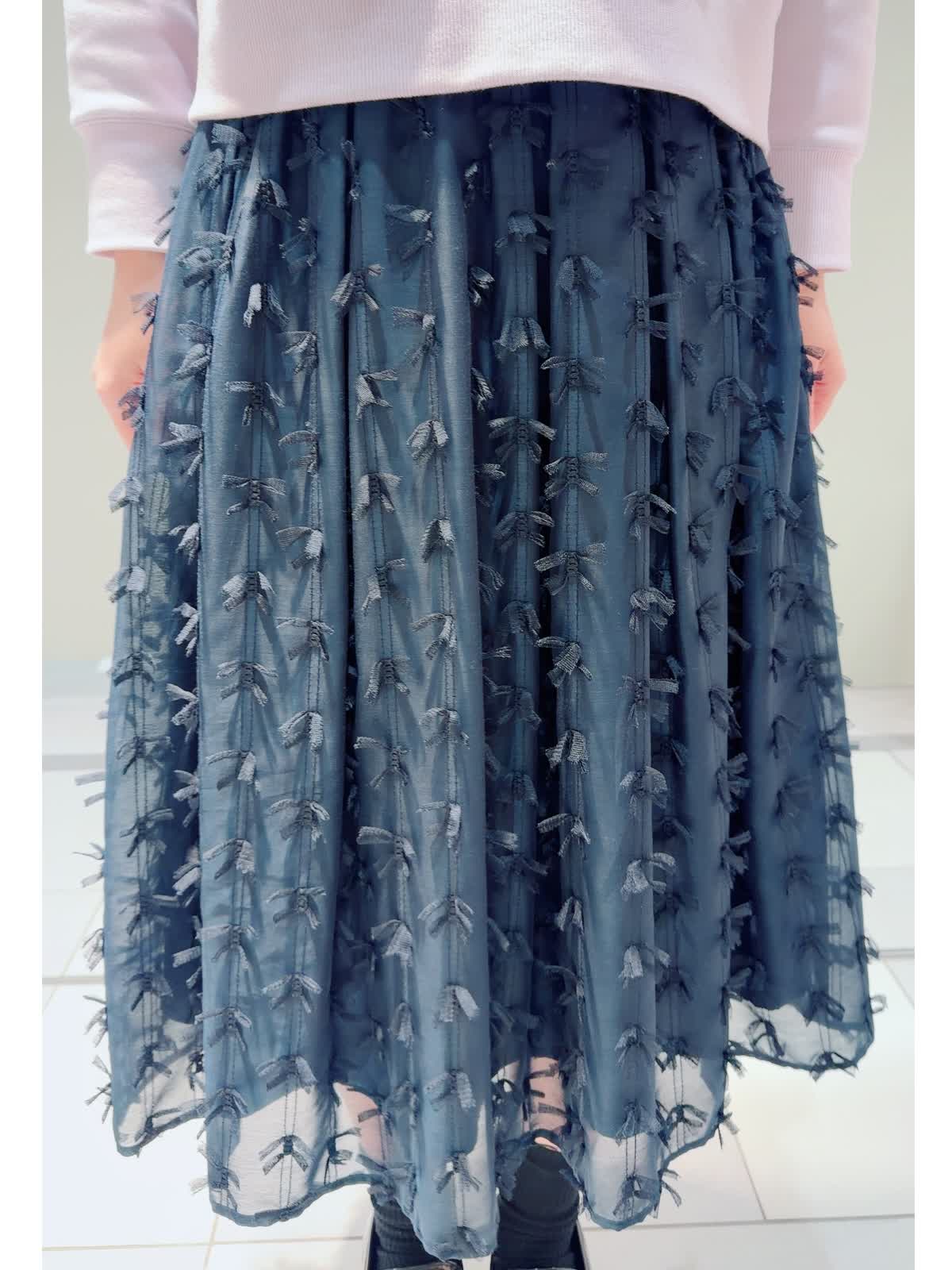 【着用カラー】カットソー:ラベンダー スカート:ネイビー 【着用サイズ】カットソー:9号 スカート:5号 春のカジュアルコーディネート。リボンのデザインの可愛いスカートはウエストがゴムになっており軽い生地で履き心地抜群。合わせたトップスも透け感が殆どなく少し寒い時は薄手のインナーを中に着れるサイズ感。着回しに便利なおすすめアイテムです。