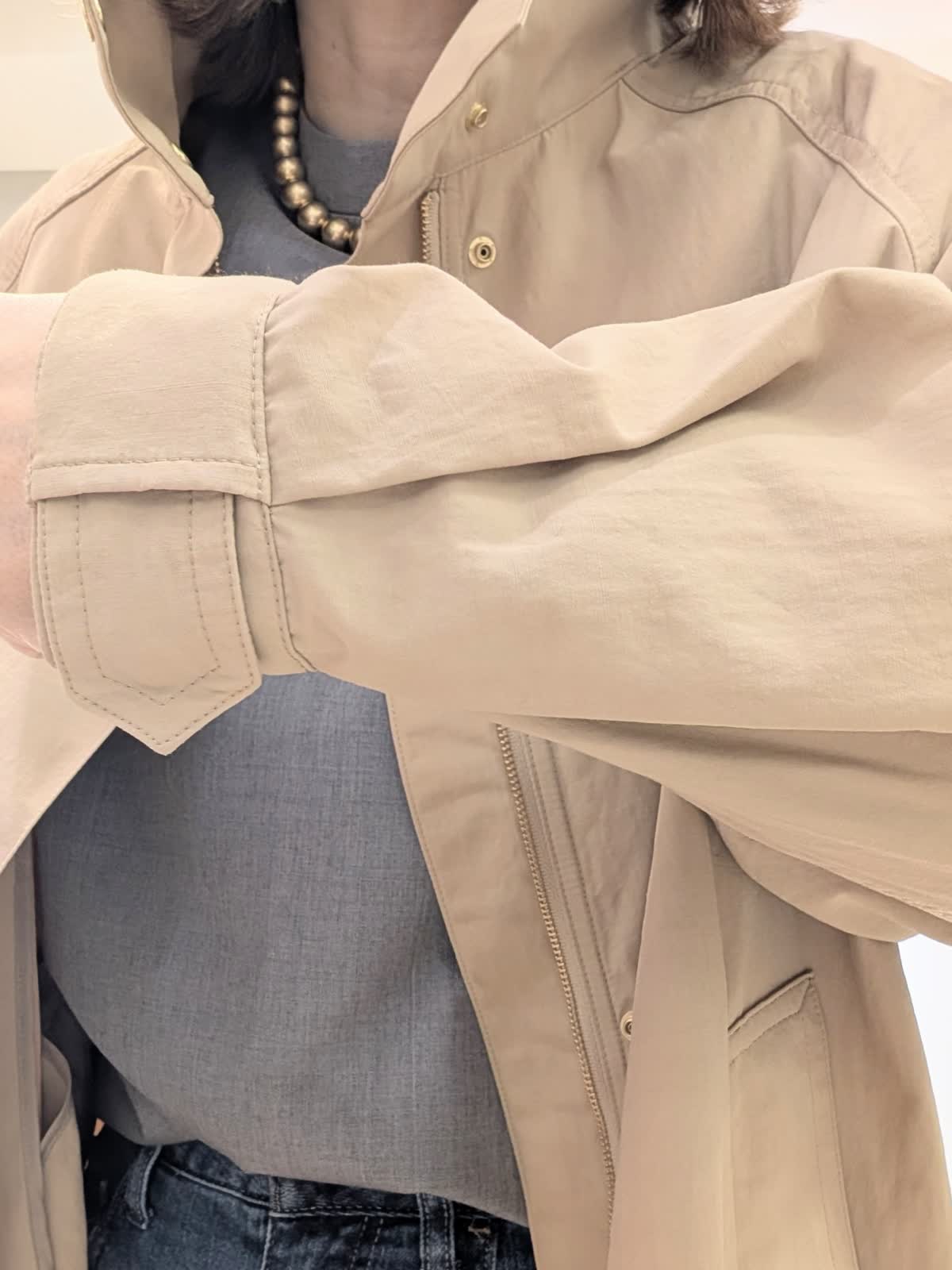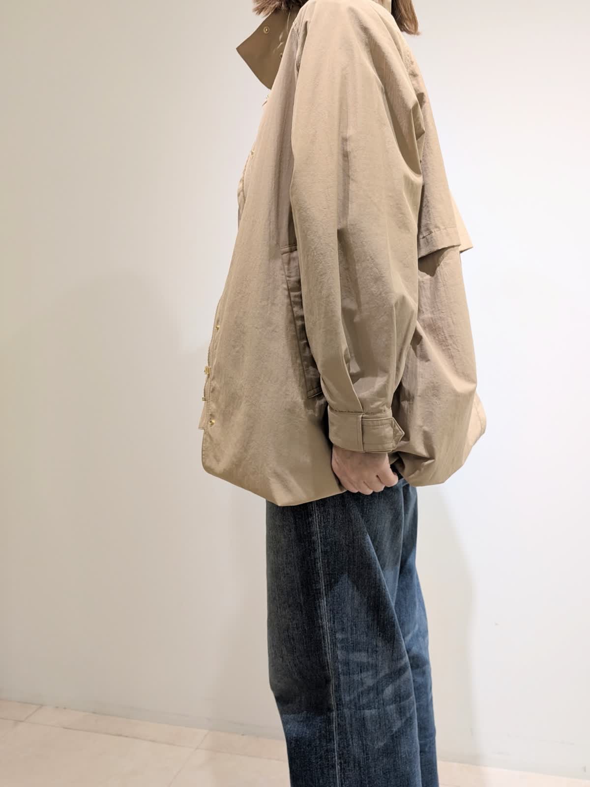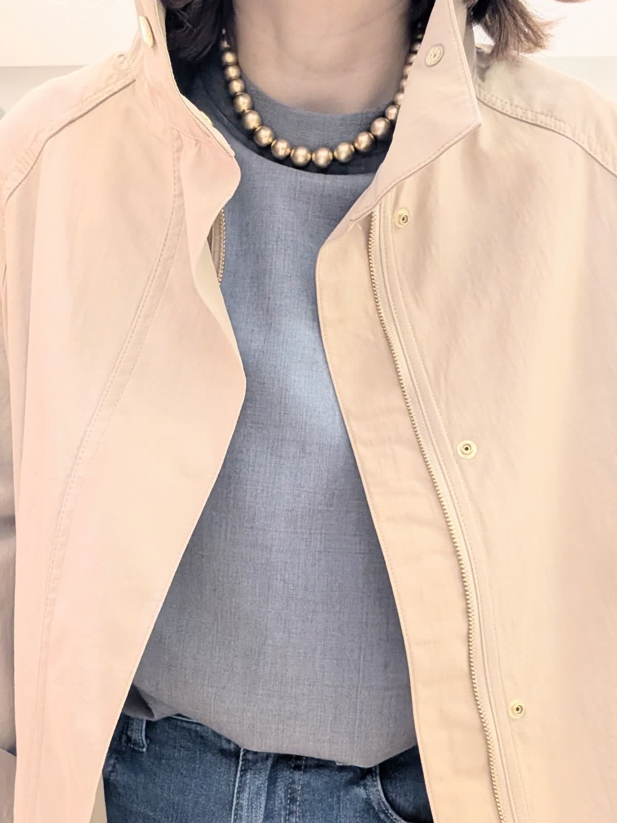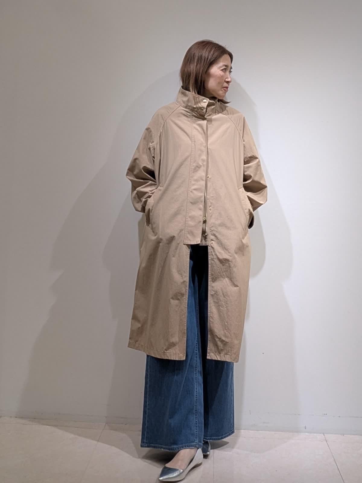 【着用サイズ9号】 今年のおすすめのコートは、裏側から折り上げ、ドット釦をとめる事により、レングスの変える事の出来る2WAYコート。ラグランスリーブで厚手のアイテムも着用可◎ 合わせたブラウスは、三尋木奈保コラボ。袖の立体感がおすすめのデザインです。 ボトムスは、HealthyDENIMのバギーデザイン。穿き心地バツグンです◎