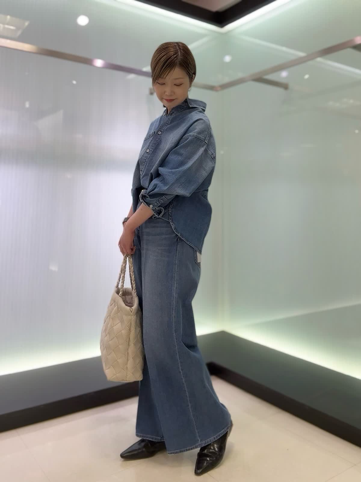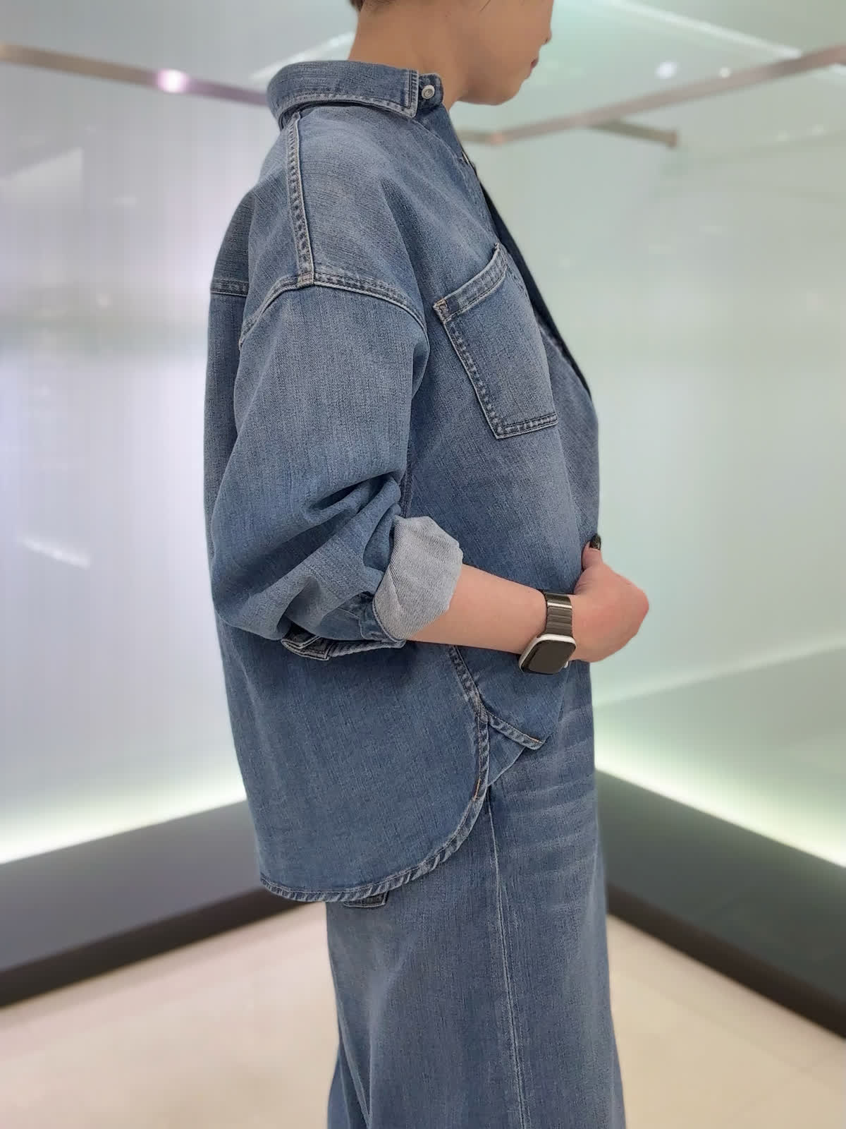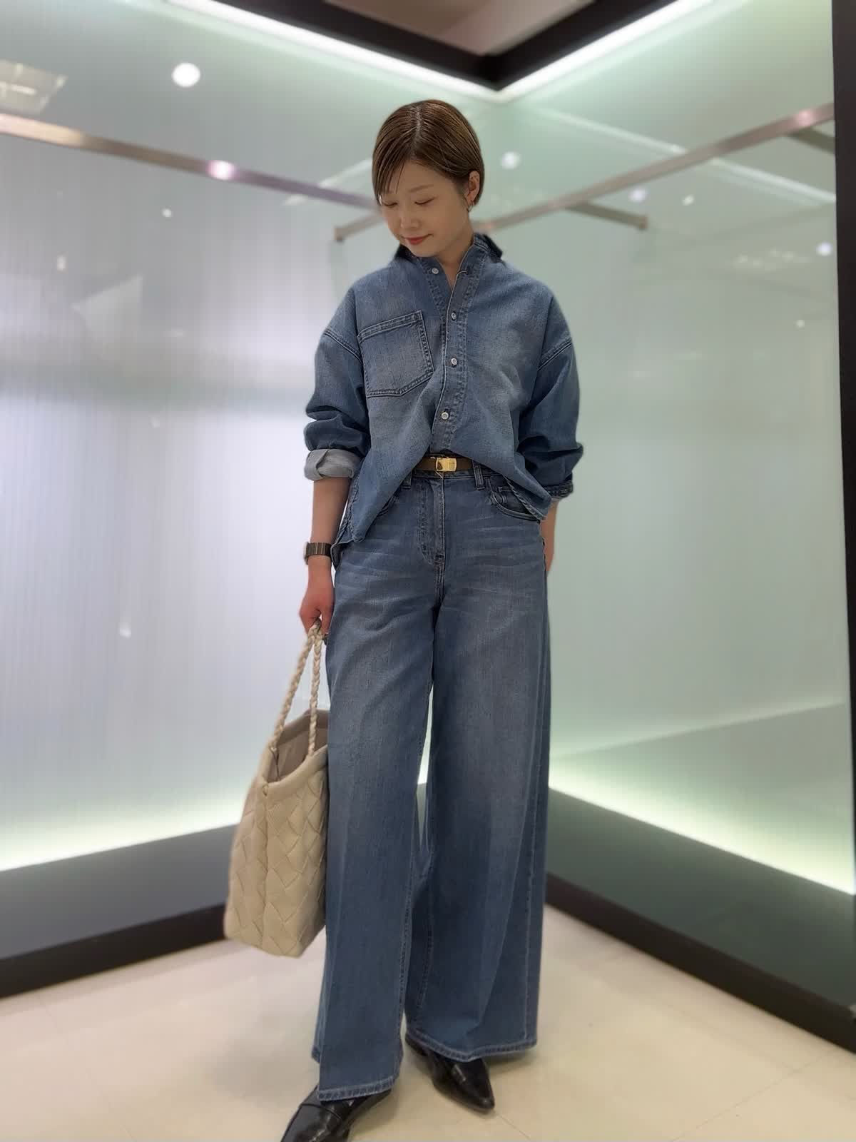 【着用カラー・サイズ】シャツ : インディゴ/9号 パンツ : インディゴ/7号 大人カジュアルのデニム×デニムコーデ♪シャツ、パンツともに柔らかな肌触りで着心地が良いデニムです。シャツは羽織りにもなるので着まわし力抜群です!