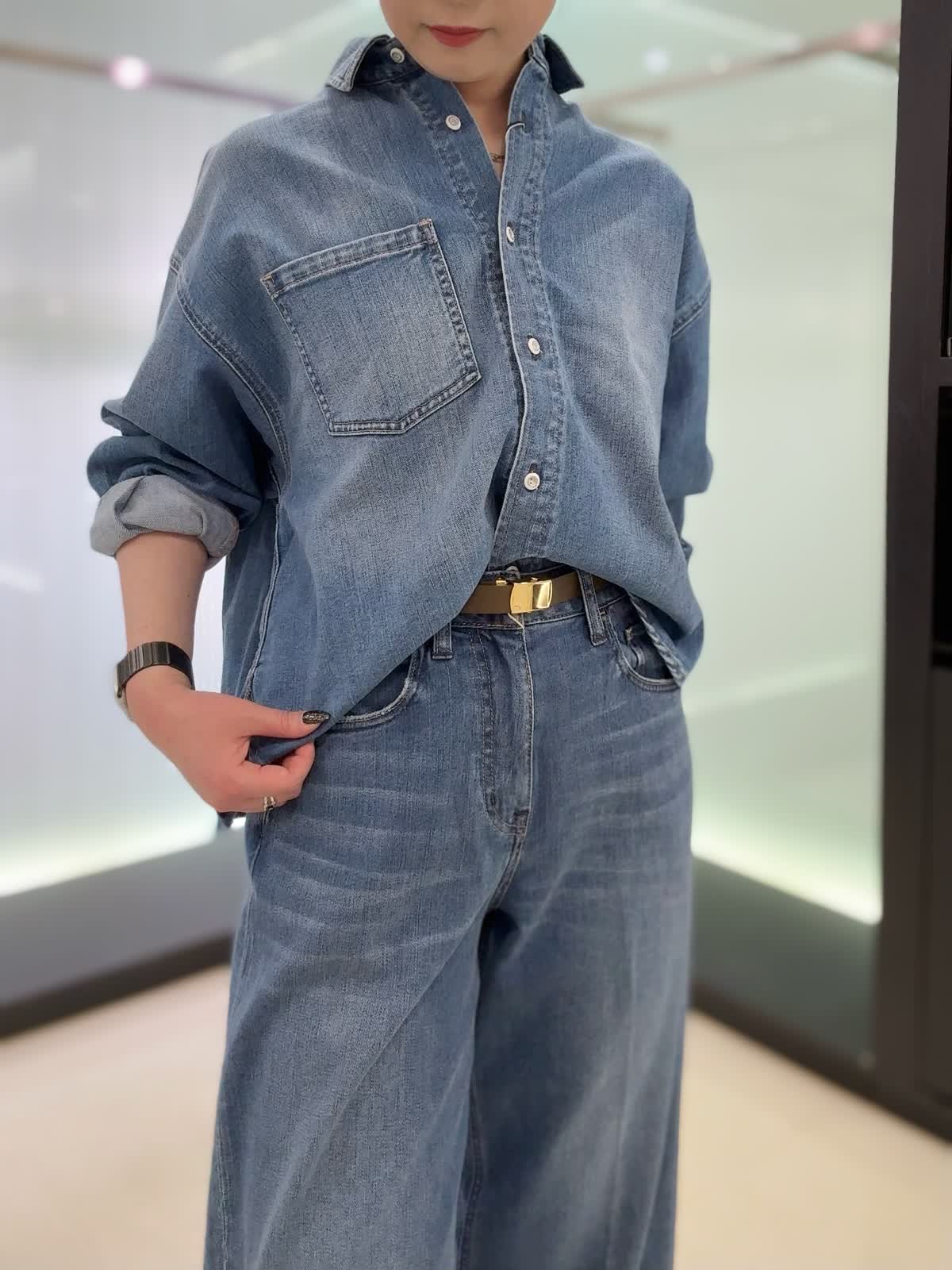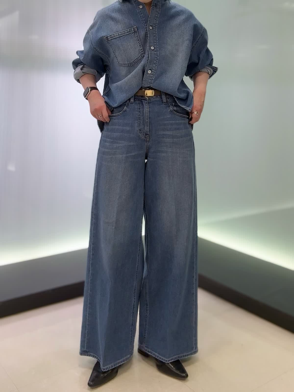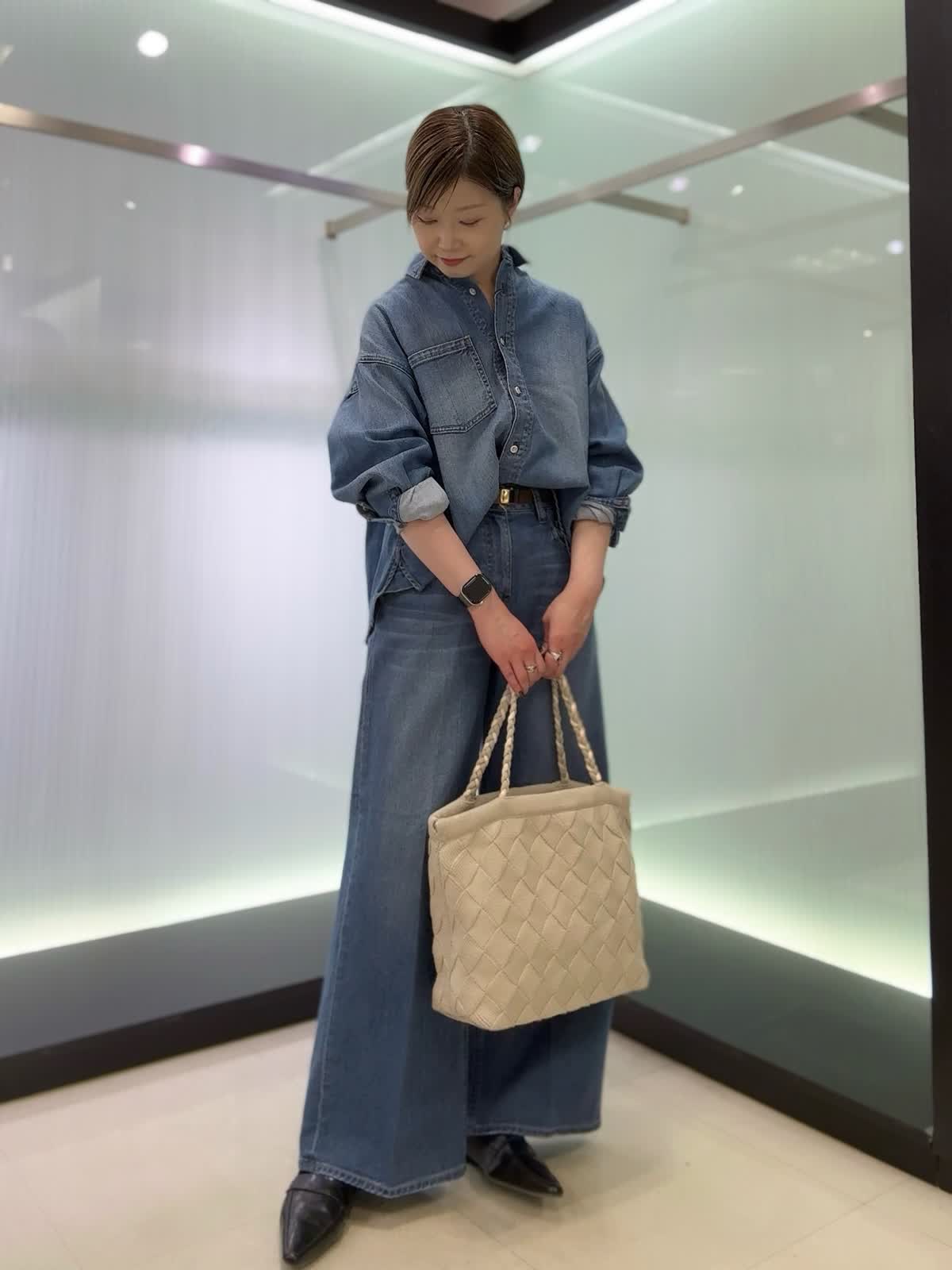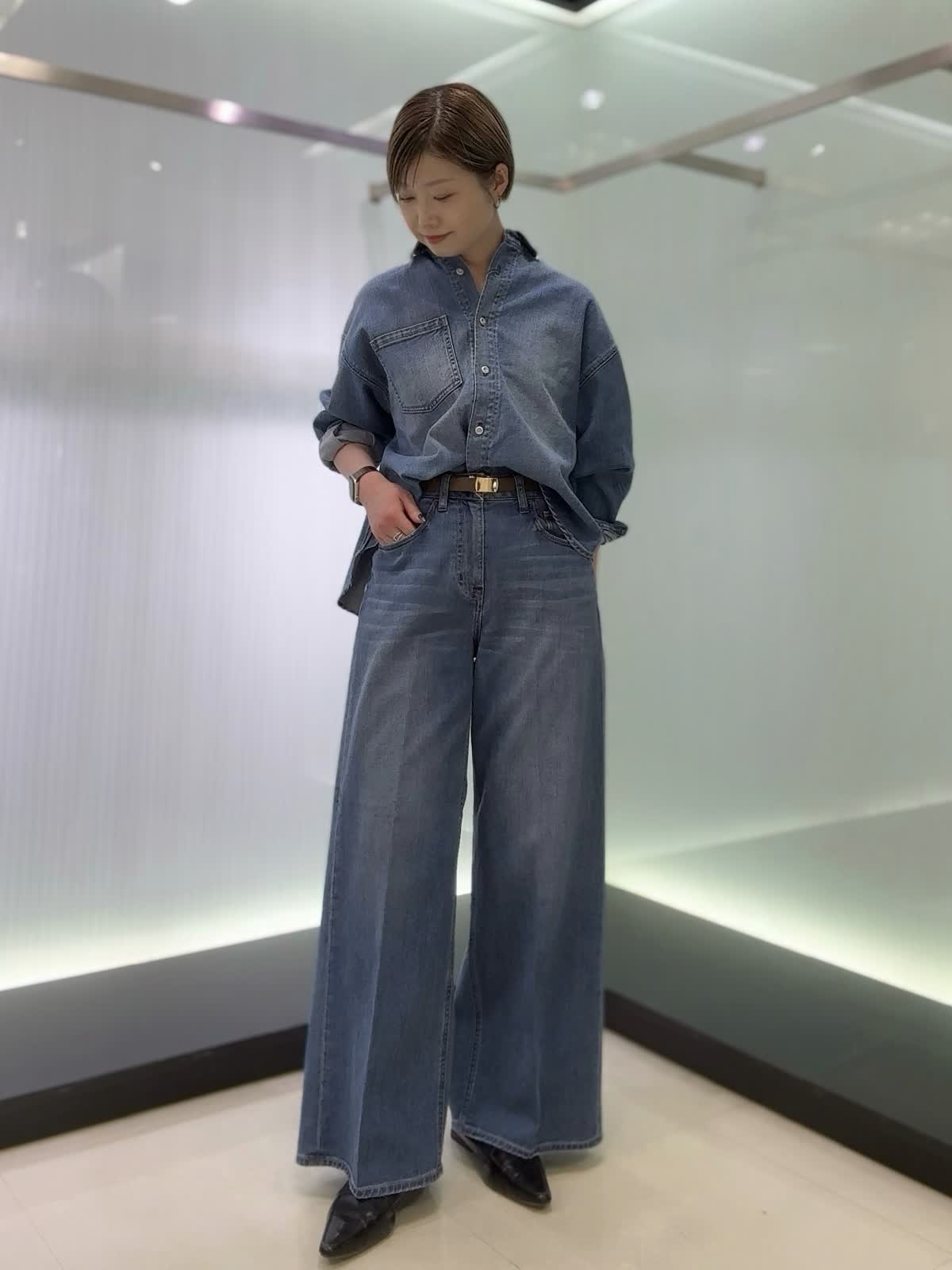 【着用カラー・サイズ】シャツ : インディゴ/9号 パンツ : インディゴ/7号 大人カジュアルのデニム×デニムコーデ♪シャツ、パンツともに柔らかな肌触りで着心地が良いデニムです。シャツは羽織りにもなるので着まわし力抜群です!