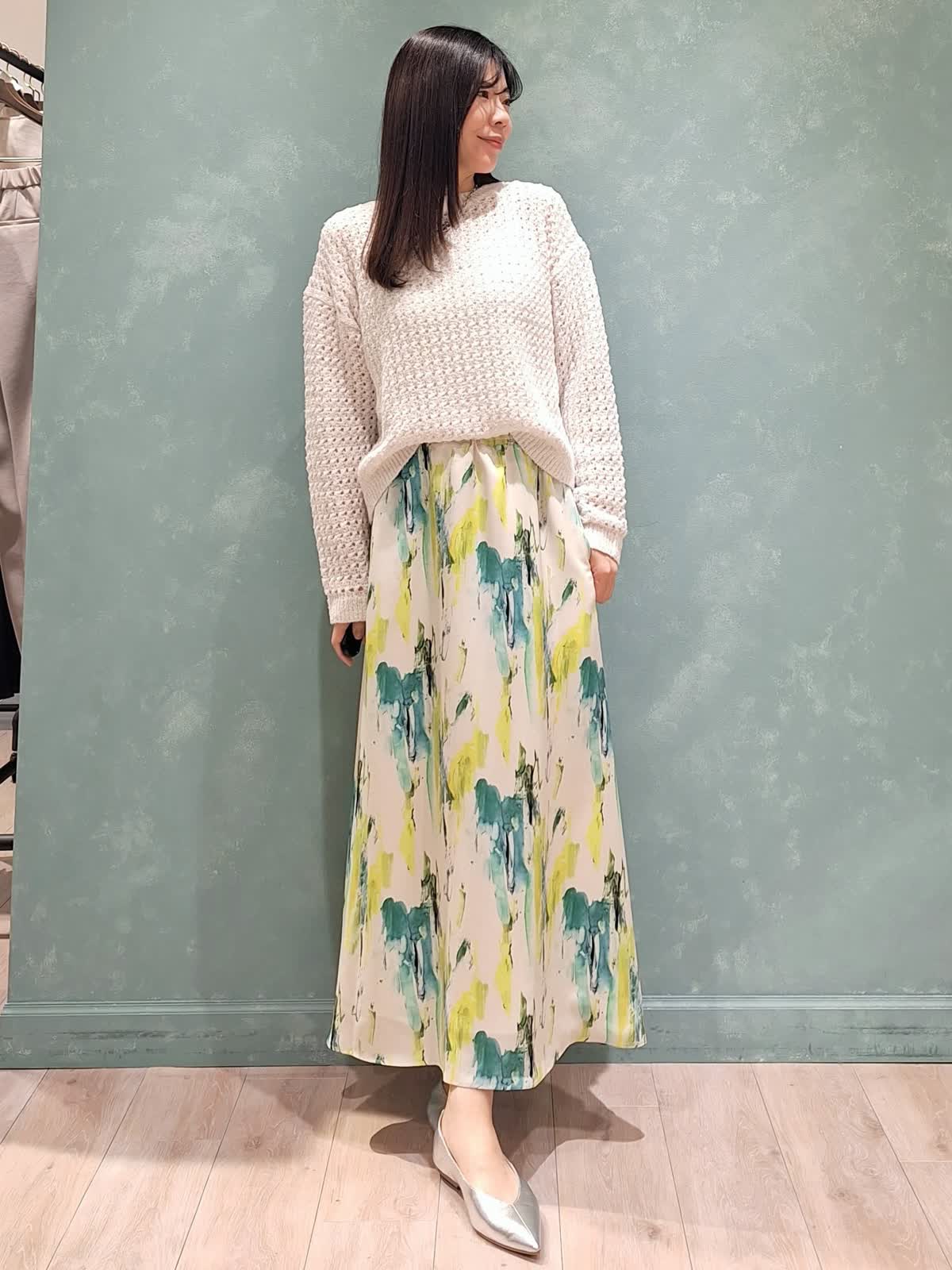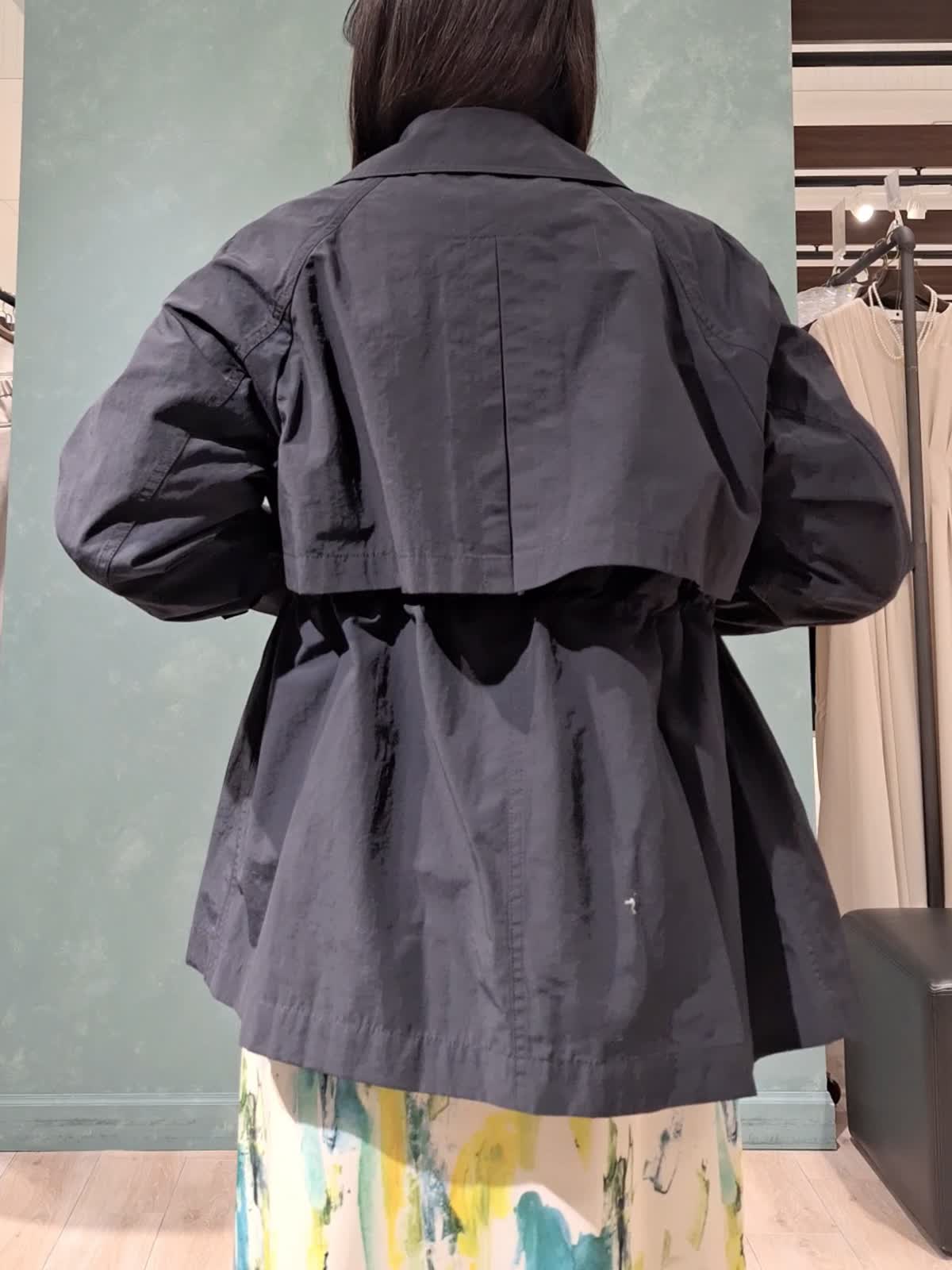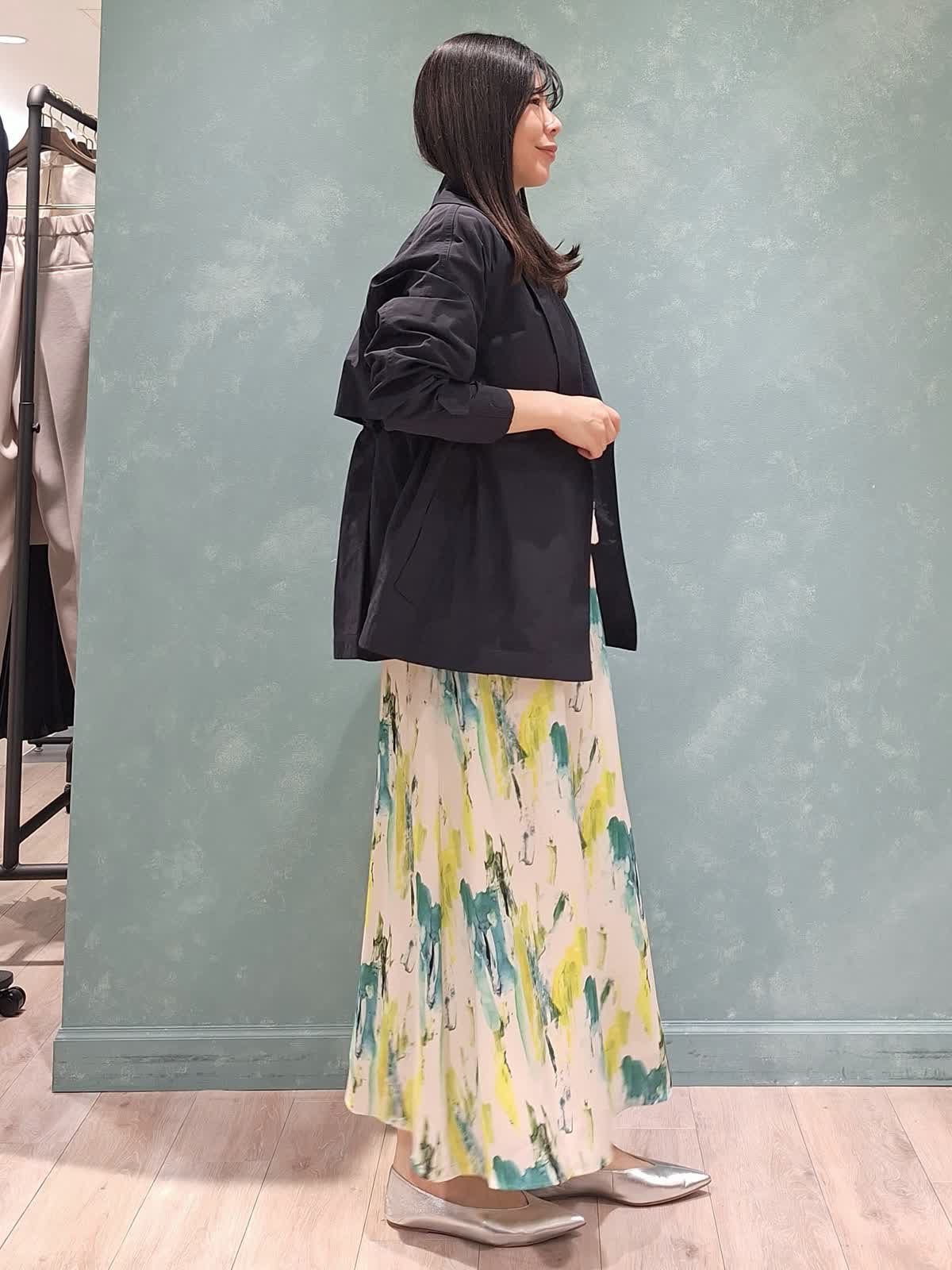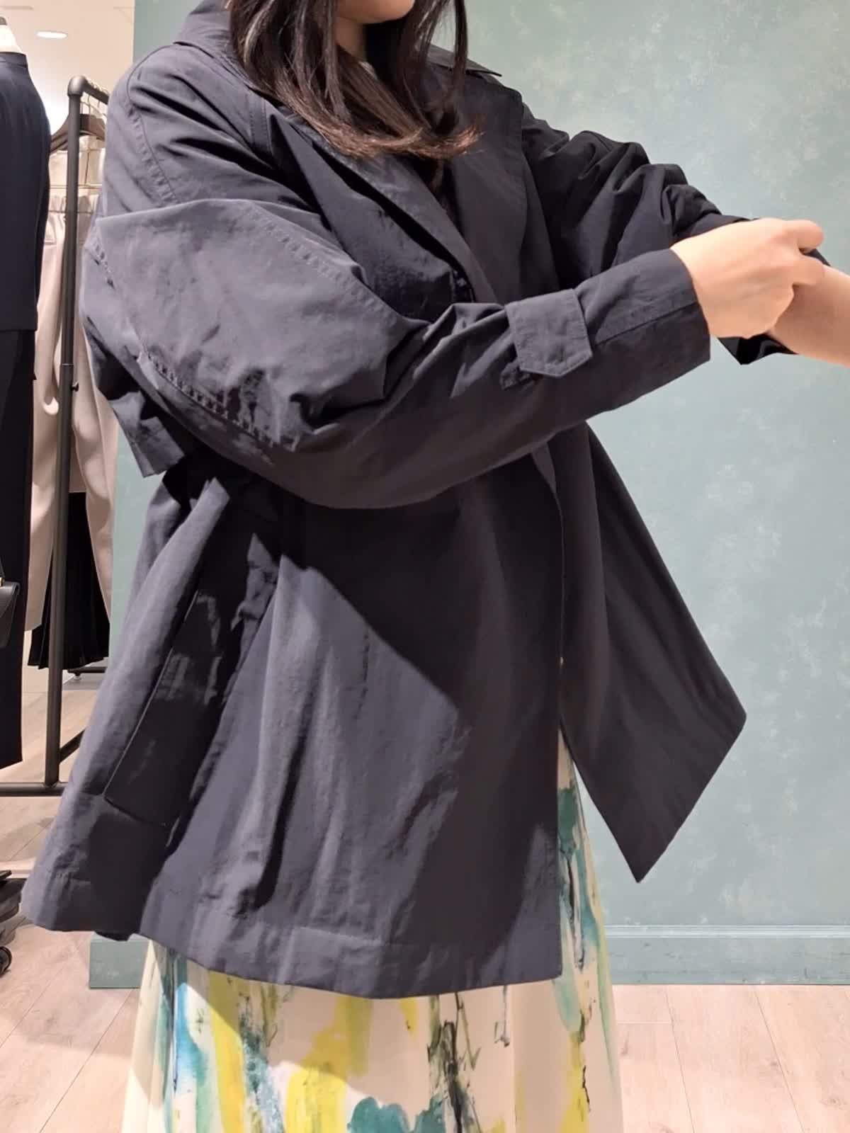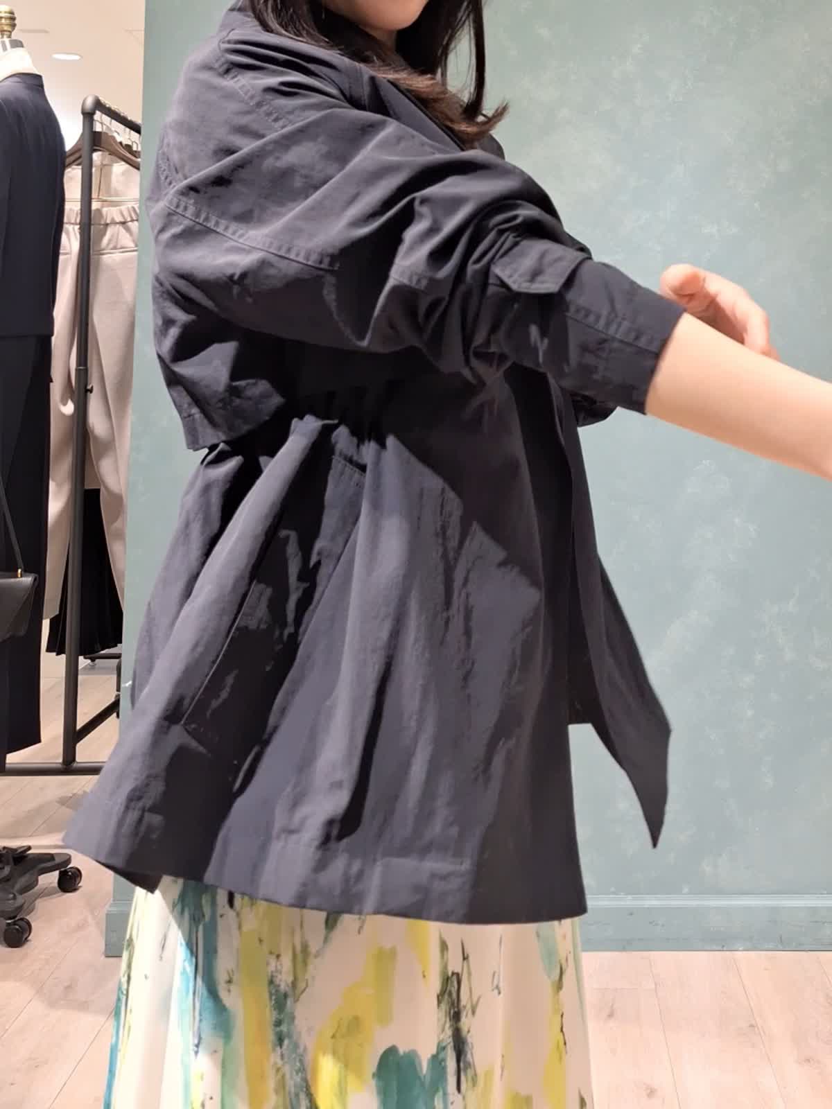 【着用サイズ、カラー】コート:7号、ネイビー ニット:9号、オフホワイト スカート:7号、ペパーミント 春の休日お出掛けスタイル。アウターは、ウエストが絞れてスタイルアップが叶うINEDのショートトレンチコート。お袖口も2段階絞り調節が可能。キュっと上げて抜け感のある着こなしがお勧めです!スパンコールニット、INEDオリジナルプリントのスカートを合わせて爽やかカジュアルにコーディネートしました。桜が咲き始めるこれからの季節にぴったり♪是非チェックしてみて下さいね☆