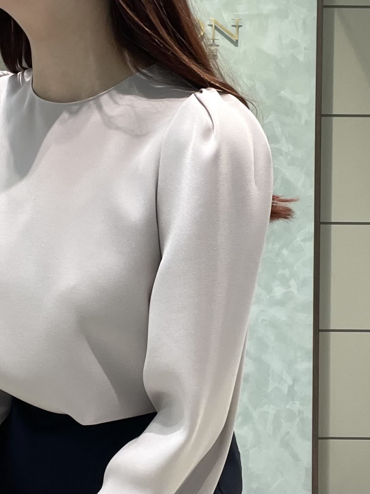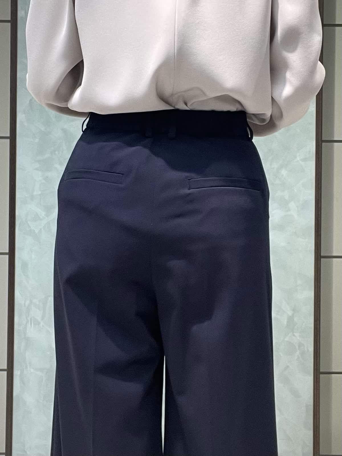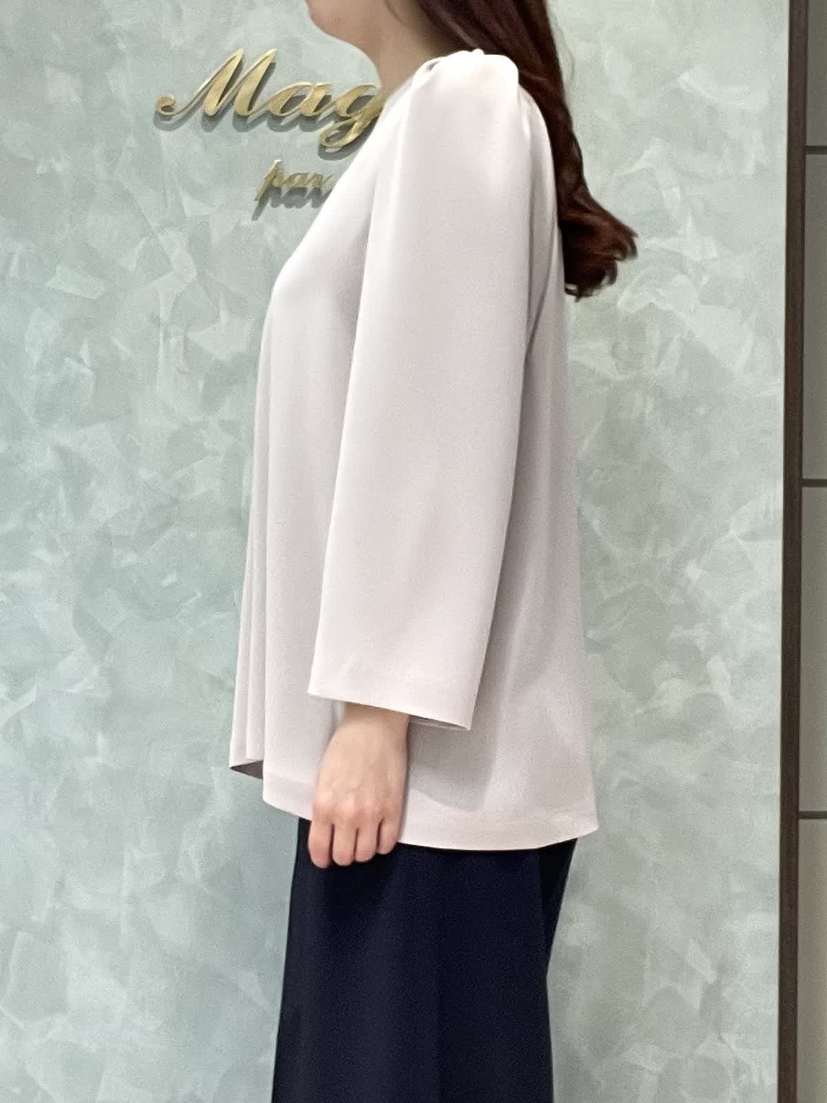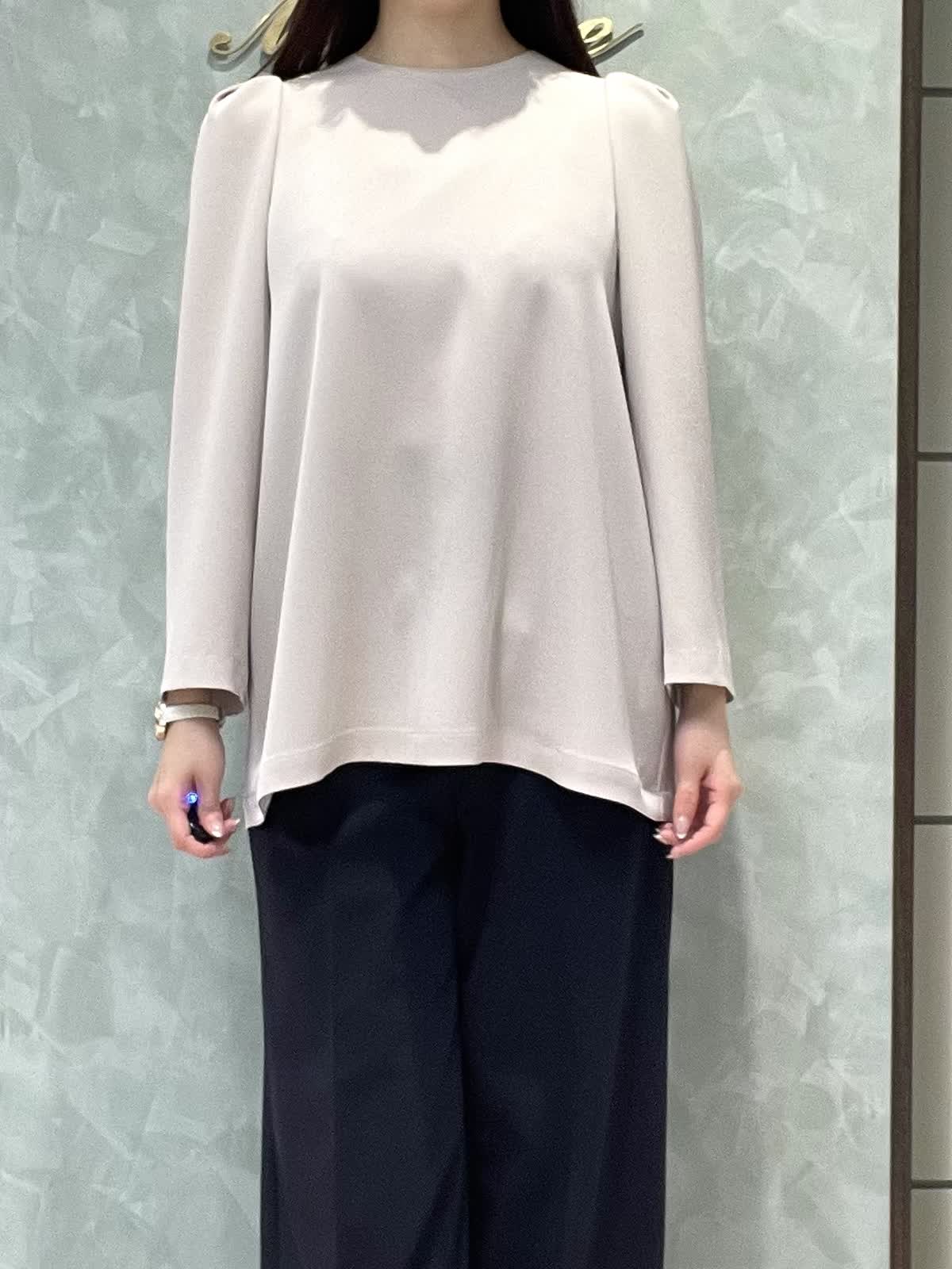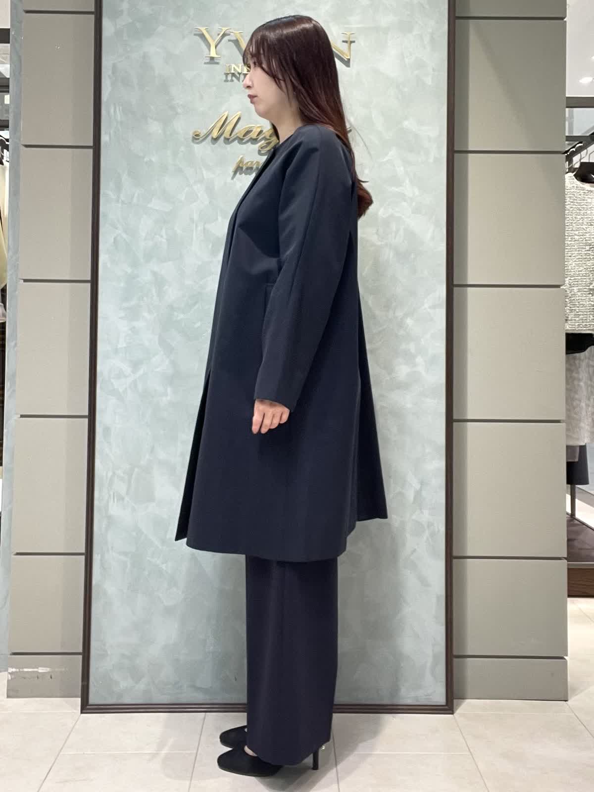 【着用サイズ】コート:7号 ブラウス:9号 パンツ:7号 春の通勤、お仕事スタイリングです。コートは軽くて羽織りやすく、ラグランスリーブでジャケットの上からでもゴワつかずに着用できます。着丈は157センチで膝下です。インナーのブラウスは袖の付け根がふわっと立体感のあるデザインです。他はシンプルなのでジャケットの形を選ばず、ベーシックに着回ししやすいです。後ろファスナー仕様です。パンツは太すぎないセミワイドです。シーズンレスで履けてオン、オフも問わない万能パンツです。着丈は足の甲につくくらいです。ベルトループ付き、後ろゴム、左右ポケットありです。
