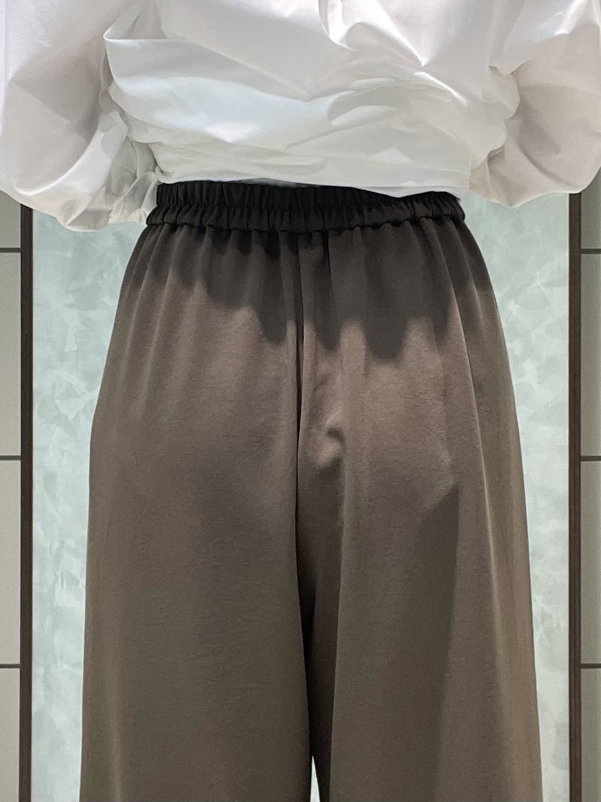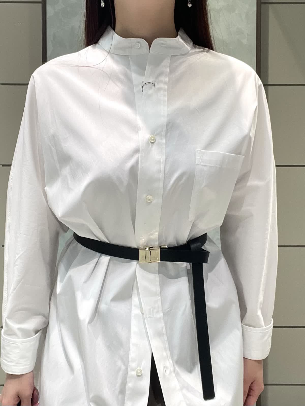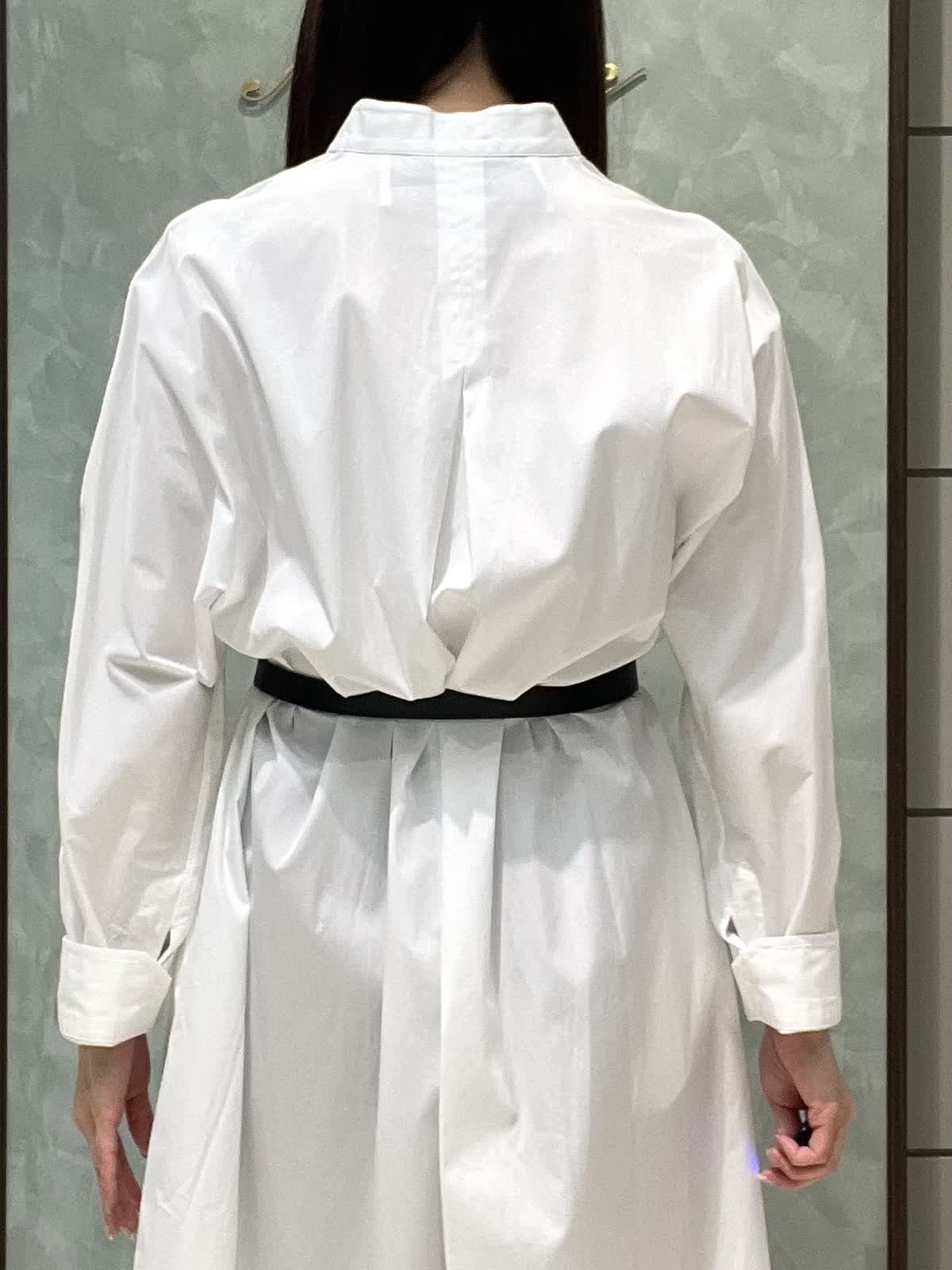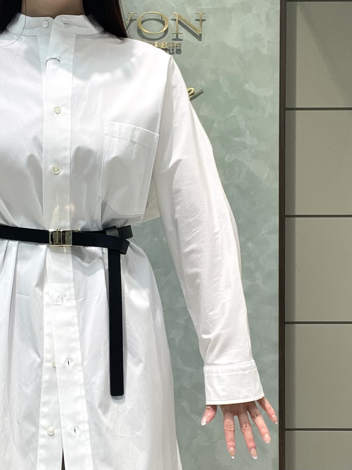 【着用サイズ】シャツ:9号 パンツ:7号 お出かけスタイリングです。ロングシャツはワンピースとしてもレイヤードでも着用できて着こなしを楽しめます。襟がないので子供っぽくならず、後ろも開くようなデザインがあるのでシンプルになりすぎなくておすすめです。若干透け感があるのでインナー着用をおすすめします。着丈は157センチでふくらはぎくらいです。パンツはさらっと落ち感があるのできれいめに着用できます。タック入りで腰周りゆったり、後ろゴムで履き心地良いです。着丈はかかと上で少し長めです。左右ポケットあり。