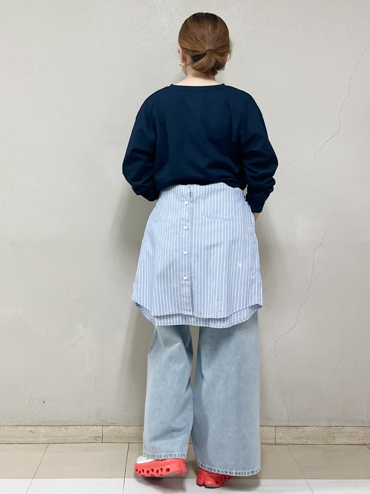 【着用カラー】カットソー:ネイビー パンツ:サックス シャツ:ストライプ