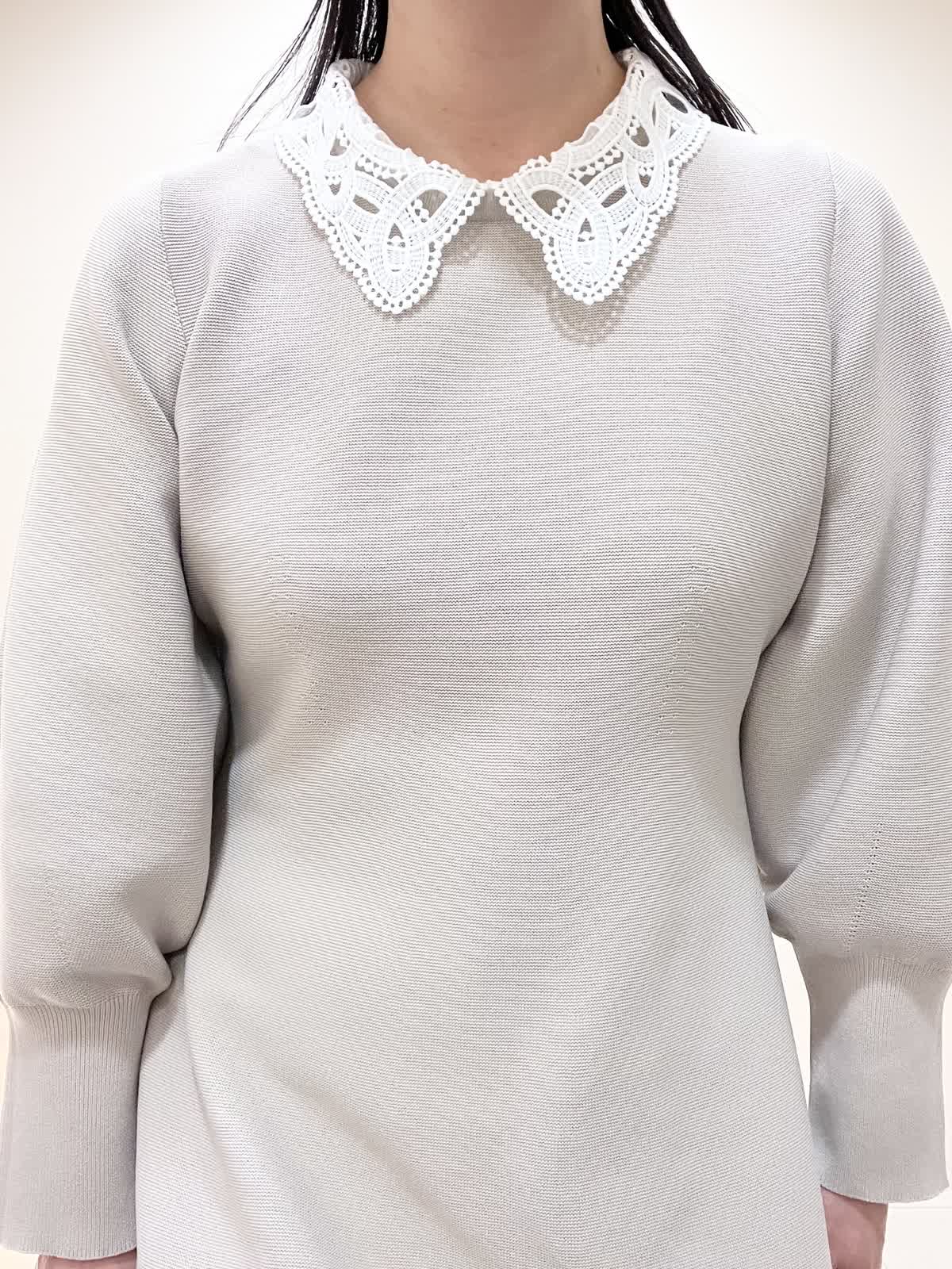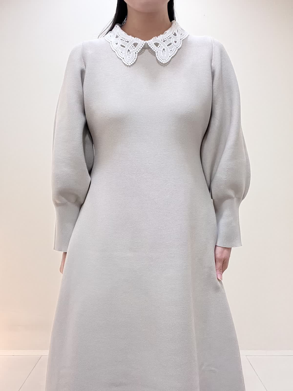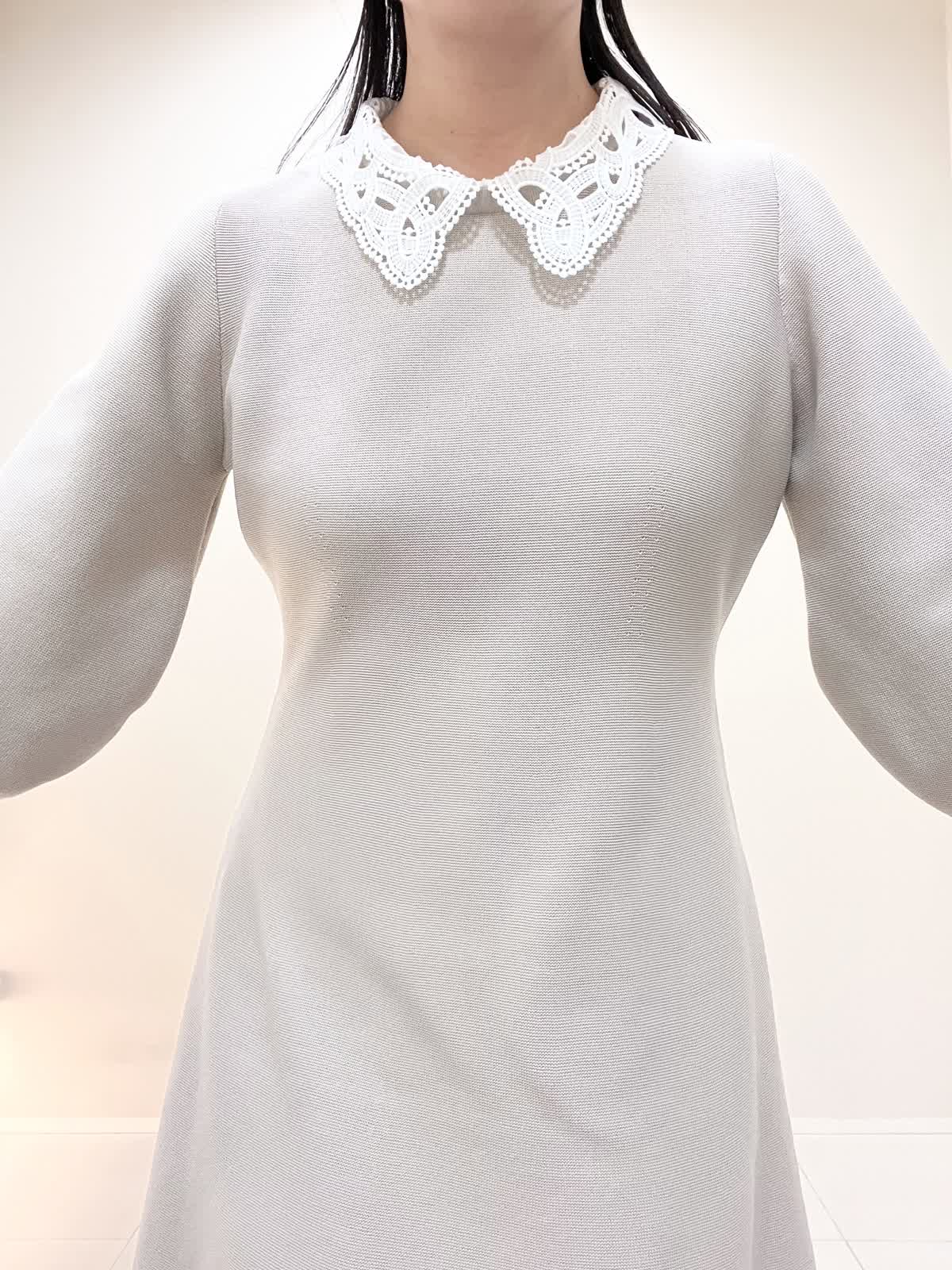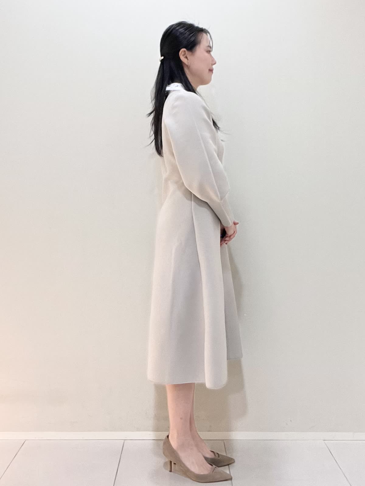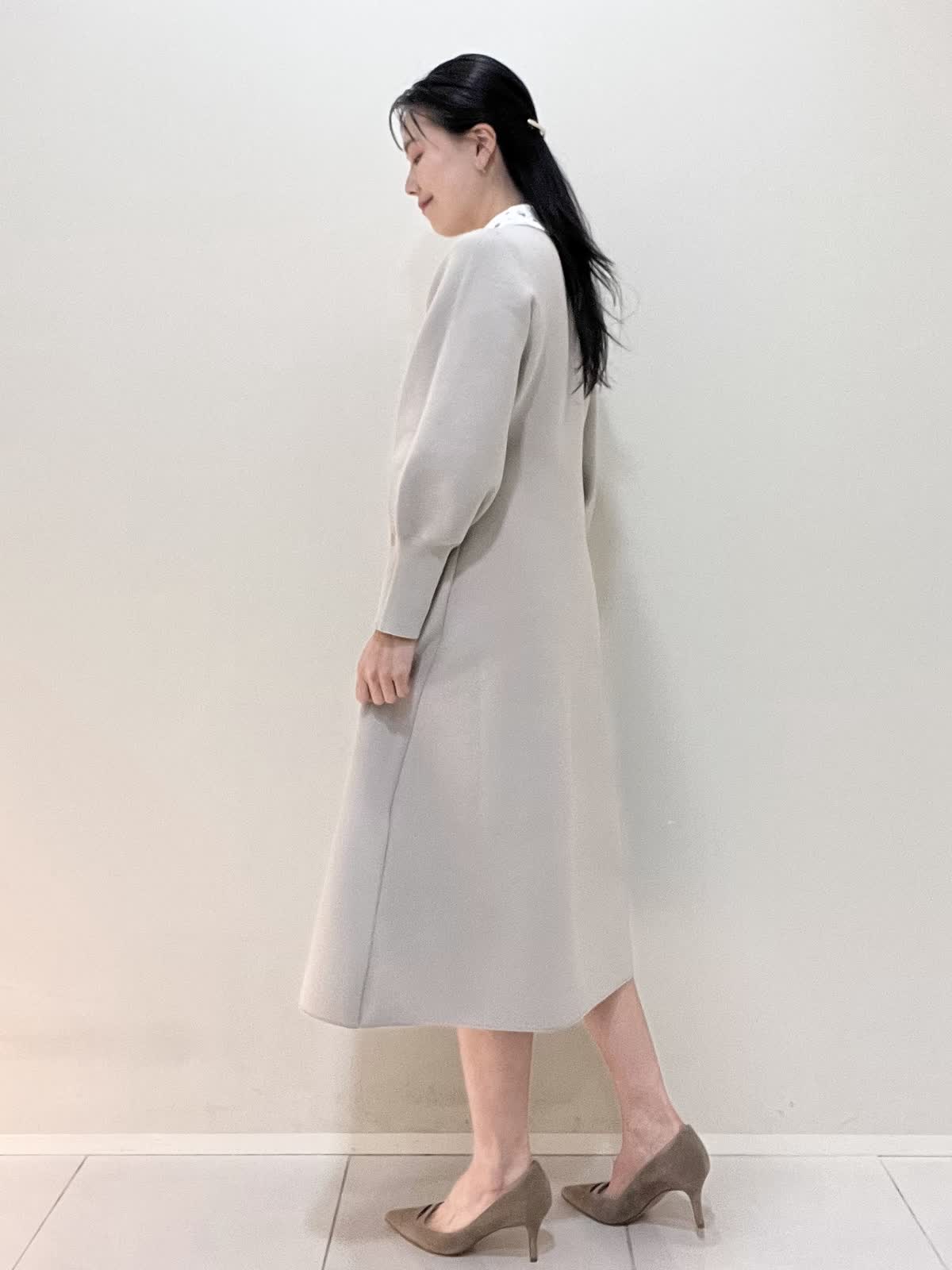 【着用サイズ/カラー】 ワンピース:9号 ベージュ バッグ:オフホワイト ニット素材で伸びが良く、着心地がとても良いです。膝が隠れる位の長さです。襟がついていてきちんと感も出るので、お食事会などにもオススメです。