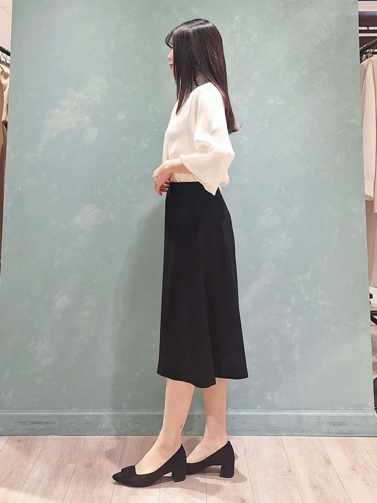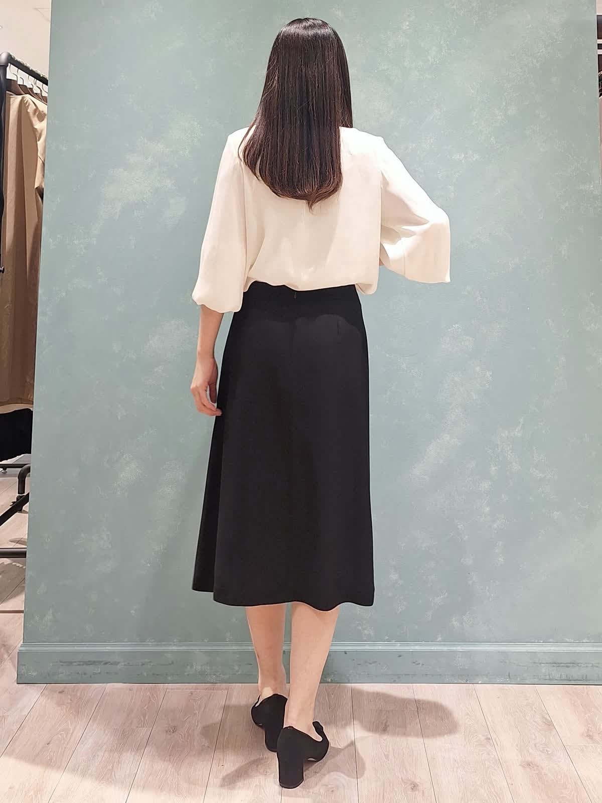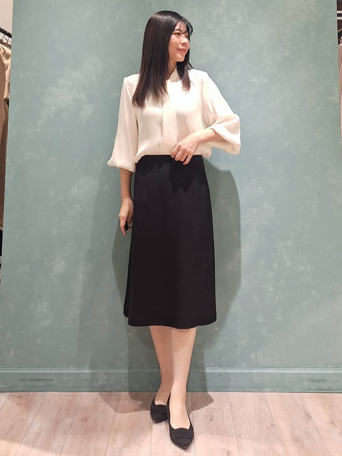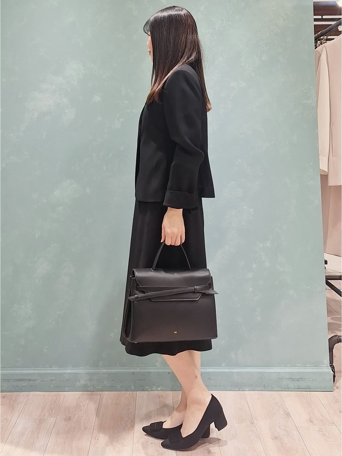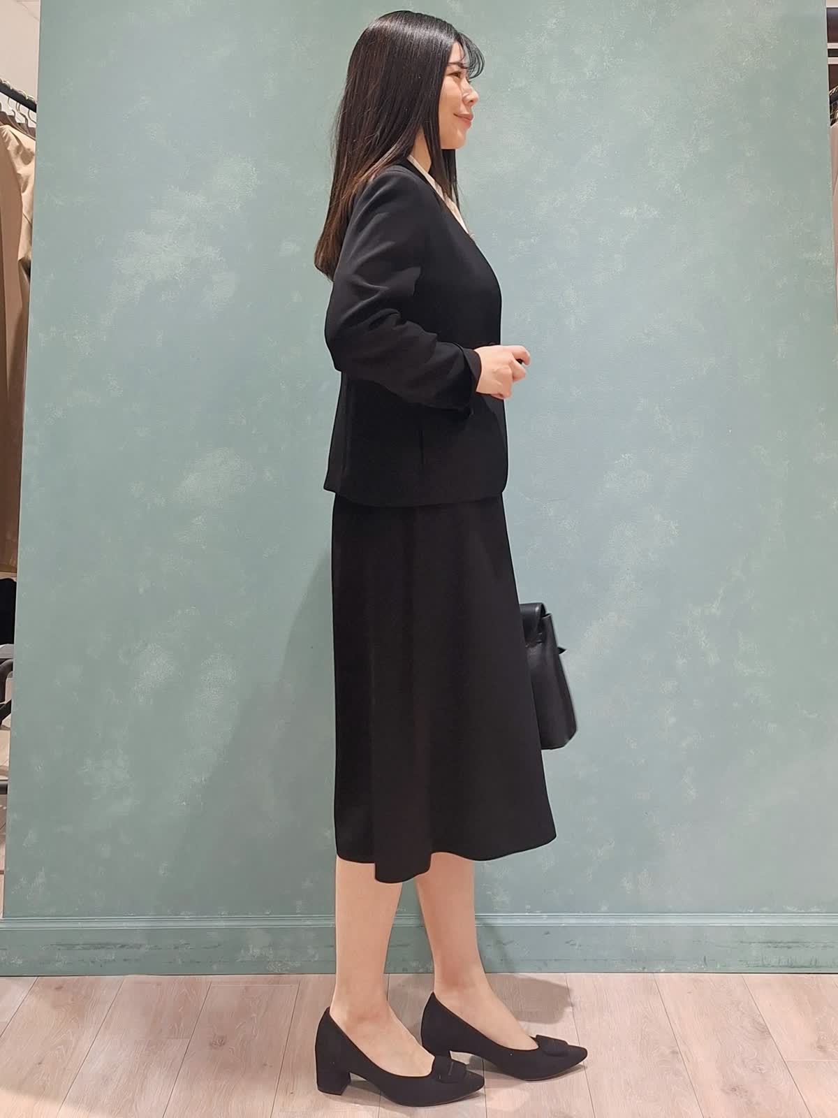 【着用サイズ、カラー】全て7号 ジャケット、スカート/ブラック ブラウス、オフホワイト 大学の入学式や、新社会人にお勧めのスーツスタイルです。ジャケットはカラーレスでコンパクト、スカートはベーシックな膝丈、Aラインシルエットで歩きやすいデザインです。ブラウスは、前開きタイプのボウタイブラウス。着脱が楽チンです。袖口はゴム仕様で、フワッとボリュームのあるお袖も作れます。全て洗えてシワになりにくいイージーケアタイプなのもお勧めのポイントです!