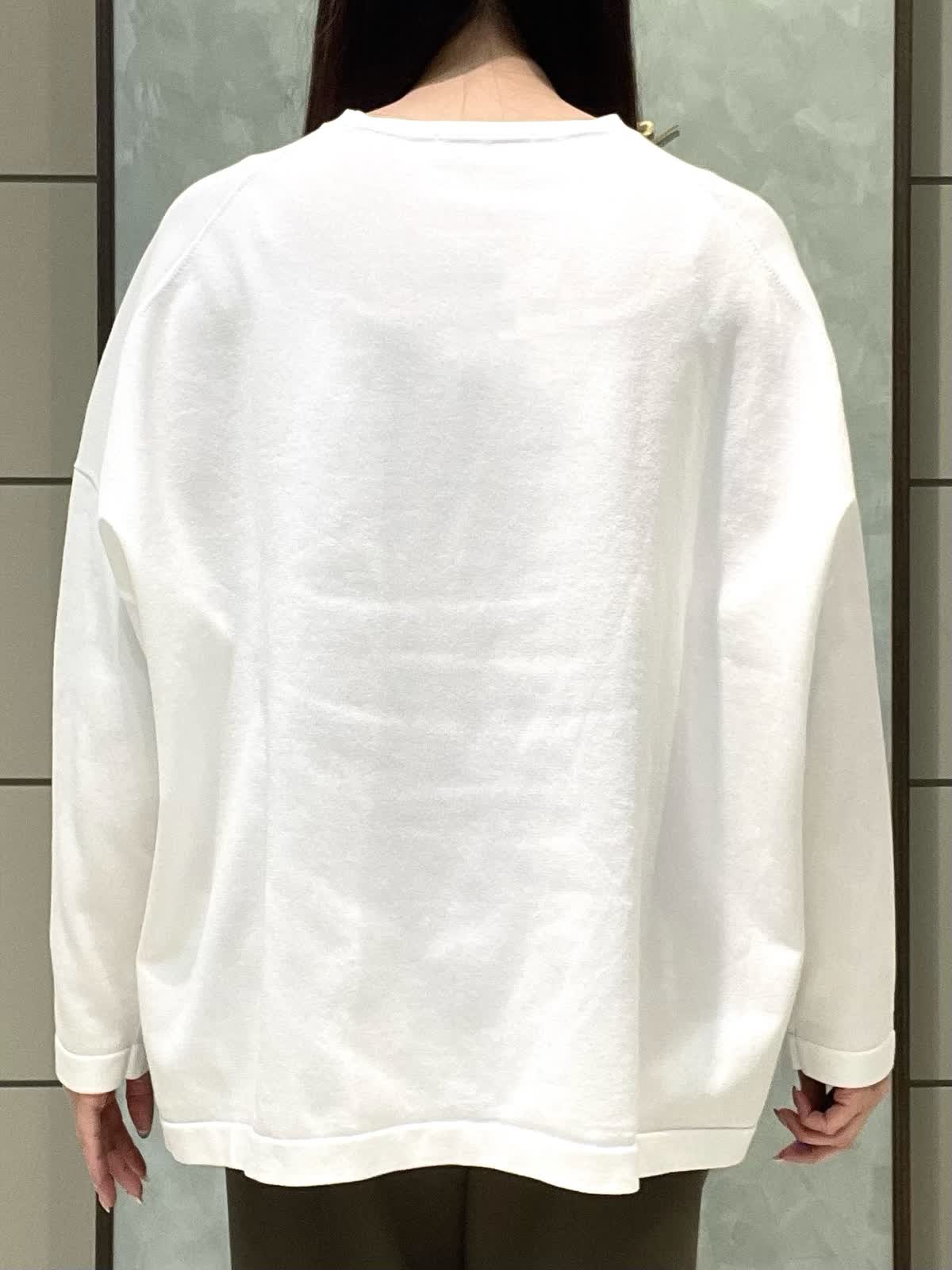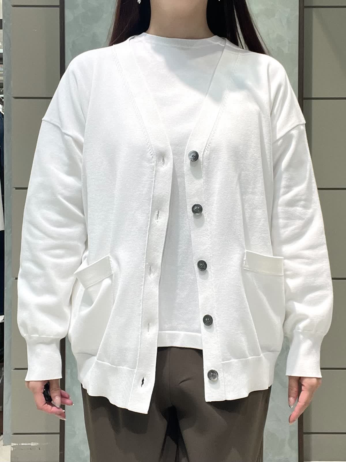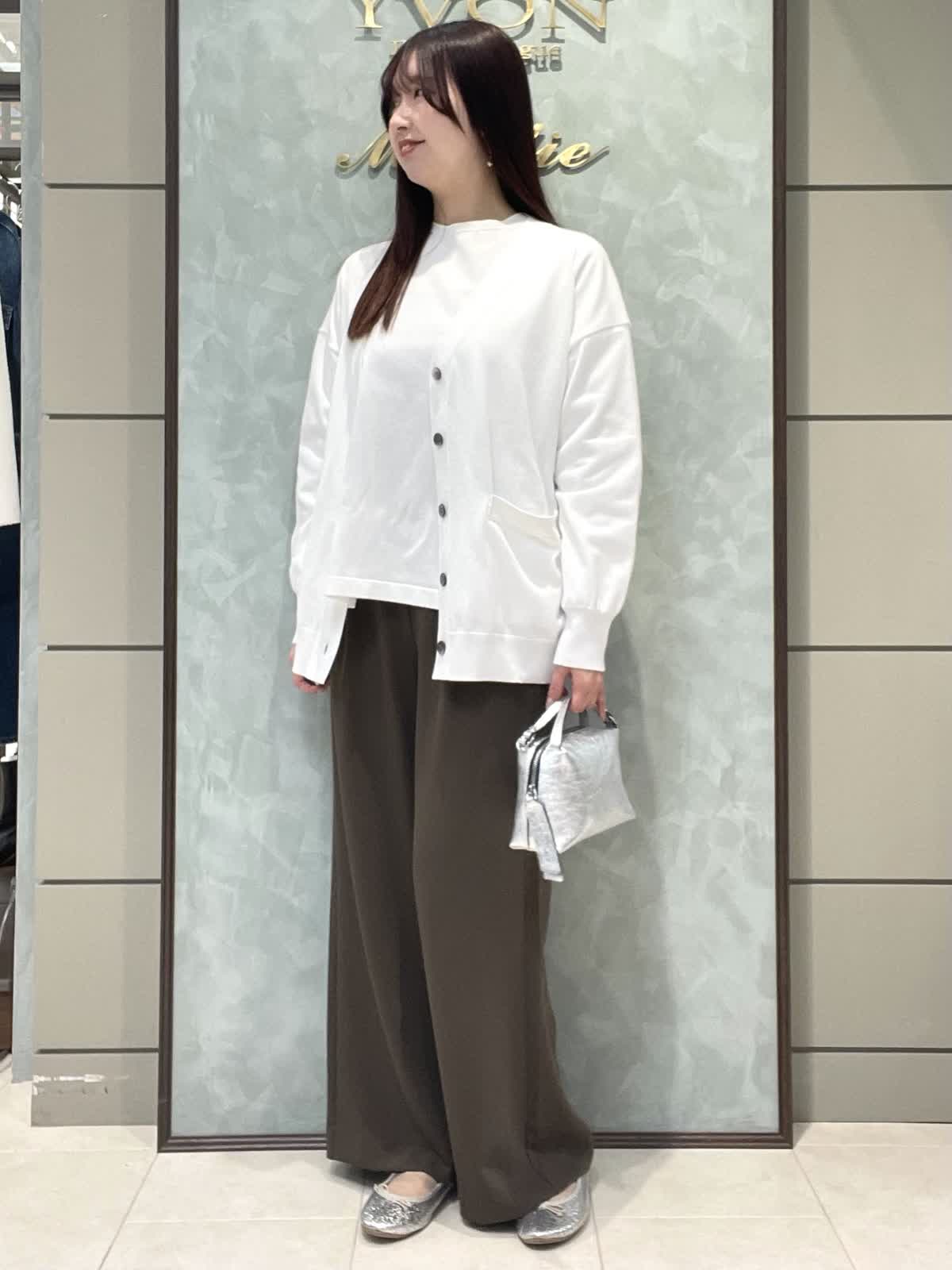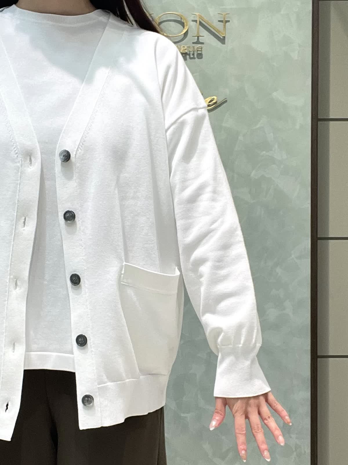 【着用サイズ】カーディガン:9号 ニット:9号 パンツ:7号 ナチュラルなスタイリングです。カーディガンとニットはアンサンブルで着用できます◎重ねてきてもゴワゴワしないです!オーバーサイズでゆったりラフに着用できます。カーディガンはベーシックな形でシーズンや流行関係なく着やすいです。程よく薄手なので、レイヤードスタイルやワンピースに肩掛けなど、色々な着こなしを楽しめます。着丈は後ろがヒップにかかるくらいです。パンツはさらっと落ち感のあるお素材です。太すぎないワイドシルエットで履きやすいです。タック入りで腰周りゆとりがあります。左右ポケットあり、後ろゴム仕様です。着丈は157センチで足の甲にかかるくらいです。