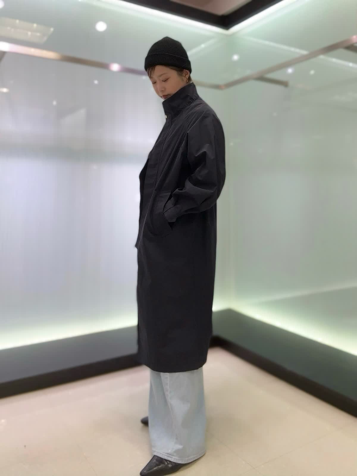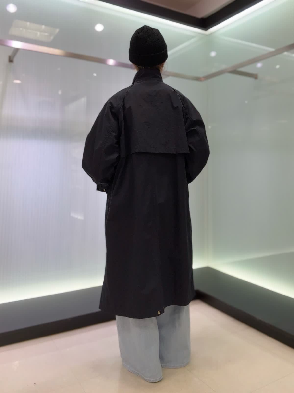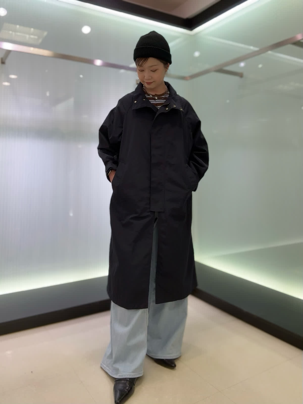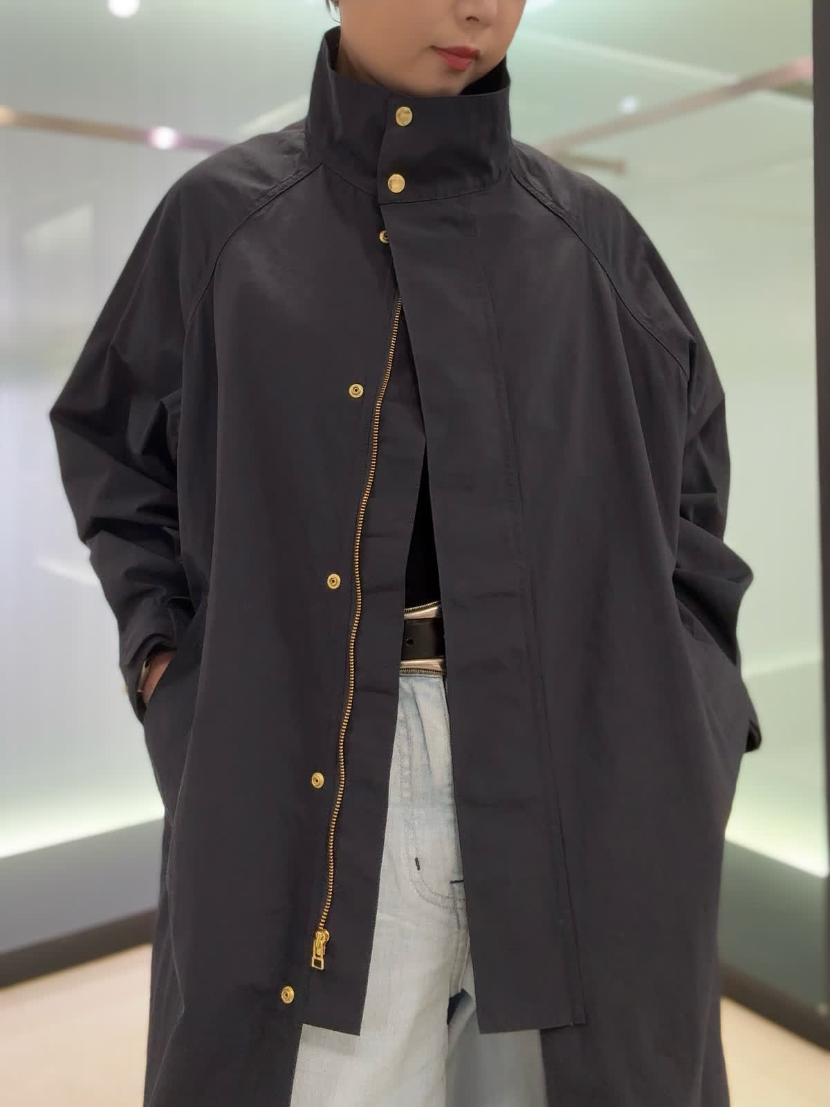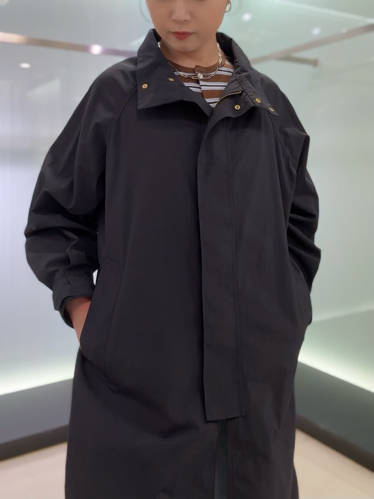 【着用カラー・サイズ】コート : ネイビー/9号 パンツ : サックス/9号 ラグランスリーブなので動きやすく着心地が良いコート。ロング丈のスカートやワンピースにも合わせやすい丈感です。
