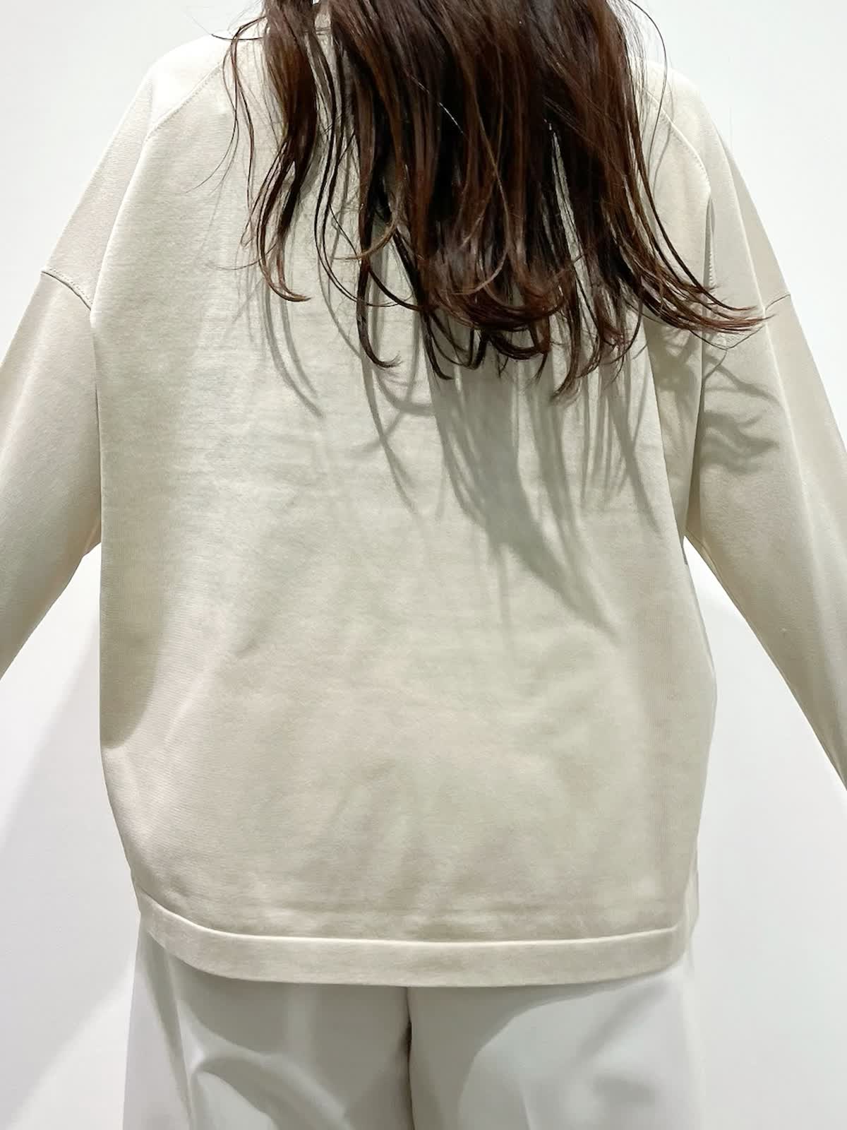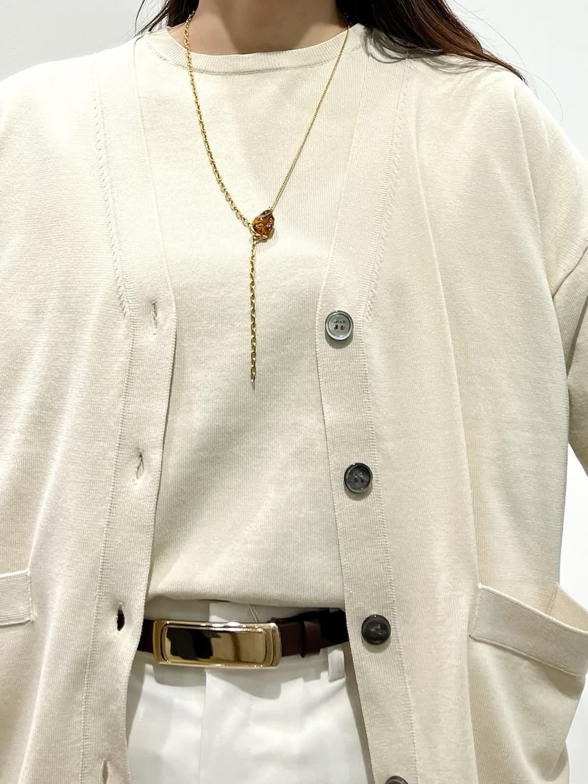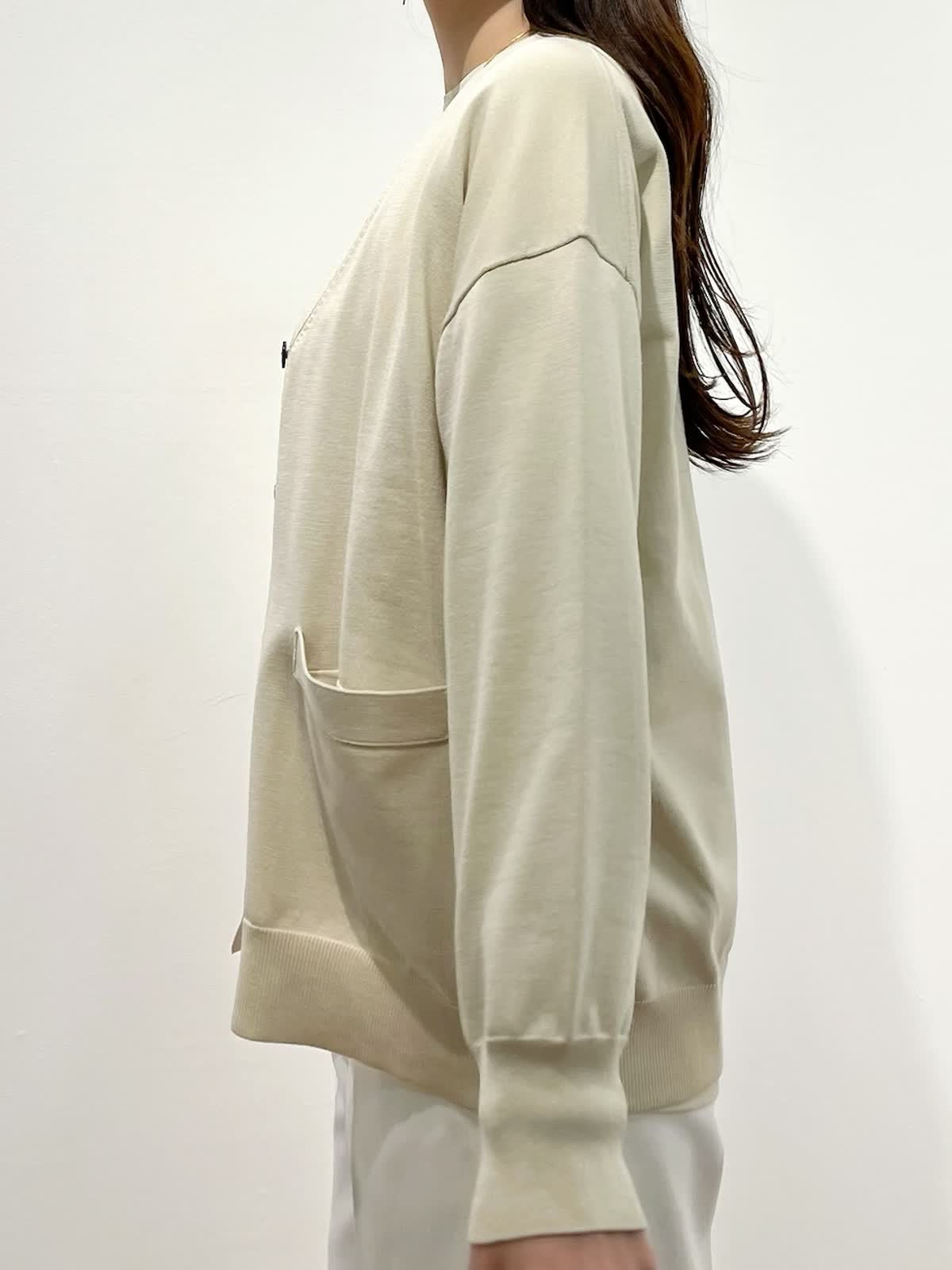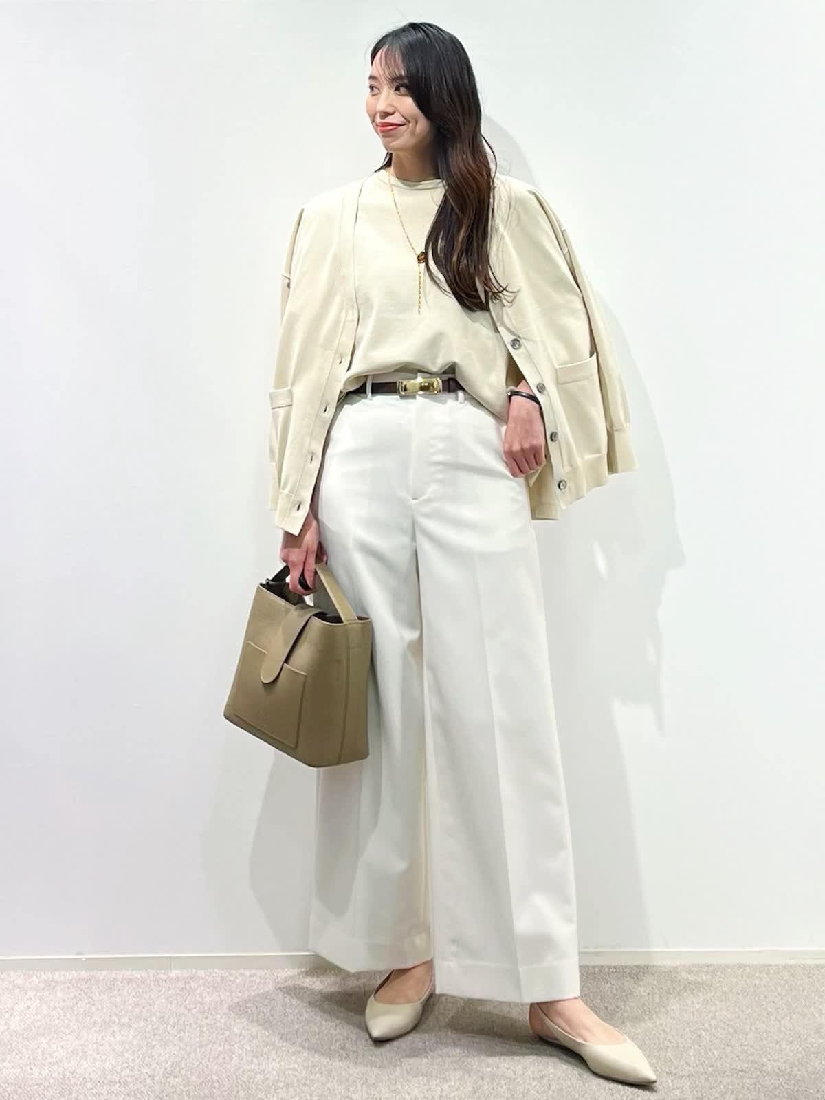 【着用サイズ】カーディガン:9号 ニット:9号 パンツ:9号 【着用カラー】カーディガン:ベージュ ニット:ベージュ パンツ:オフホワイト バッグ:グレーベージュ 「抜け感きれいめデイリーコーデ」 ゆったりめのサイズでこなれ感のある大人のデザインニット。ハリ感のある立体的なシルエットと、サイドスリットで、オーバーでもすっきり着こなせます。同素材のカーディガンと合わせると、コーディネートに万能。ボトムは、白のワイドパンツで、春のデイリーに着回せる淡色コーデの完成。ロングシーズン活躍出来るおすすめの春コーデです。