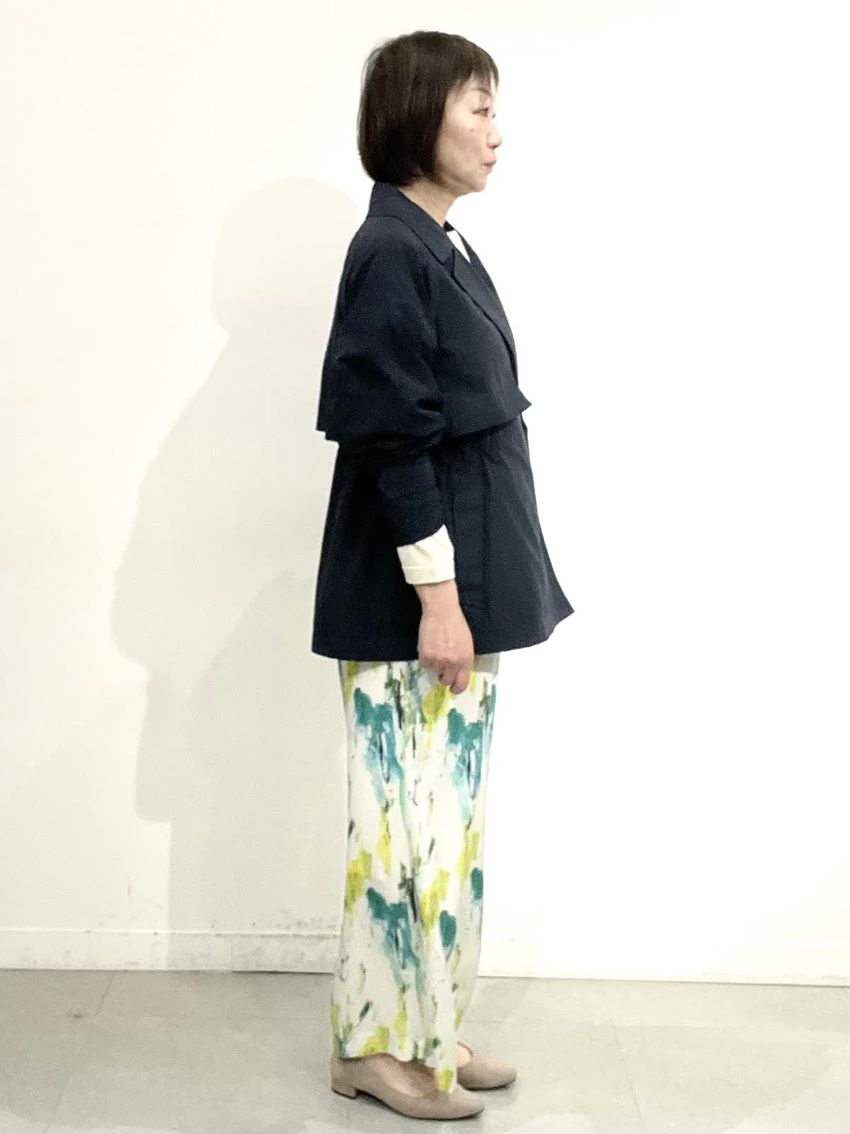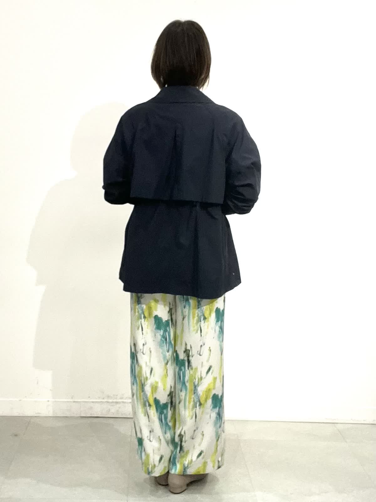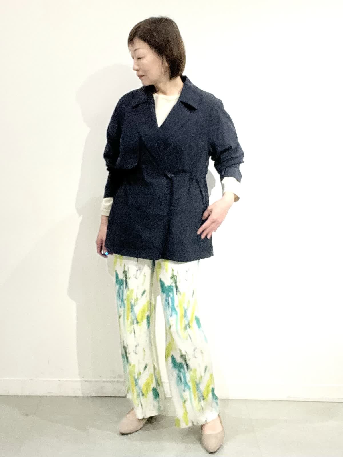 【着用サイズ】全て09 パンツにもスカートにも合わせやすいコートは、軽くシワになりにくいです。中に付いているドロストで、ウエストラインを調整でき、インナーに合わせてゆったりめにも着ていただけます。春らしさ満点のきれいカラーのサラサラパンツに、柔らかなニットを合わせています。着やすく、ノンストレスできれいめカジュアルを楽しんでいただけます。
