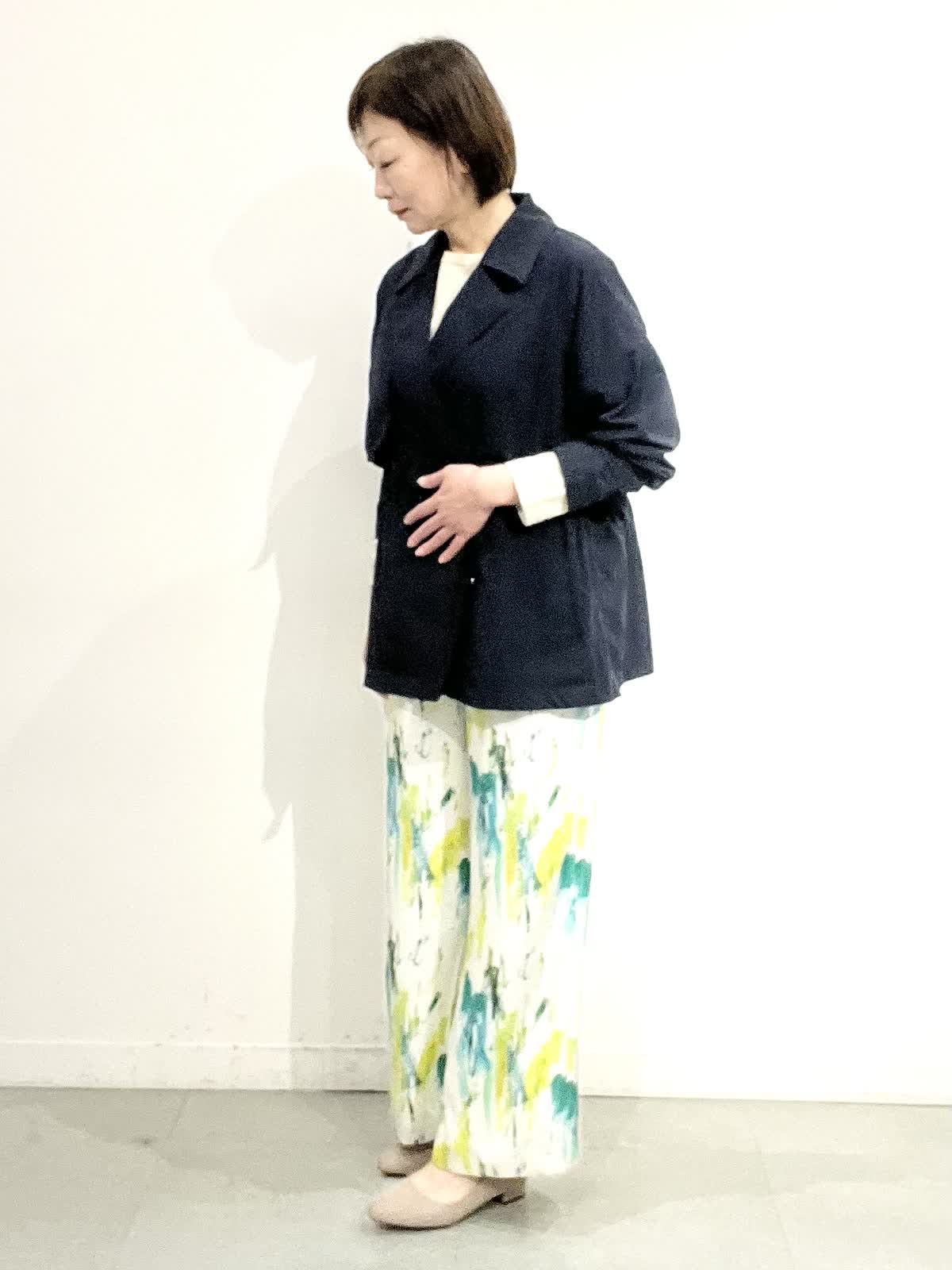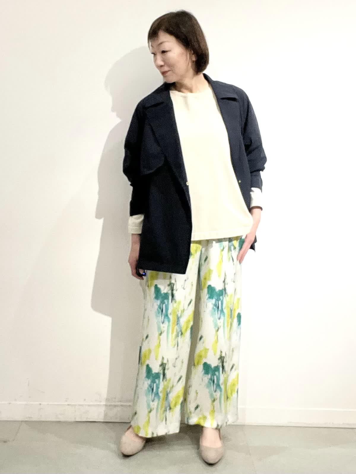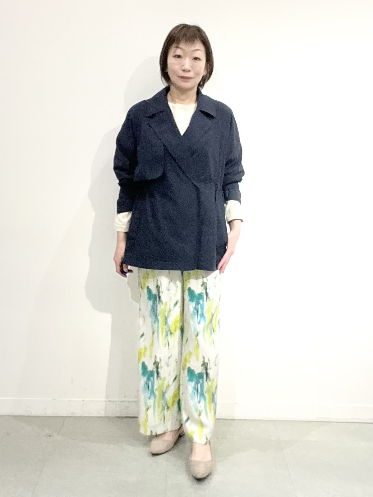 【着用サイズ】全て09 パンツにもスカートにも合わせやすいコートは、軽くシワになりにくいです。中に付いているドロストで、ウエストラインを調整でき、インナーに合わせてゆったりめにも着ていただけます。春らしさ満点のきれいカラーのサラサラパンツに、柔らかなニットを合わせています。着やすく、ノンストレスできれいめカジュアルを楽しんでいただけます。