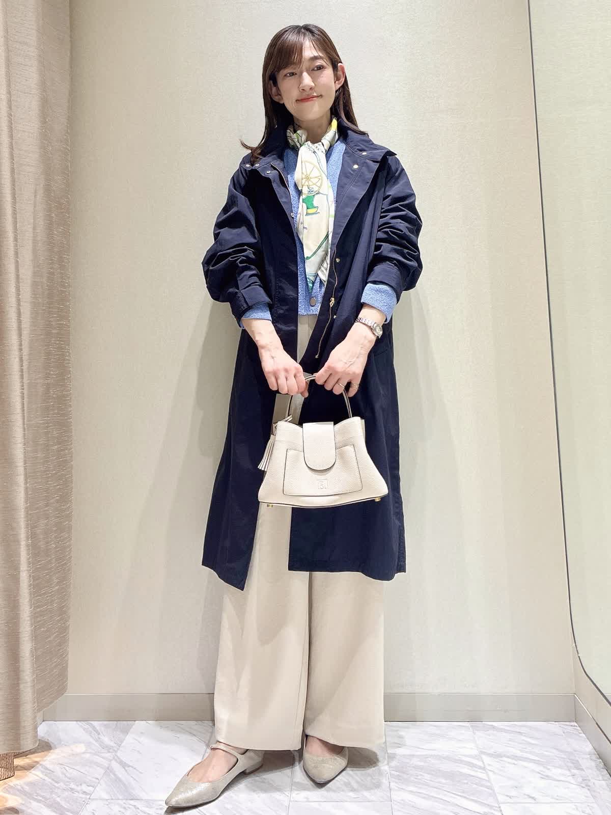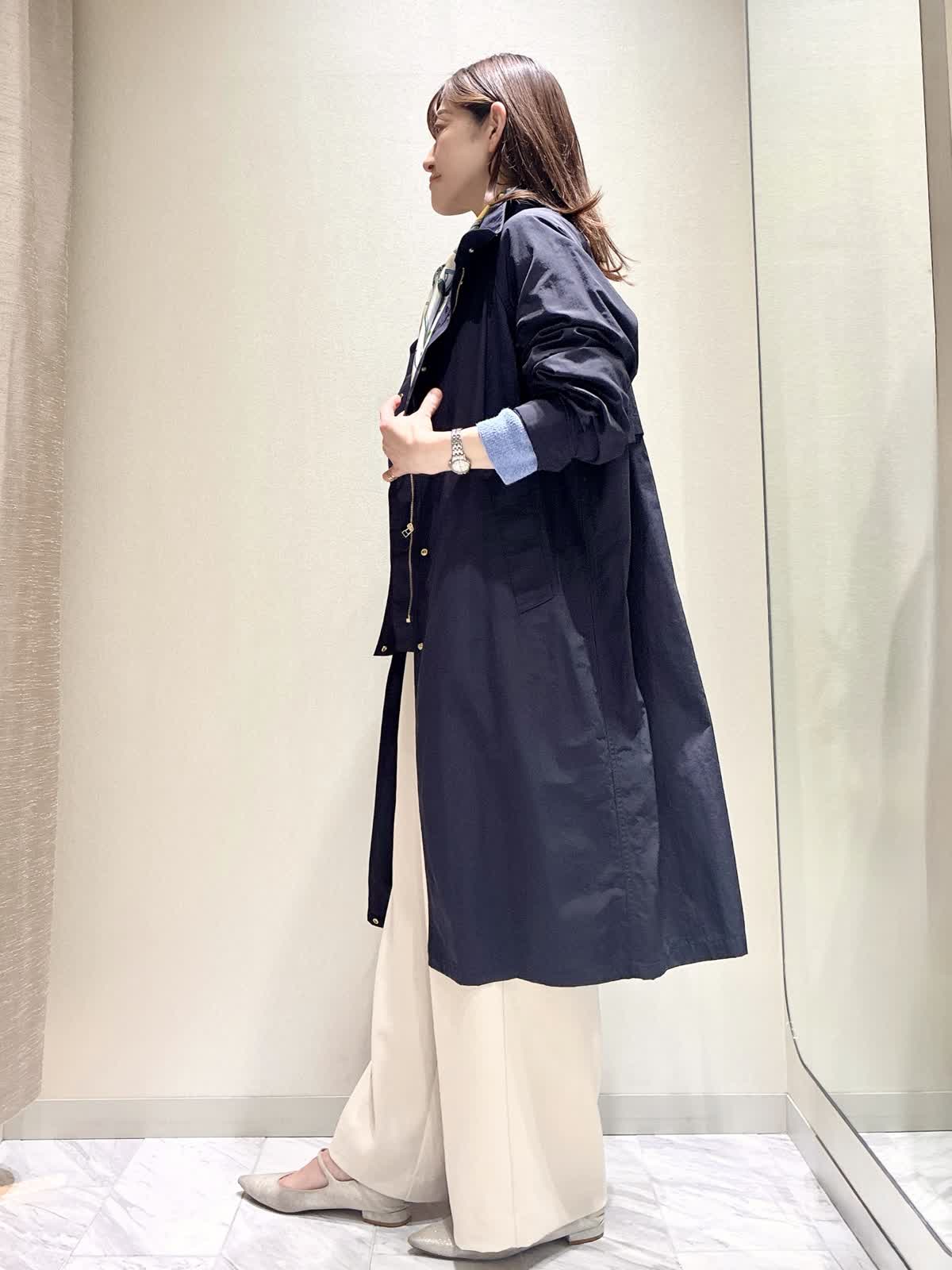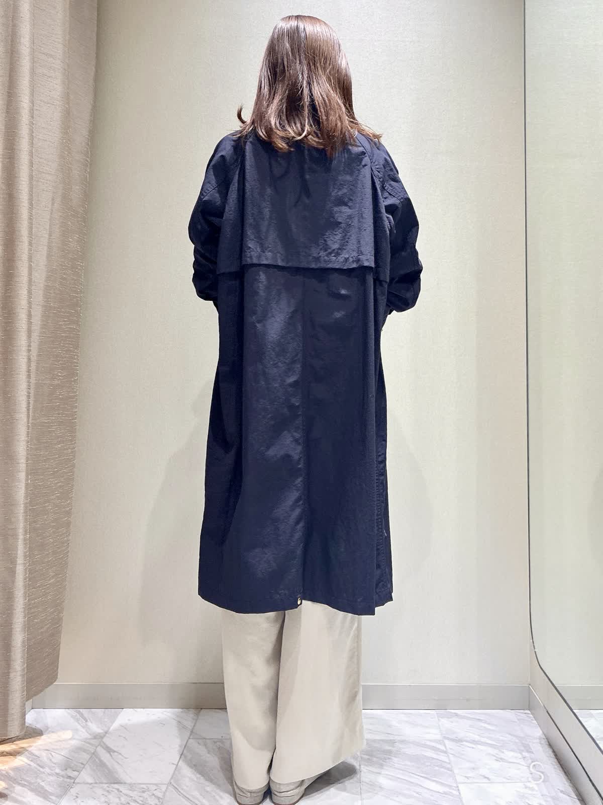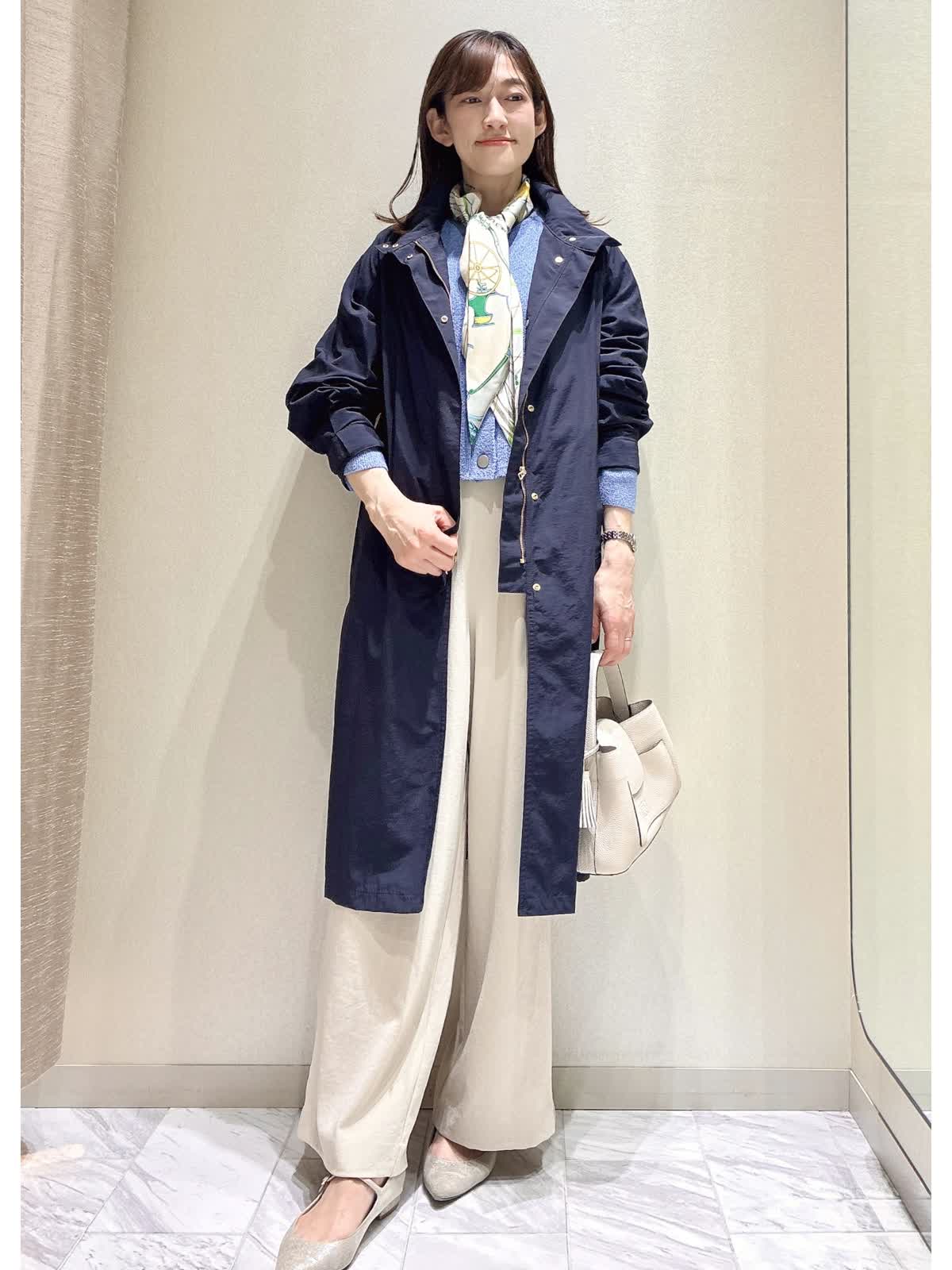 【着用サイズ】全て:9号 【着用カラー】コート:ネイビー カーディガン:サックス パンツ:ベージュ スカーフ:グレー バッグ:オフホワイト INEDの新作、春コートスタイリングのご紹介です。 コートは、ナイロン素材ででシワになりにくくとても軽い素材です。裏地が無く、梅雨の時期までお使いいただけると思います。 アームはラグラン袖でゆったりしていますので、寒い日には少し厚手のインナーを着込んで温度調整しやすいです。 コンパクトに持ち運びやすく、普段使いだけでなく、ご旅行用にもおすすめアイテムです。
