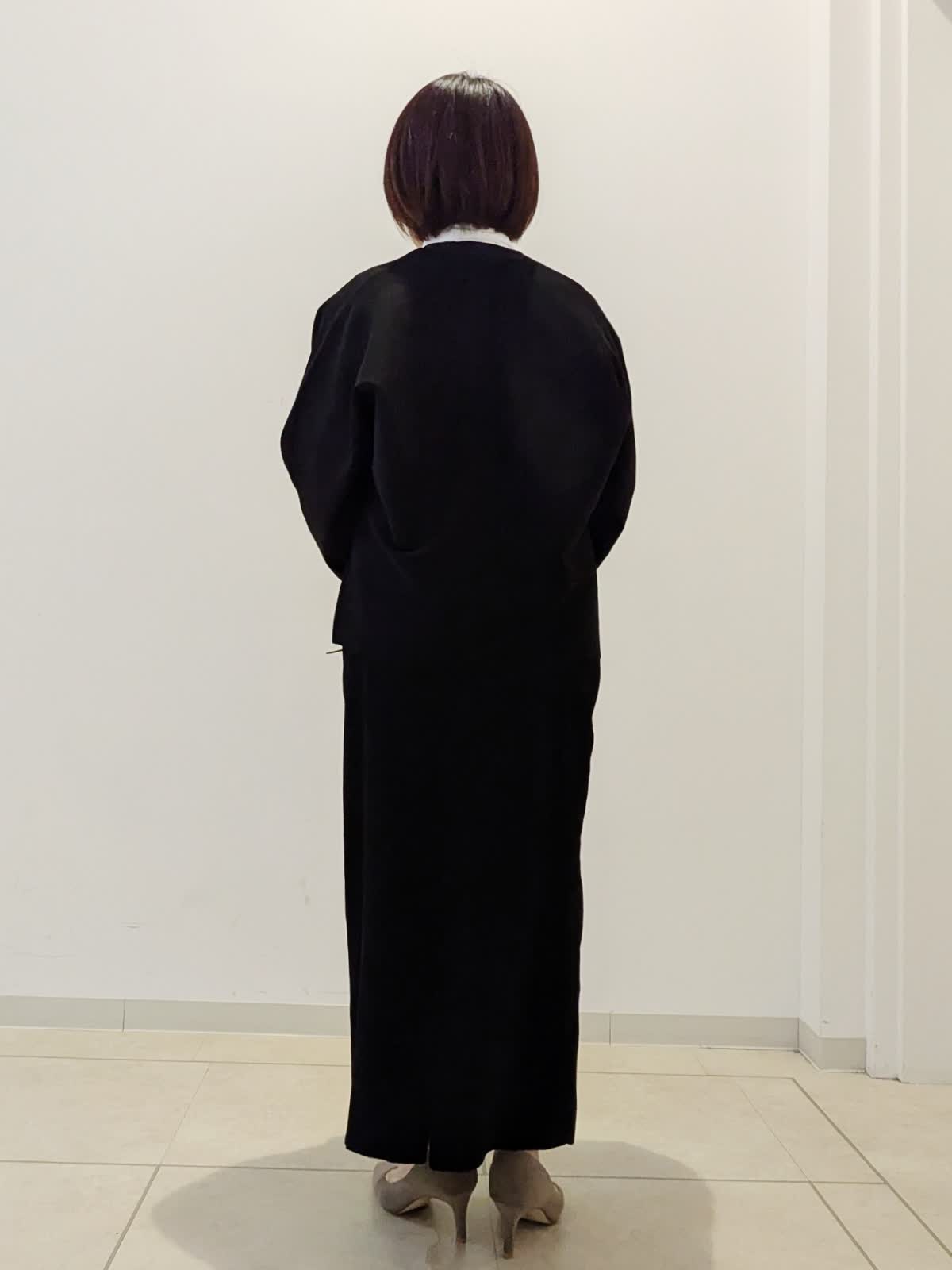 【着用サイズ】カーディガン:フリー ブラウス:フリー スカート:フリー【着用カラー】カーディガン:ブラック ブラウス:オフホワイト スカート:ブラック ニットセットアップでお仕事コーデです。カーディガンはVネックのドルマンスリーブ。スカートは総ゴム仕様のAライン。上品な光沢となめらかな肌触りで伸縮性があるので着心地が楽です。インナーにブラウスを合わせるときちんと感がほしいときにも使えます。