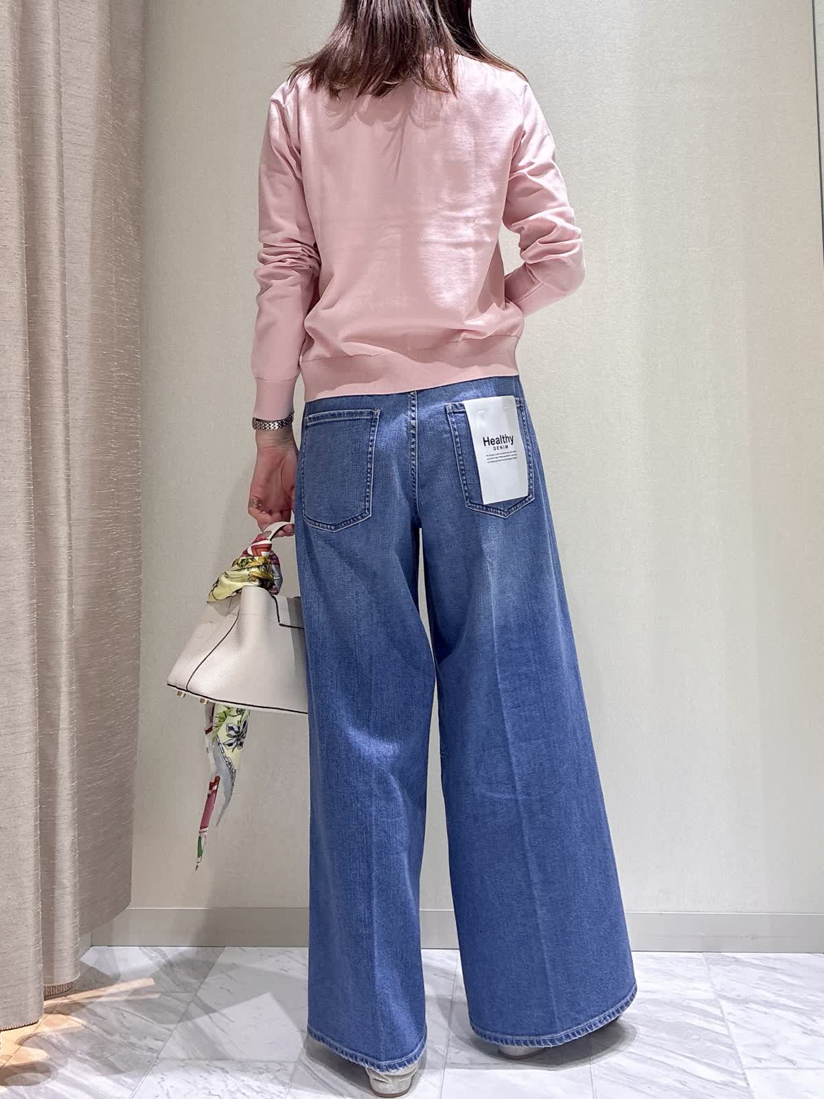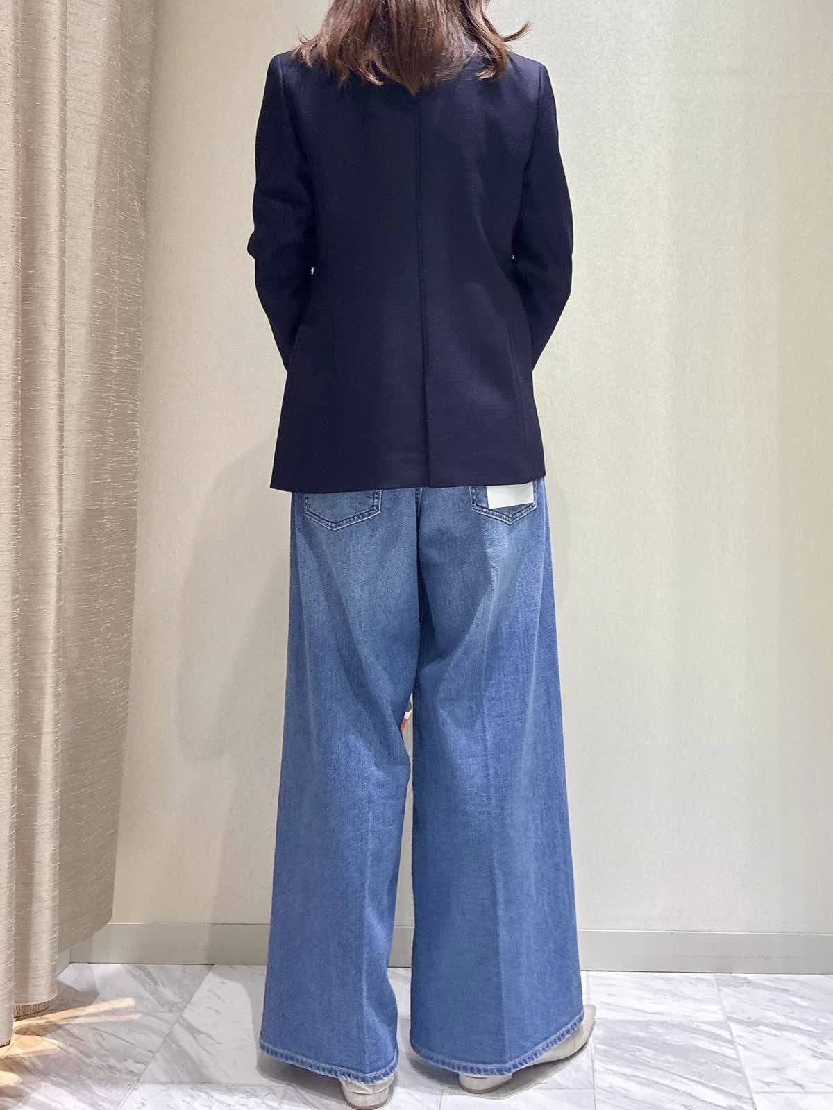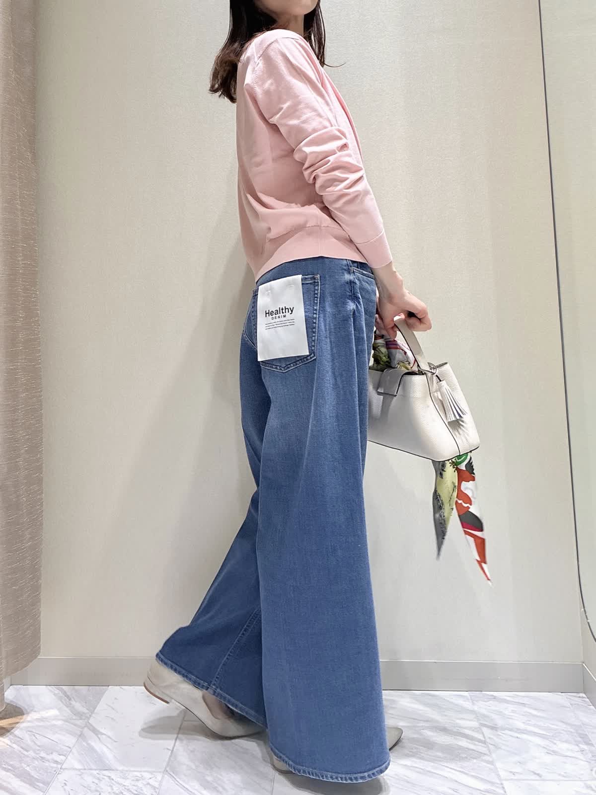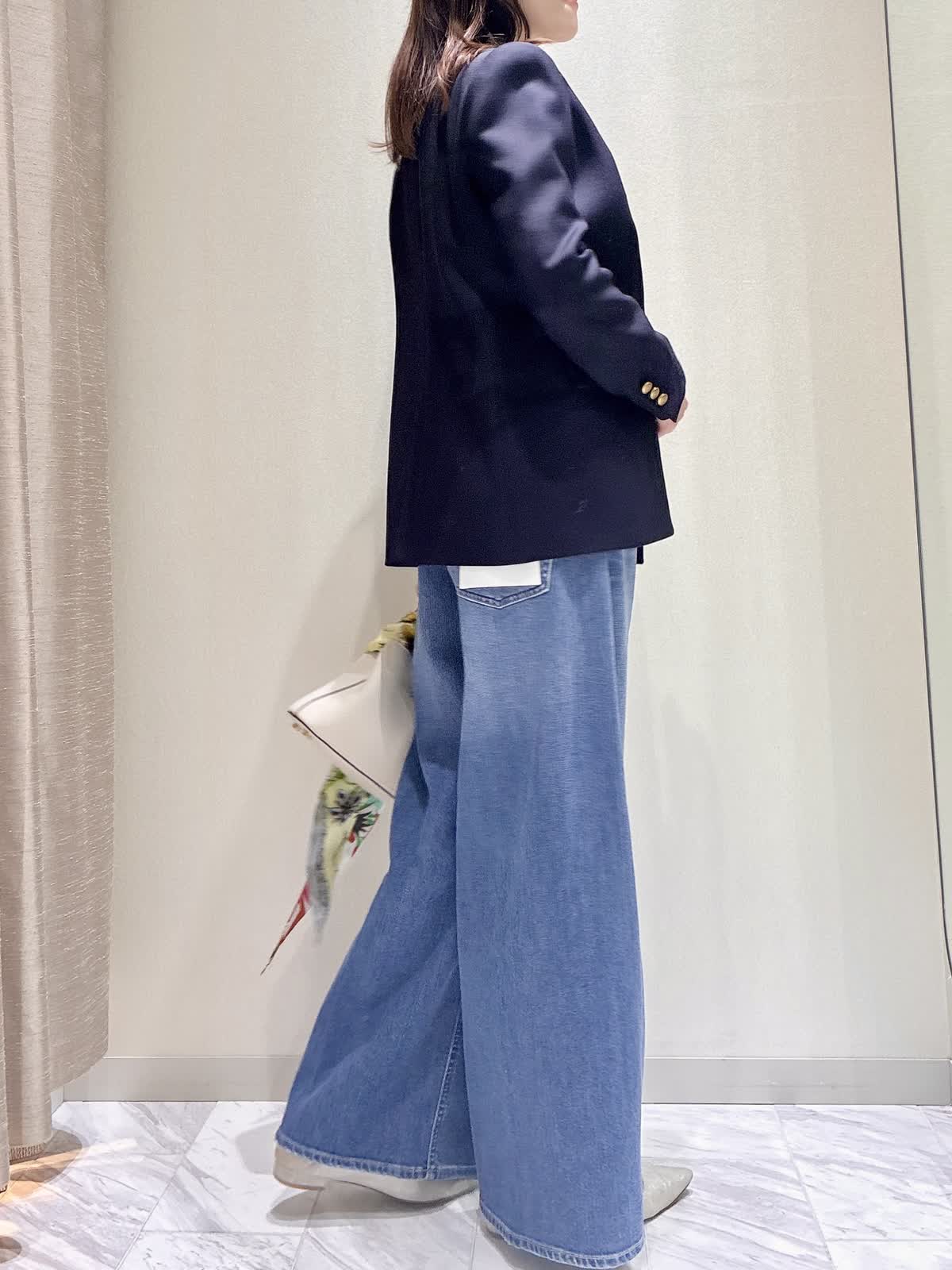 【着用サイズ】ニット/ジャケット:9号 デニム:11号 【着用カラー】ジャケット:ネイビー ニット/カーディガン:ピンク デニム:インディゴ ベルト:キャメル バッグ:オフホワイト スカーフ:グレー ネックレス:ゴールド 休日のお出かけにもおすすめ、INEDのデニムスタイルのご紹介です。 デニムはとても柔らかく履き心地の良い素材です。ワイドシルエットですが広がりすぎず、程良い太さです。 トップスには、INEDの定番ダブルジャケットを合わせました。ネイビーカラーは色合わせがしやすく、羽織るだけで様になります。 インナーは春らしい淡いピンクのニットを合わせました。ハイゲージでとても柔らかい素材です。シンプルなデザインで、着回しもしていただきやすいです。
