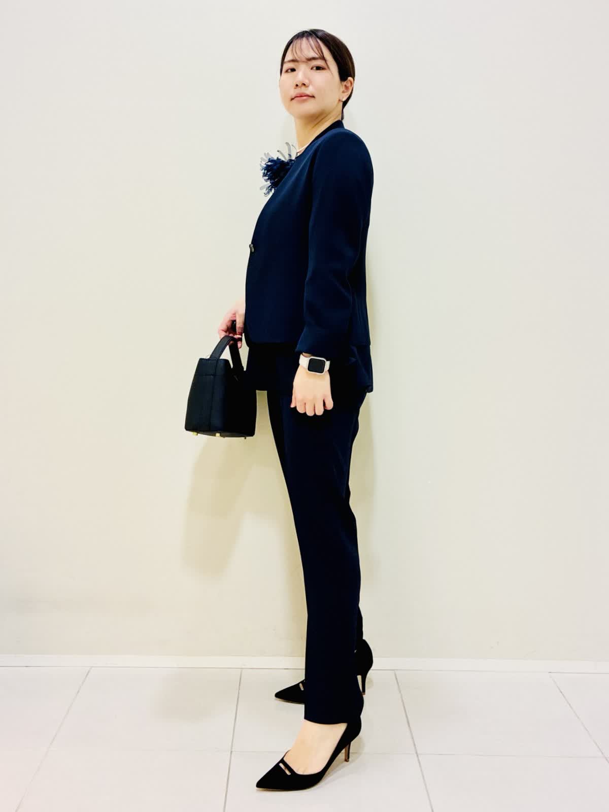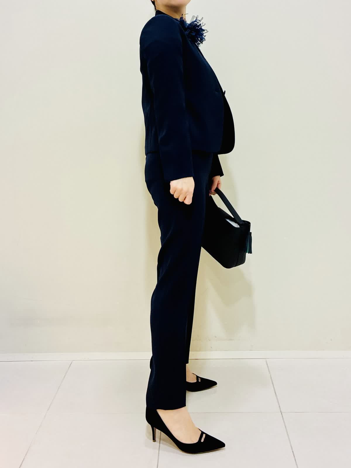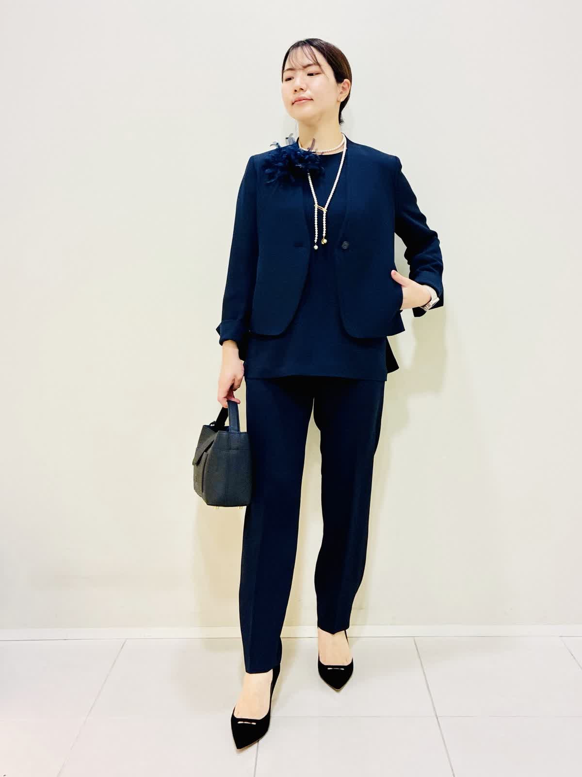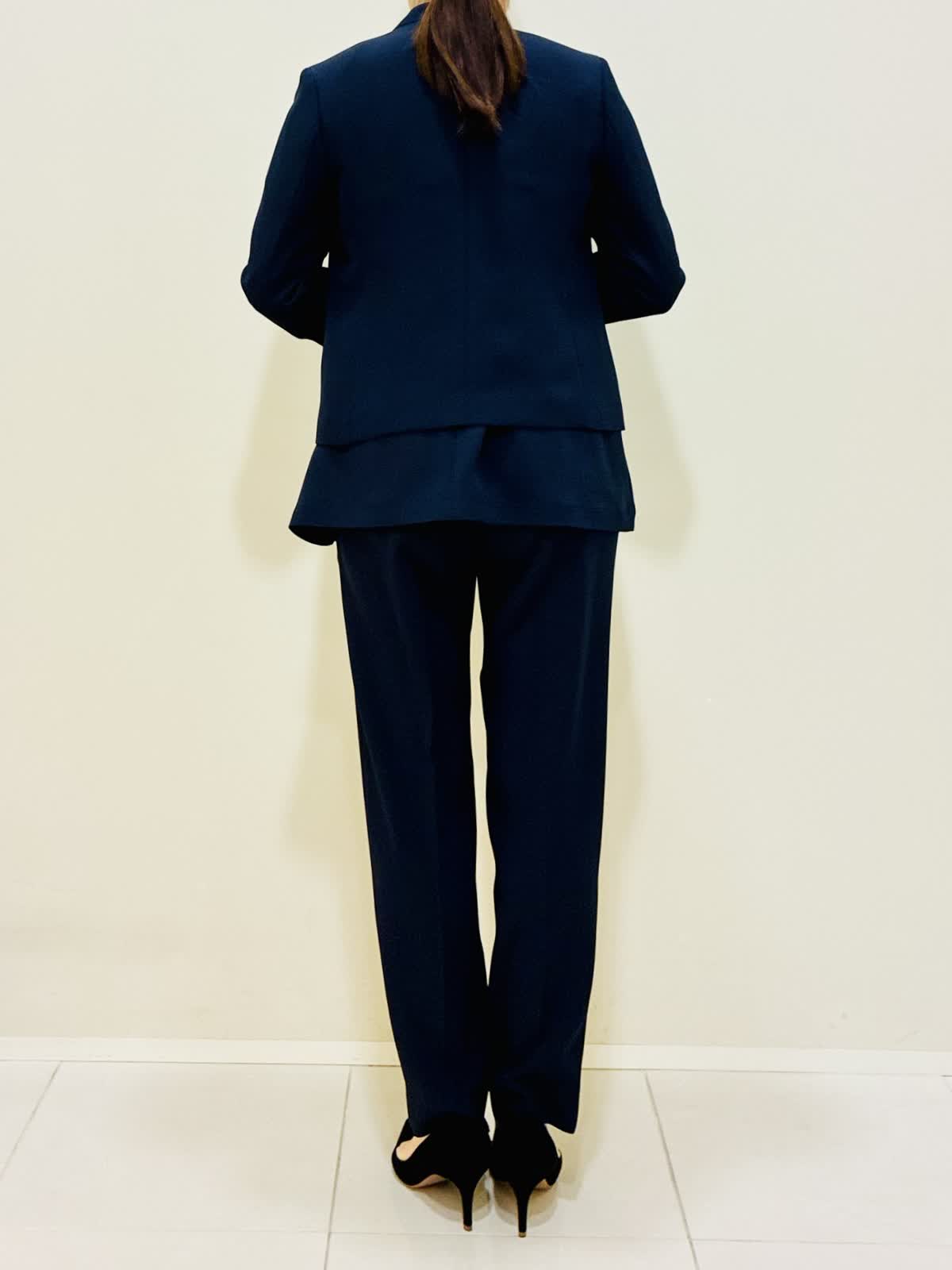 【着用サイズ】 ジャケット:ネイビー:9号サイズ ブラウス:ネイビー:9号サイズ パンツ:ネイビー:9号サイズ 『セットアップスーツ』 ジャケット×パンツ、ブラウス×パンツでも着れるセットアップです。 通勤やセレモニーにも着れて、合わせ方で雰囲気を変えれます。 パンツはスッキリ見えるデザインと柔らかい素材で毎日着たくなります。