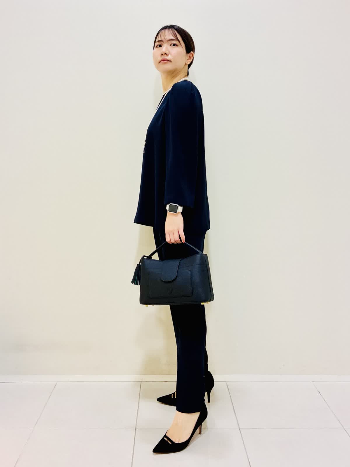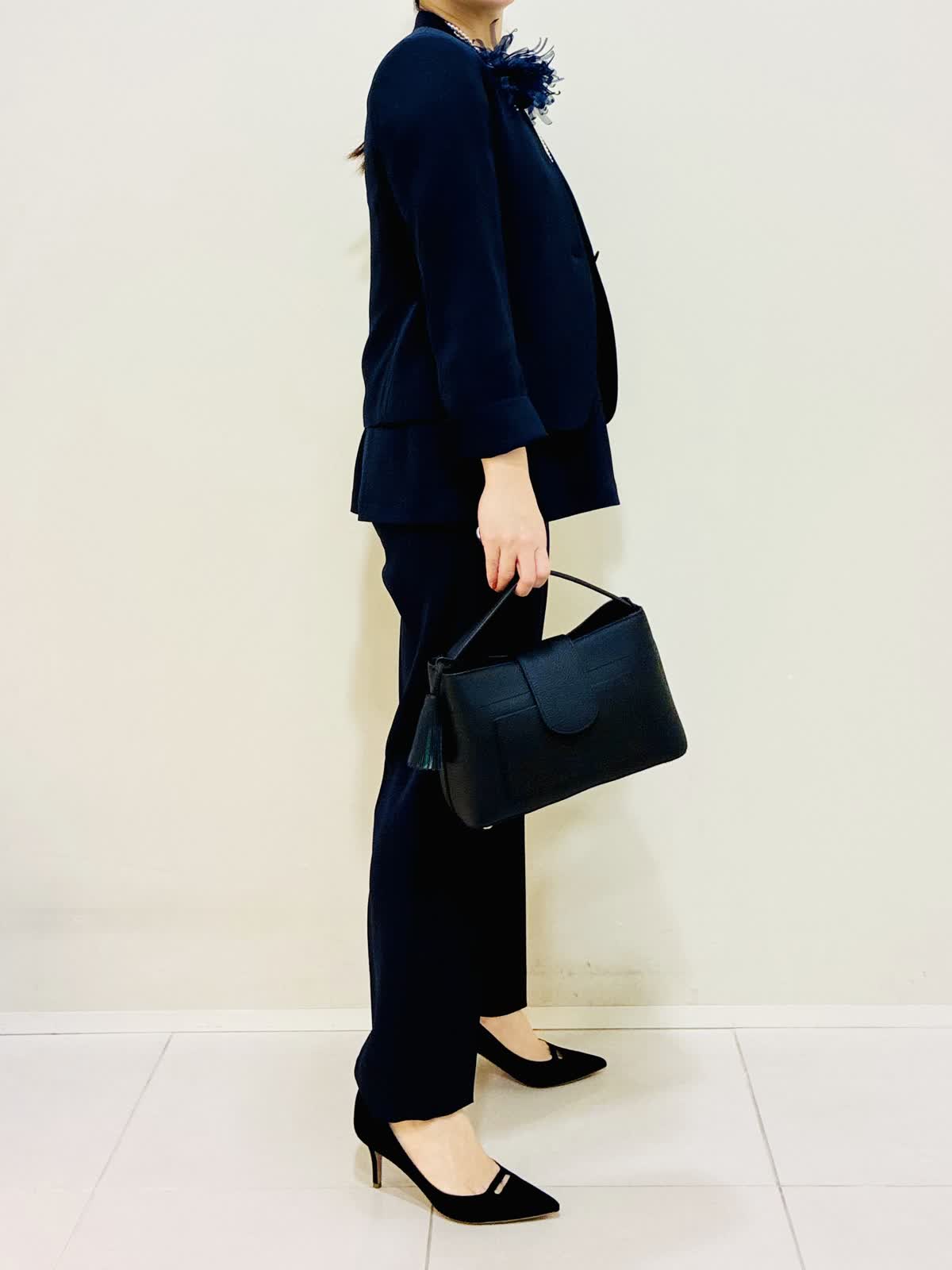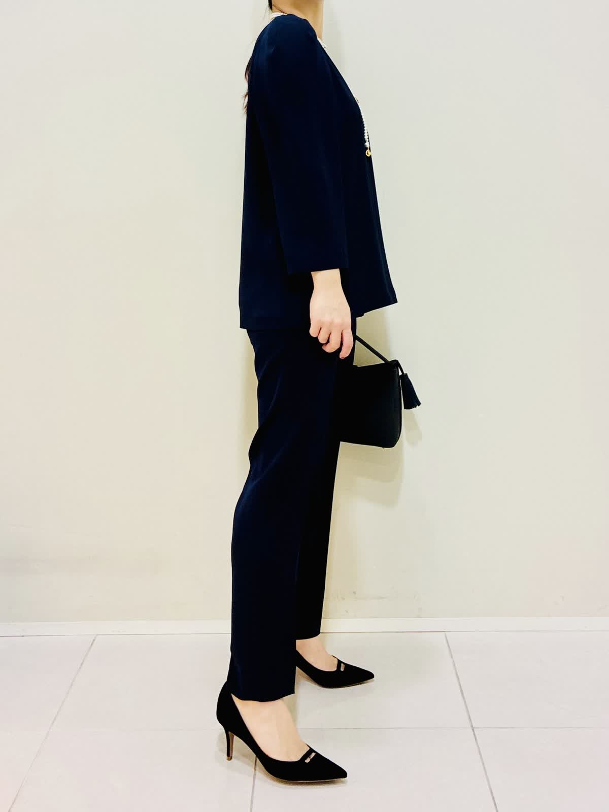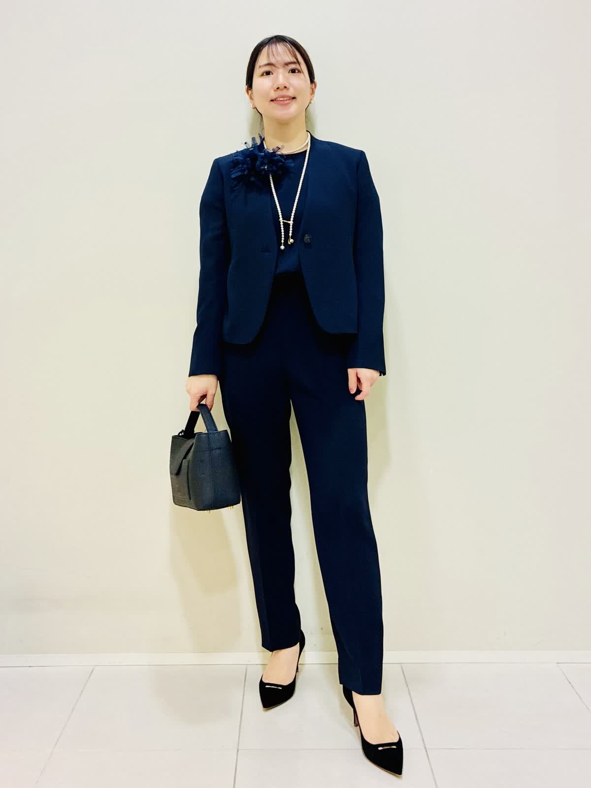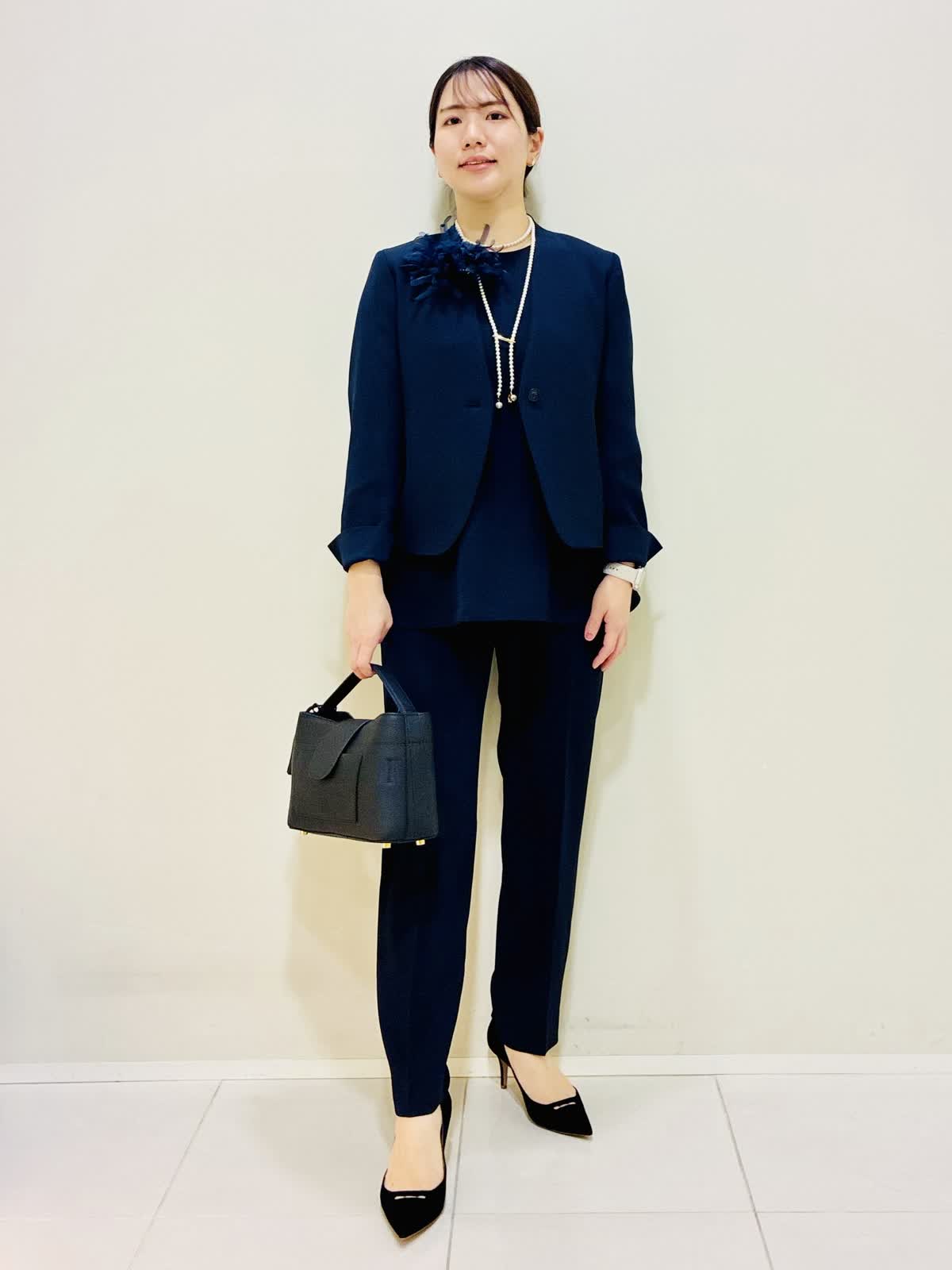 【着用サイズ】 ジャケット:ネイビー:9号サイズ ブラウス:ネイビー:9号サイズ パンツ:ネイビー:9号サイズ 『セットアップスーツ』 ジャケット×パンツ、ブラウス×パンツでも着れるセットアップです。 通勤やセレモニーにも着れて、合わせ方で雰囲気を変えれます。 パンツはスッキリ見えるデザインと柔らかい素材で毎日着たくなります。