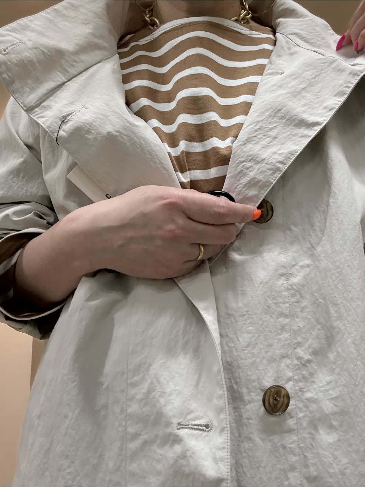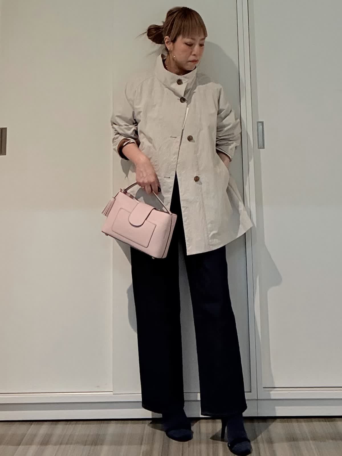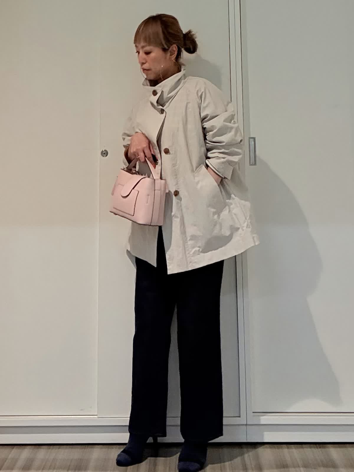 【着用サイズ】コート:フリーカットソー:フリーパンツ:9号ヒップが隠れる丈感のコート。程よいテントラインとスタンドカラーが目線をあげてスタイルアップ&小顔効果!裏地無しで軽く、ゆとりのあるサイズ感なので、さっと羽織るだけでこなれた印象に。カジュアルスタイル、オンスタイル、どちらにも活躍してくれるデイリー使いにぴったりなコート◎ Le minor定番のドルマンカットソー。型はバストとアームホールをゆったりと大きめに設定。着丈は短めに仕上げており、女性らしいシルエット!FAVORITEオリジナルシリーズ《CANDY》バック