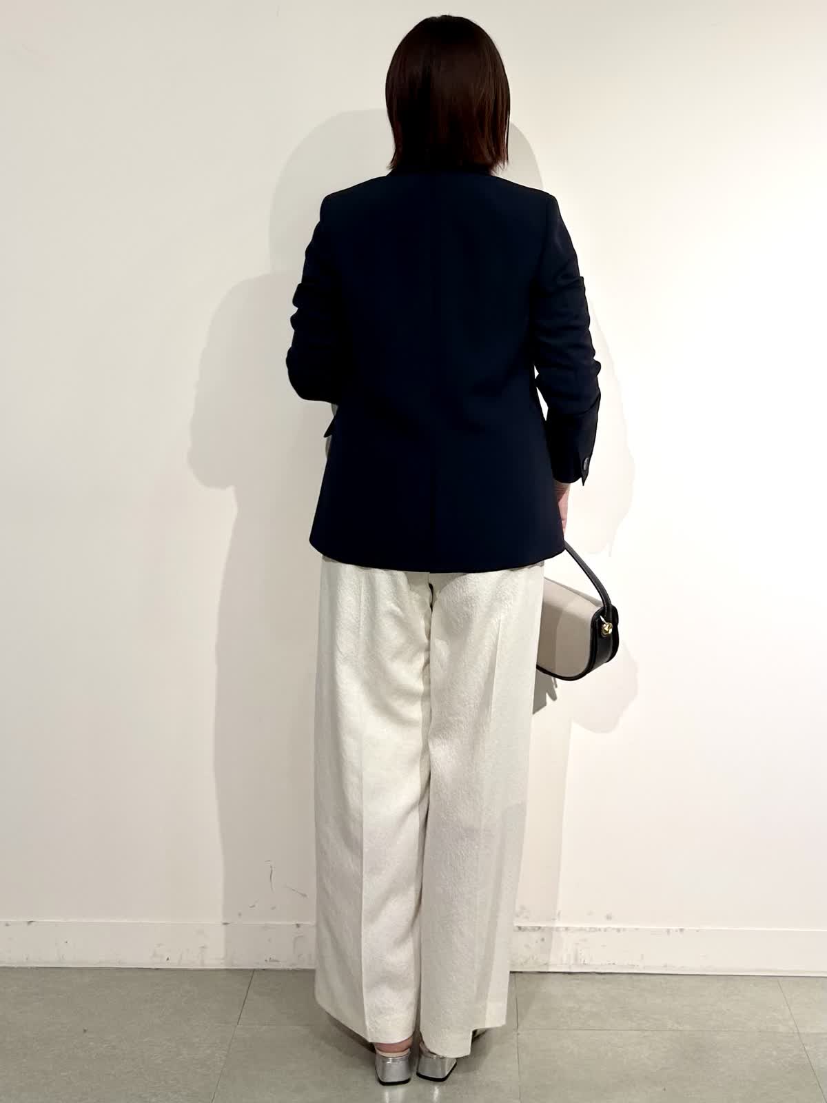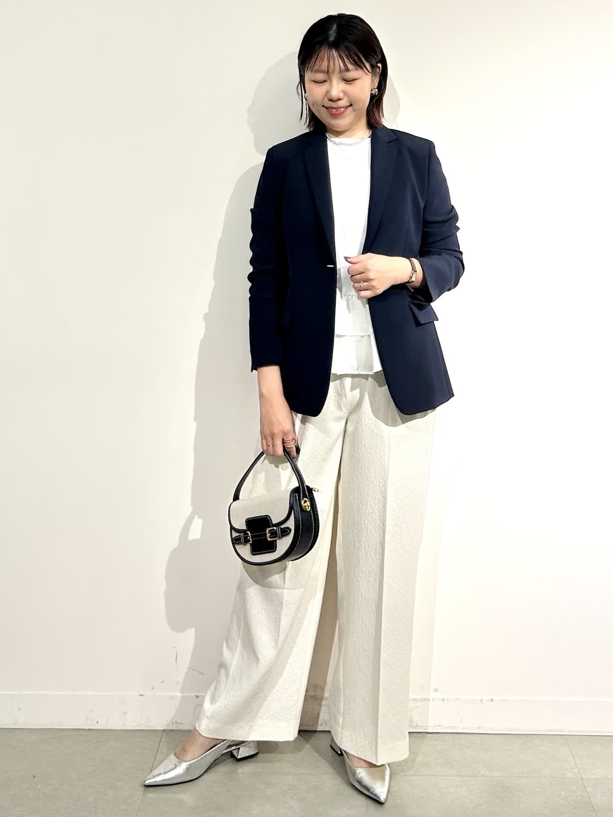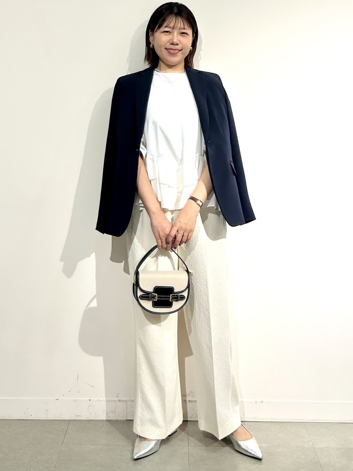 【着用カラー】ジャケット:ネイビー カットソー:オフホワイト パンツ: アイボリー