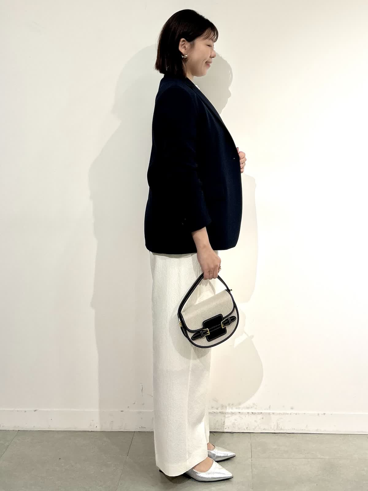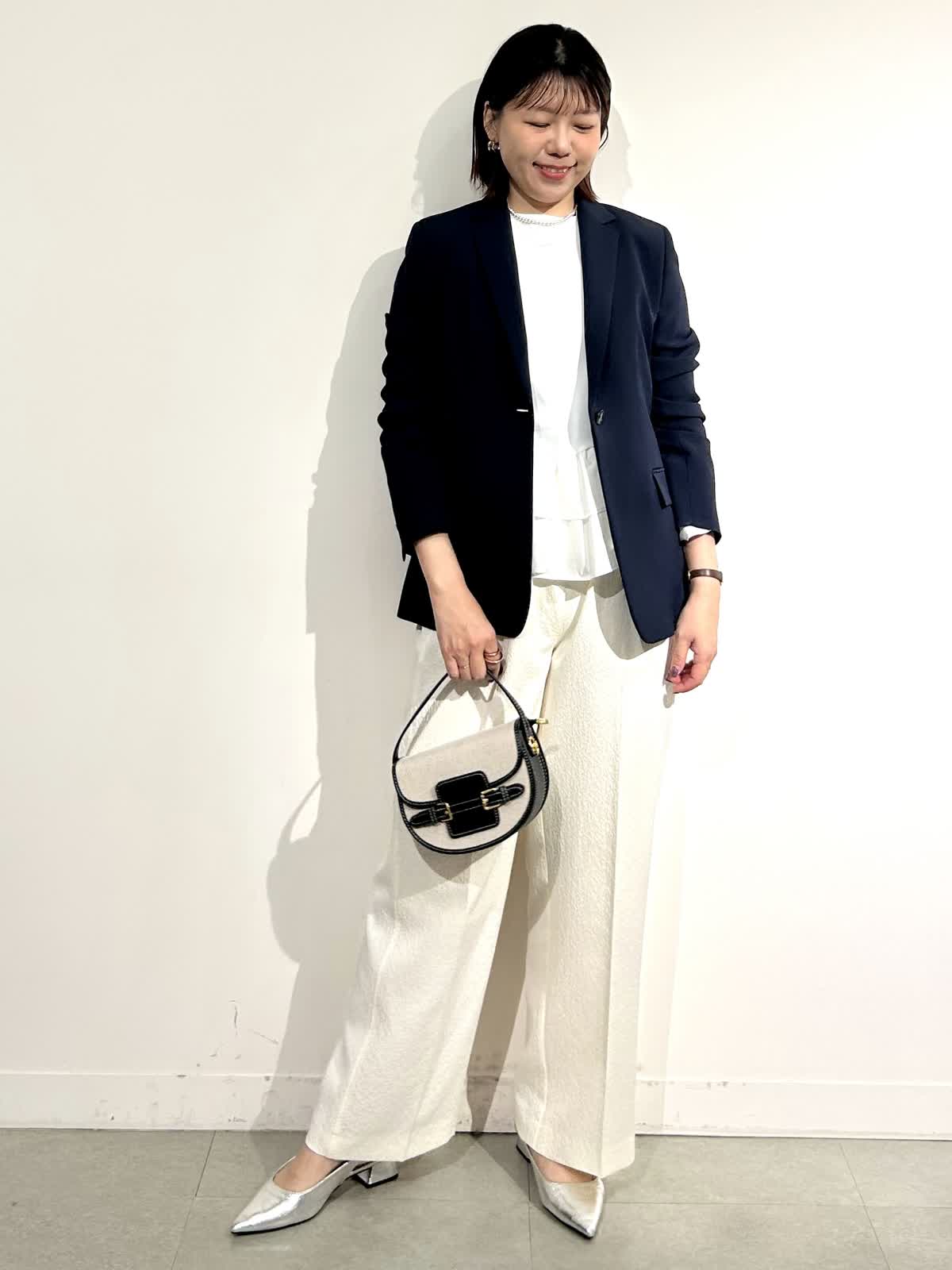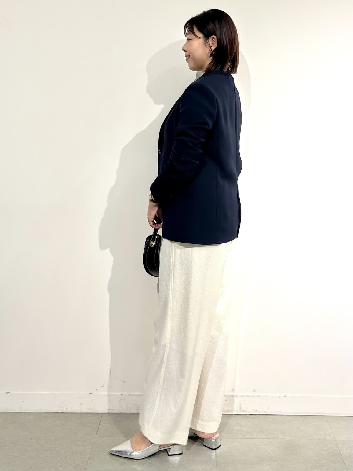 【着用カラー】ジャケット:ネイビー カットソー:オフホワイト パンツ: アイボリー