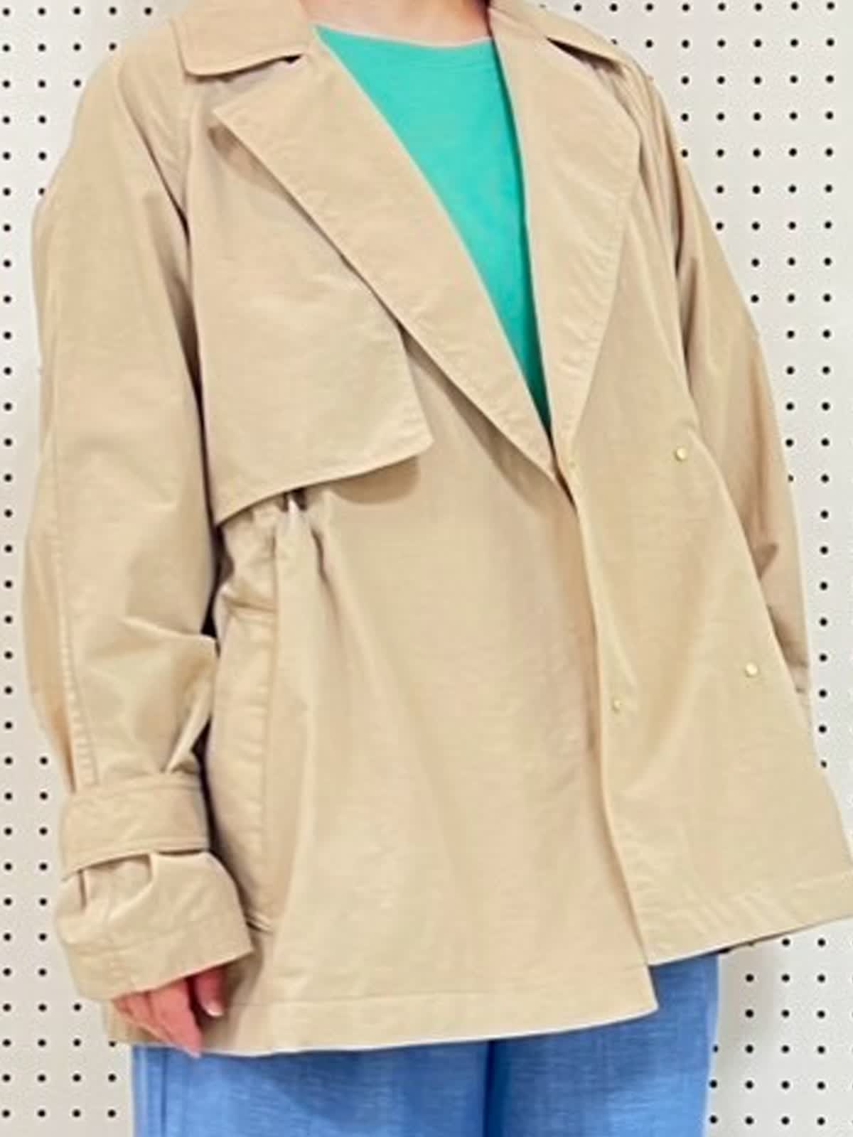 着用サイズ】9号、フリー【着用カラー】コート:キャメル ニット:グリーン パンツ:サックス 大人のカジュアルコーディネート。コートは身長149p、9号着用でヒップライン隠れる長さ。とても軽くて羽織りやすいです。綺麗めのデザインなので、セレモニーにも普段にも着回しやすいです。パンツは5p丈詰めしています。
