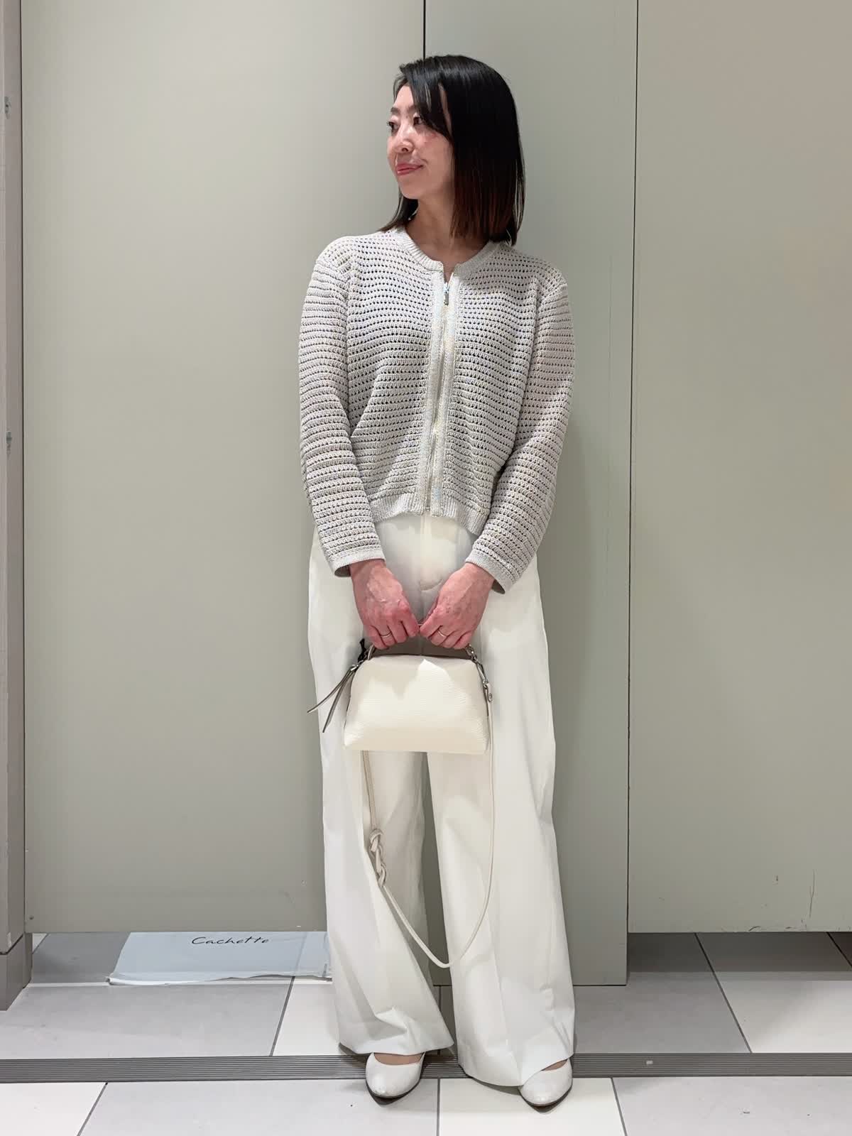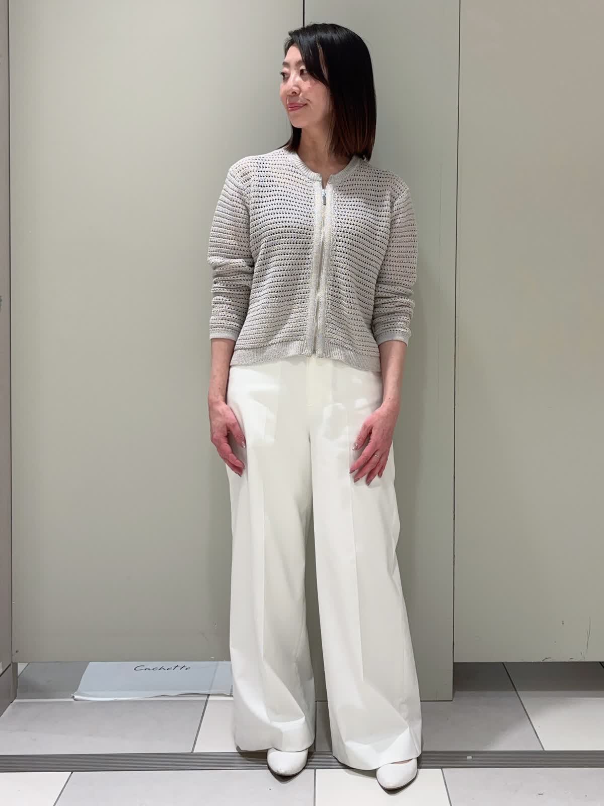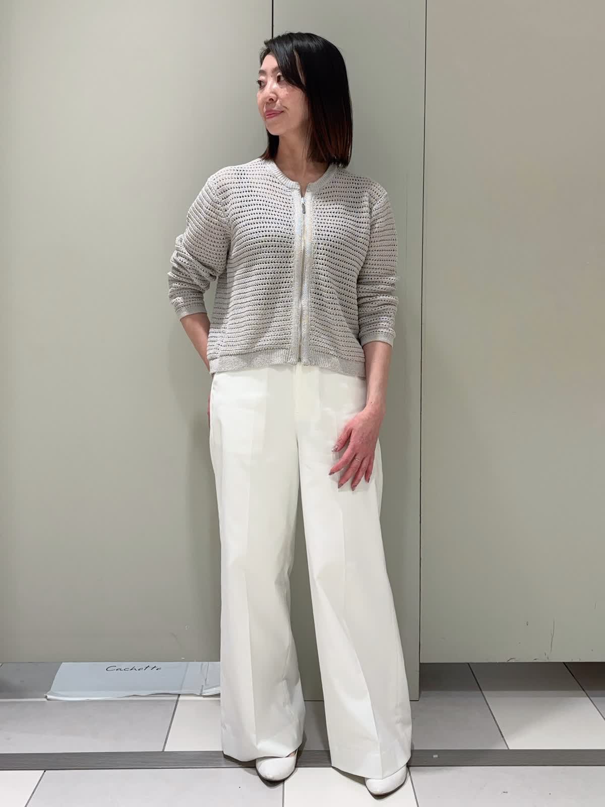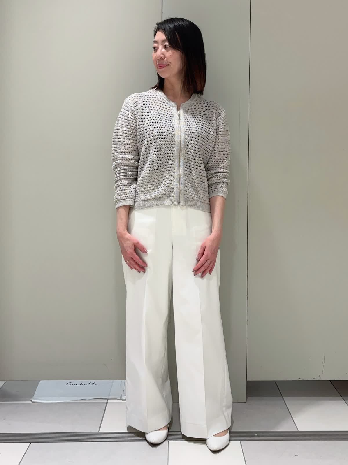 【着用サイズ】ニット:フリー パンツ:7号 【着用カラー】ニット:ミディアムグレー パンツ:オフホワイト 春にぴったりの透かし柄と清涼感のある肌触りが魅力の和紙混素材ジップアップニット。 着心地も良く、袖はシンプルなセットイン、着丈はショート丈ですっきりとした印象に。 ワイドパンツやスカート、ワンピースの羽織りなど、さまざまなコーディネートを楽しめます。
