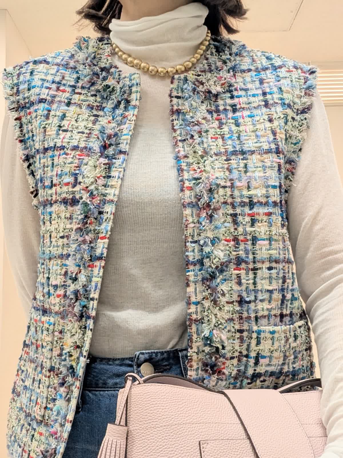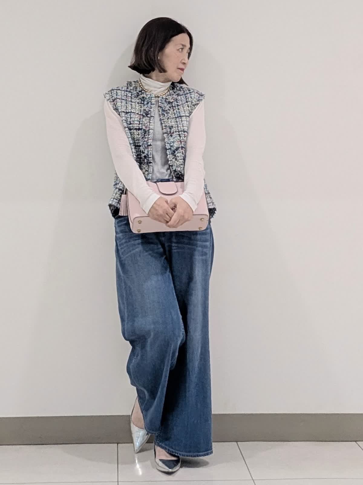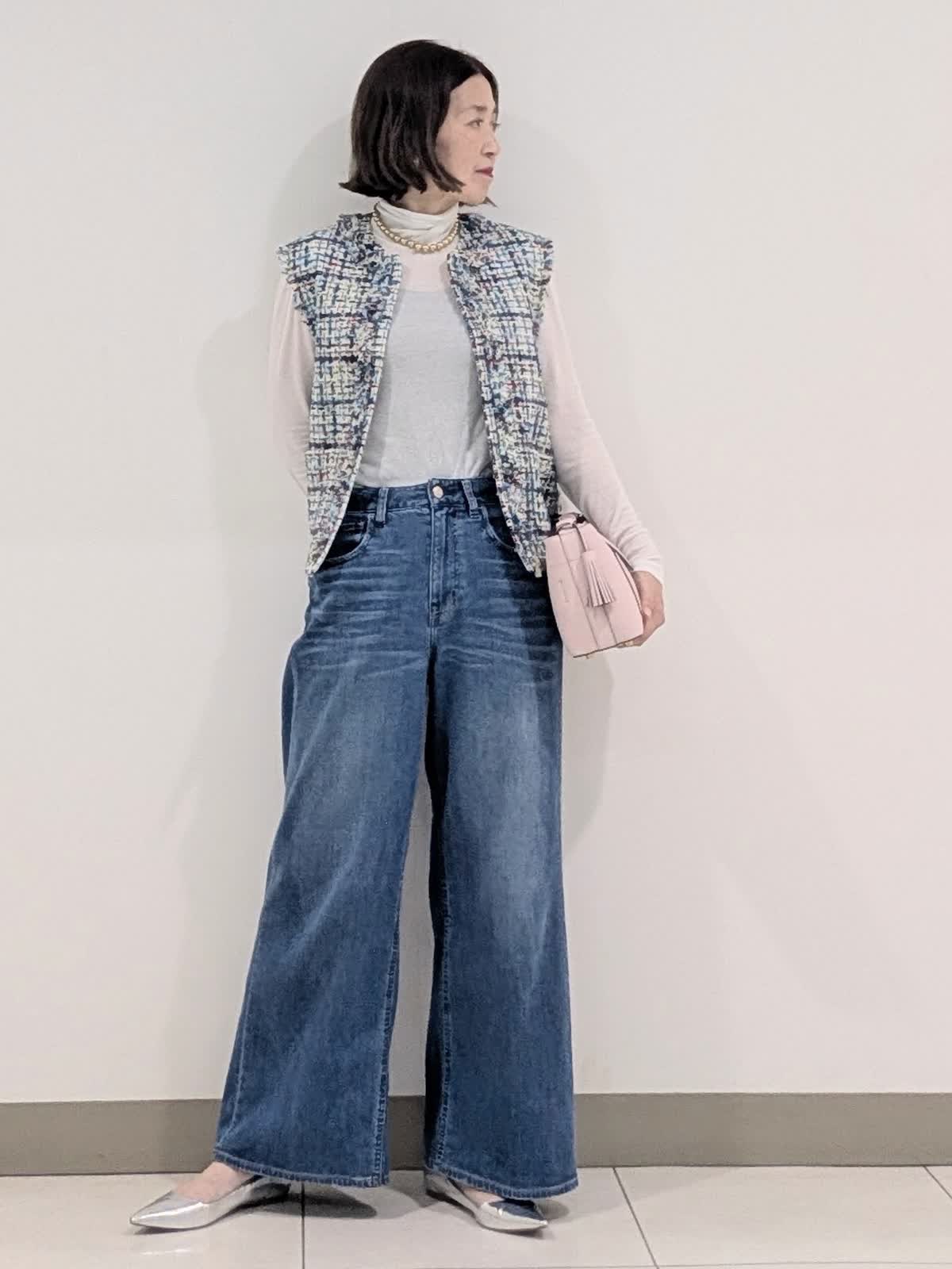 【着用サイズ9号】 《TOURNIER/トゥルニエ》 1865年フランスで創業したファンシーツィードメーカー。フランス色豊かなカラフルな色使いで高級感と存在感のあるファンシーツィードに定評があります。 色々なスタイリングを楽しめる、ワンランク上のコーディネートが楽しめます。 《Healthy DENIM》からウエスト・腰回りにリラックス感のある、ハイライズ・バギーデニムモデルを採用し、イネド別注に。レーヨンのようにしなやかで心地よく、穿き心地バツグンです◎ おすすめのインナーは、ずっと着ていたくなるようなしなやかでソフトな着心地のハイネックプルオーバー。レイヤードスタイルに欠かせないアイテムです。 アクセントのバッグはキャンディのシルエットのようなデザイン。毎日持ち歩きたくなるような可愛らしいバッグです。