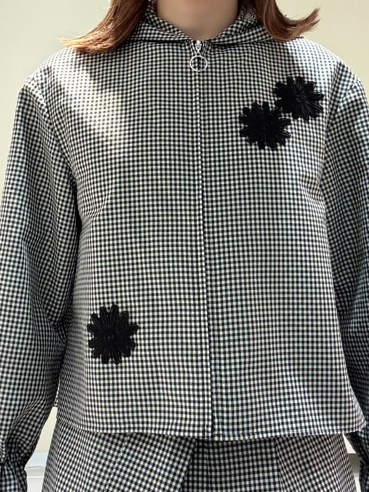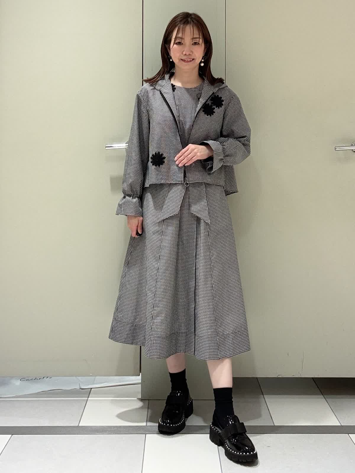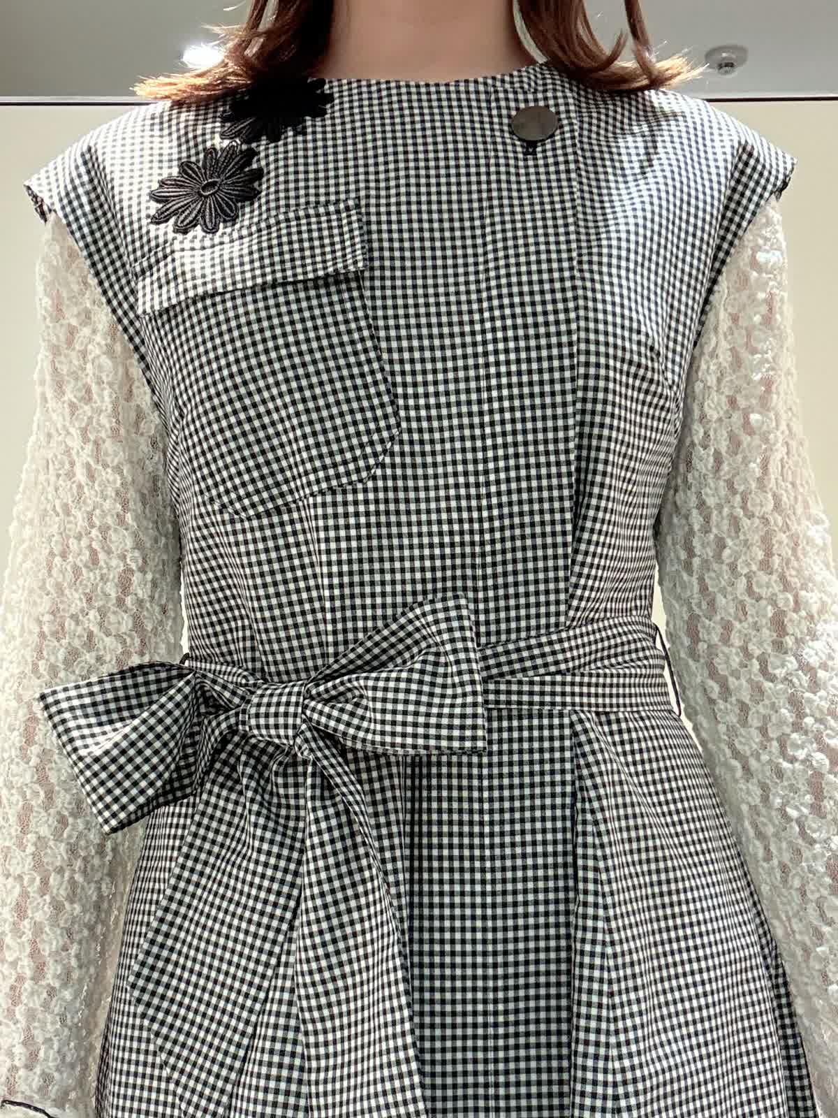 【着用サイズ:カラー】ワンピース:7号:格子 ブルゾン:7号:格子 カットソー:9号:オフホワイト 生地が薄いのでとても軽く着ていただけるチェックシリーズ。オリジナルのレースフラワーがどちらにも付いております。ブルゾンの後ろは、ギャザーフレアになってますので後ろから見ても可愛い羽織りです。ワンピースはインナーで調整いただくと今の季節から、夏は1枚で長い期間着ていただけます。
