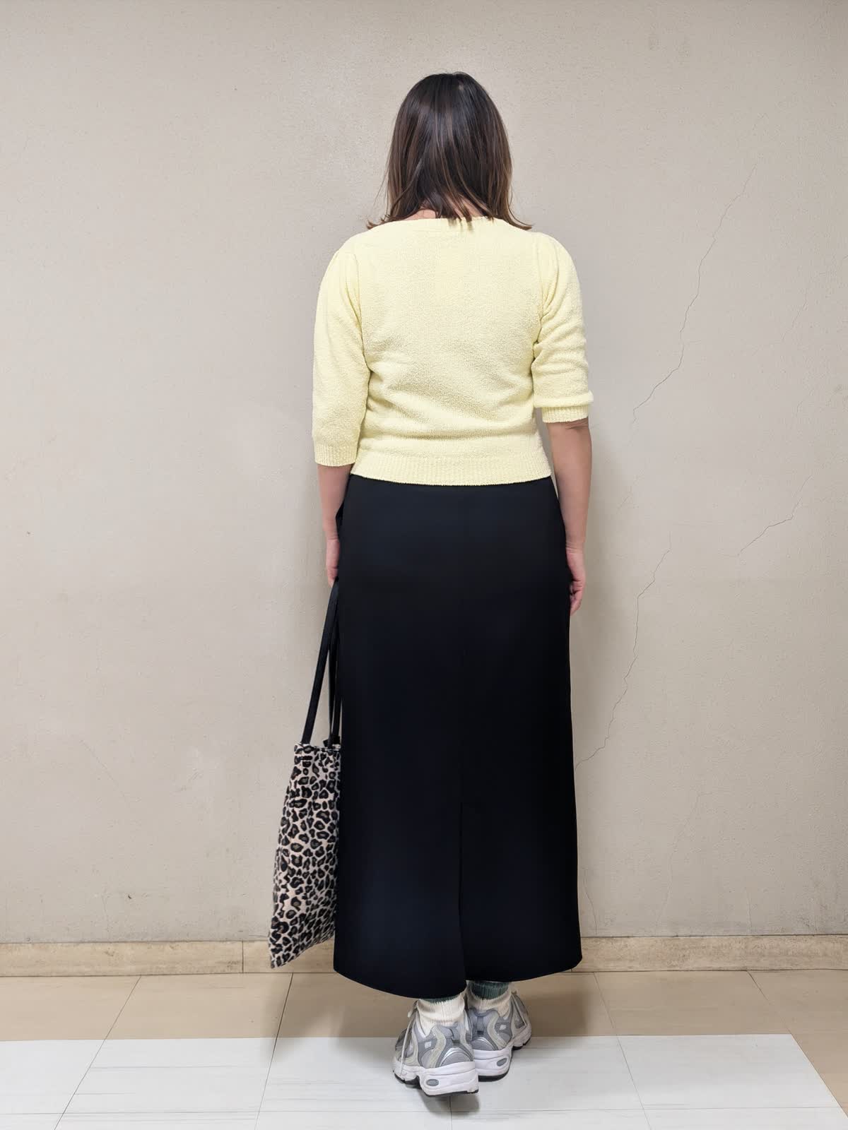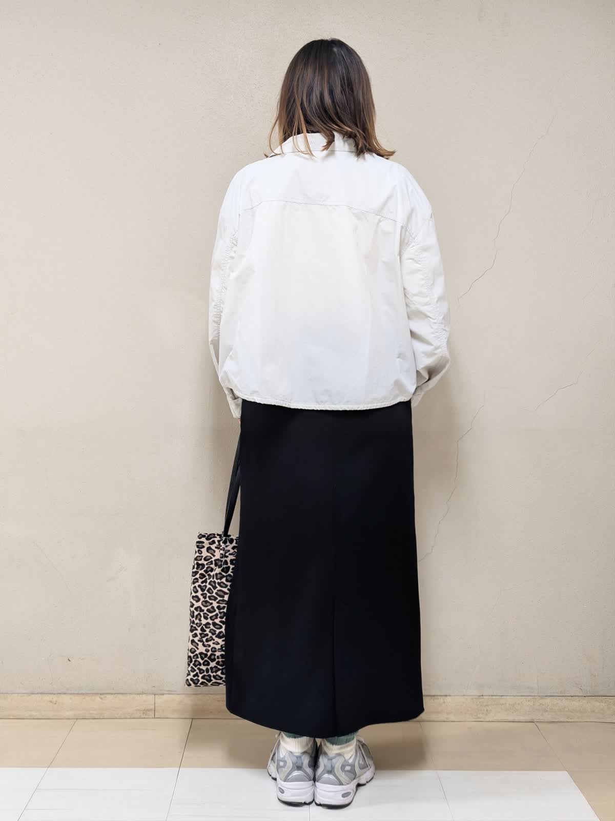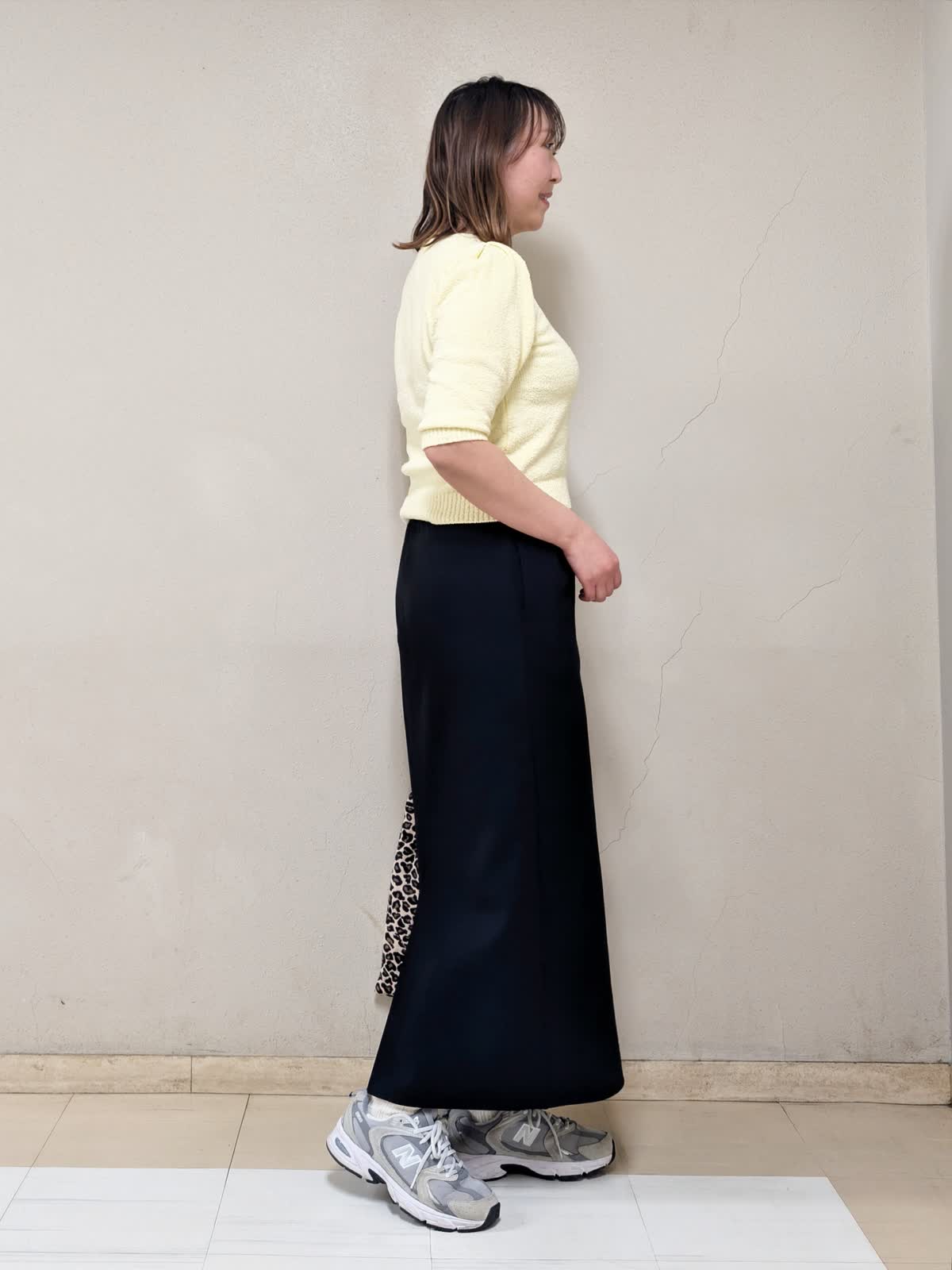 【着用サイズ】全て:フリー【着用カラー】ブルゾン:グレーベージュ ニット:イエロー スカート:ブラック 春のお出かけコーディネートです。ミモザのような柔らかイエローのニットを差し色に、きれいめカジュアルにまとめました。ブルゾンは短め丈で気軽に羽織れるデザイン。裾の絞りで広がり方を調節できるので、気分に合わせてシルエットを変えて着ていただけます。ニットはブークレの表面感のある生地で可愛いです。コンパクトな着丈なので、スカートやワイドパンツなど、ボリュームのあるボトムスとの相性が良いです。