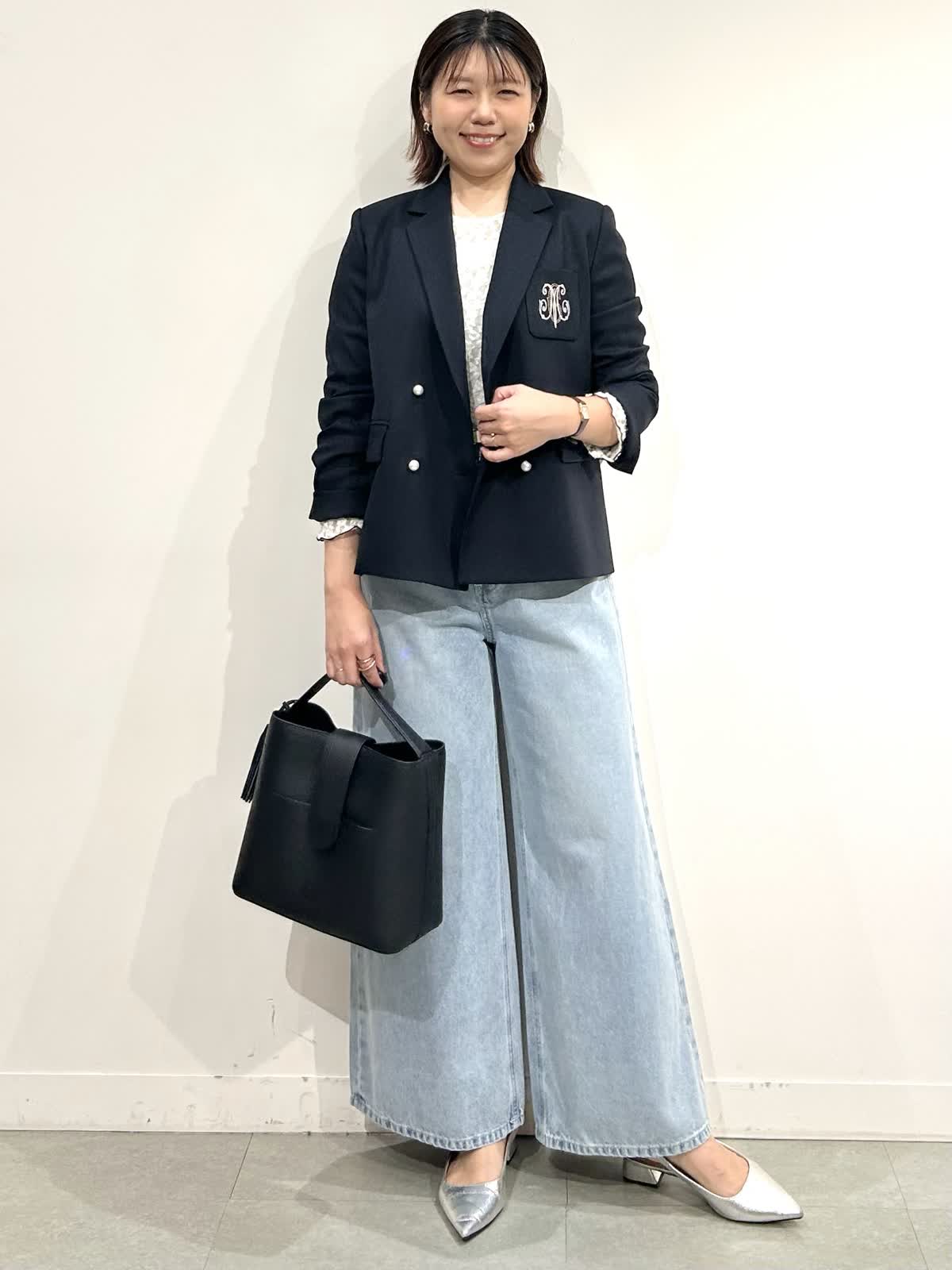 【着用カラー】ジャケット:ネイビー カットソー:オフホワイト デニム: サックス