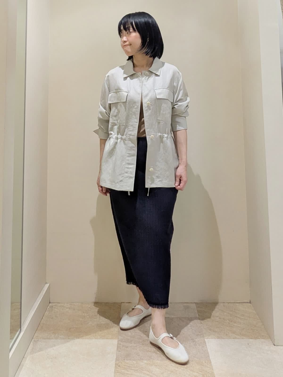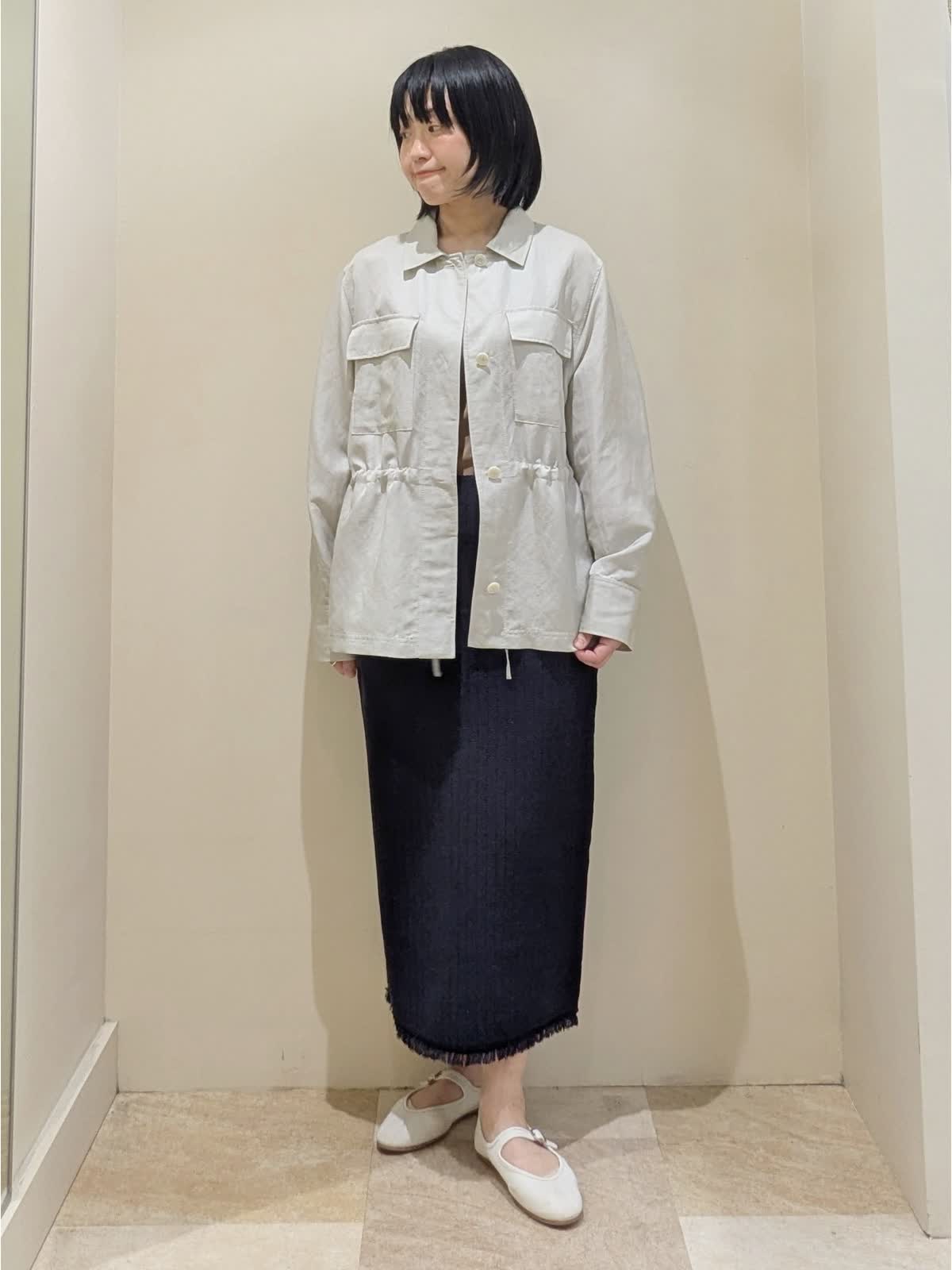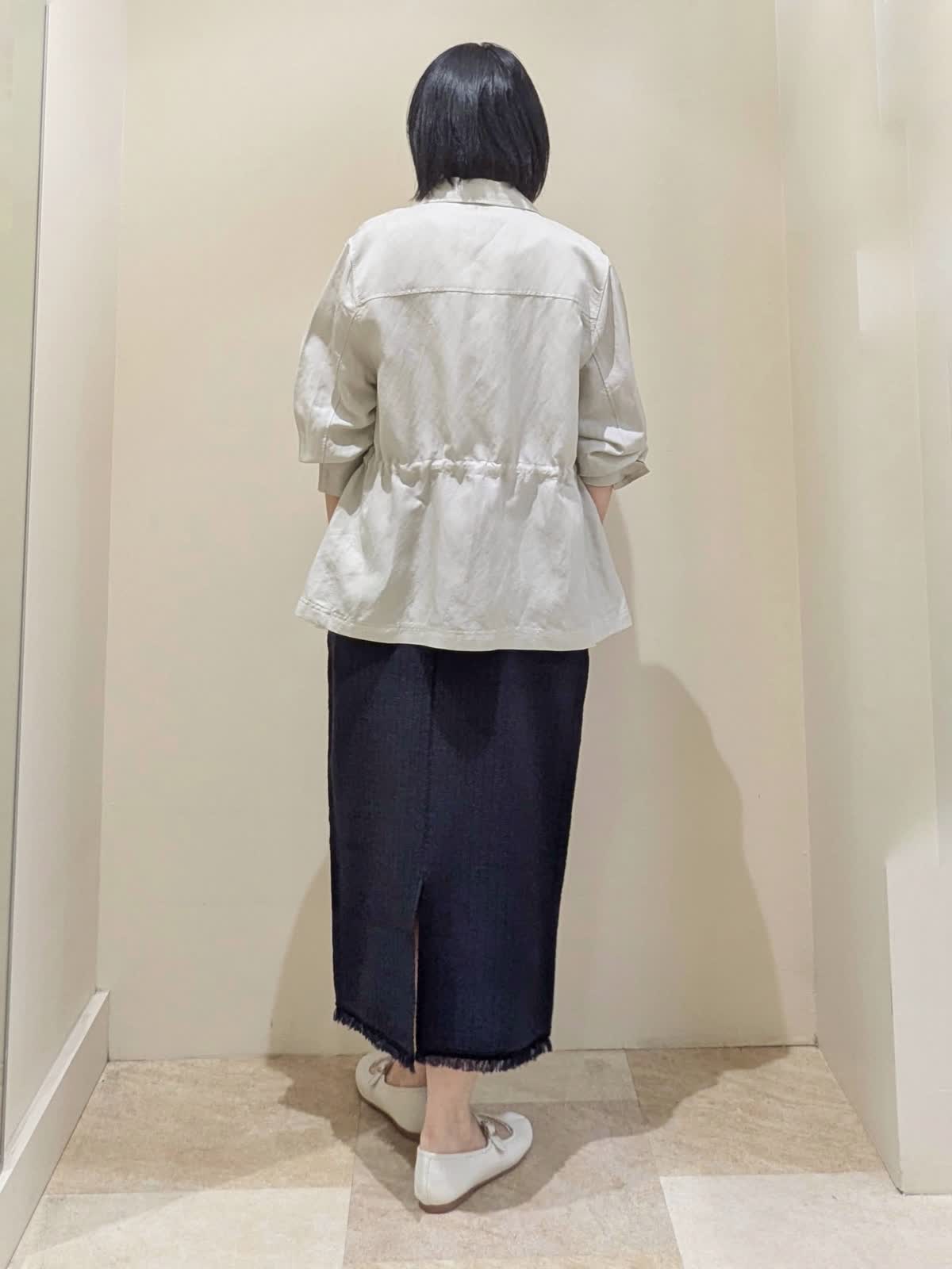 【着用サイズ】ジャケット/9号、スカート/フリー 【着用カラー】ジャケット/グレーベージュ、スカート/ネイビー 『コートより長く使える!おすすめジャケット』長い期間使える軽い羽織りは活躍間違い無し。お尻が隠れる安心丈ながら、ドロストコードで調整可能なのでバランスが取りやすいです。合わせたニットスカートは表情豊かなツイード、裾のフリンジもポイント、ノンストレスな着心地です。