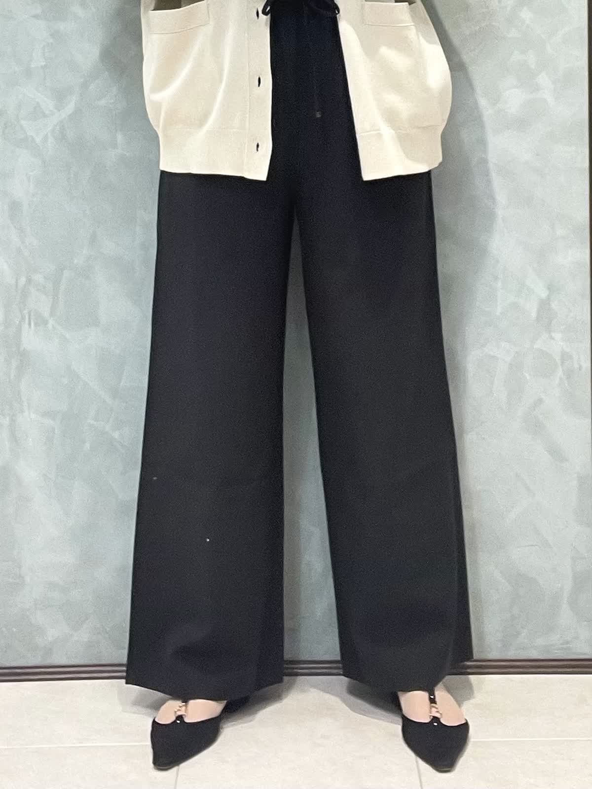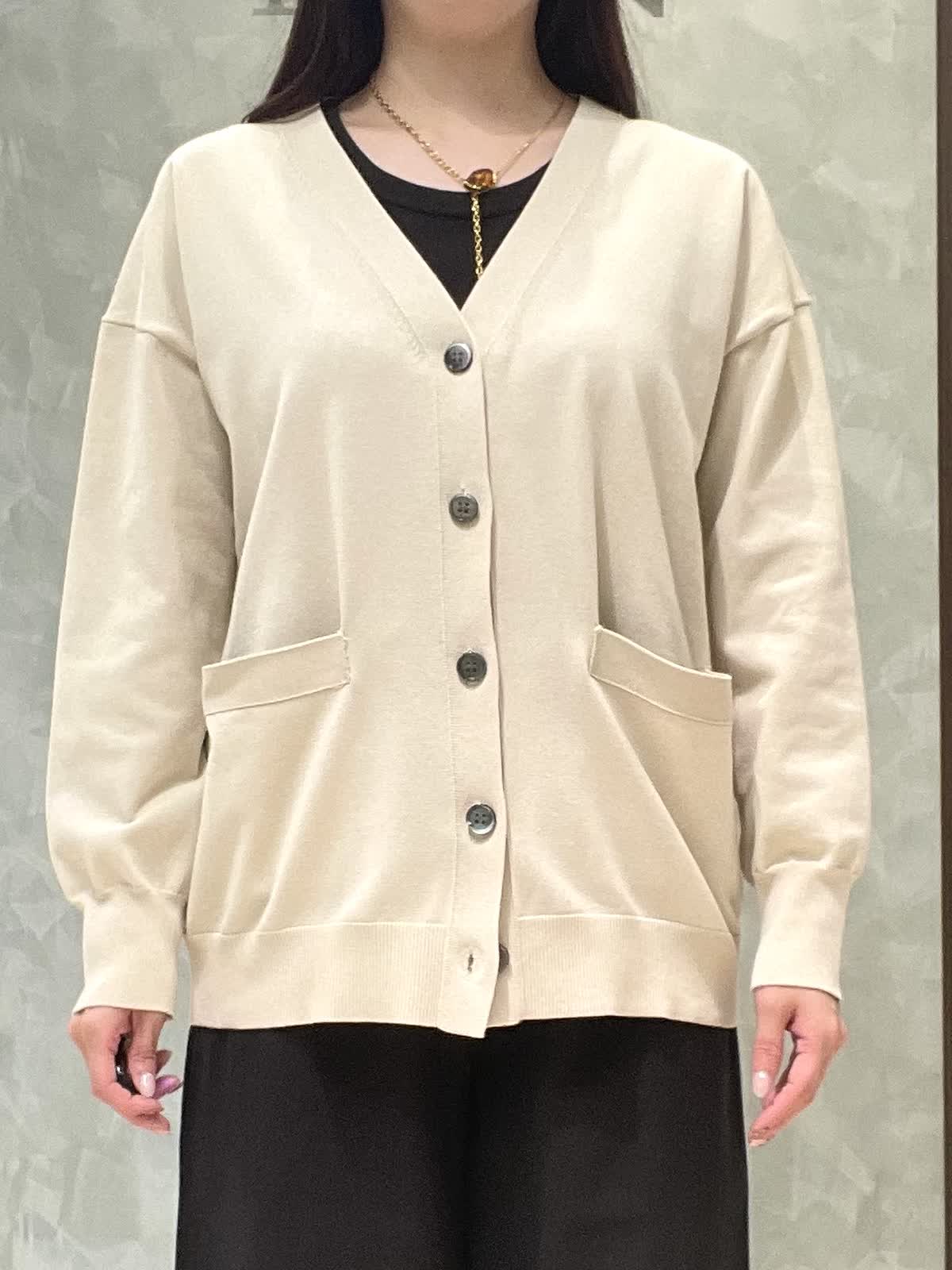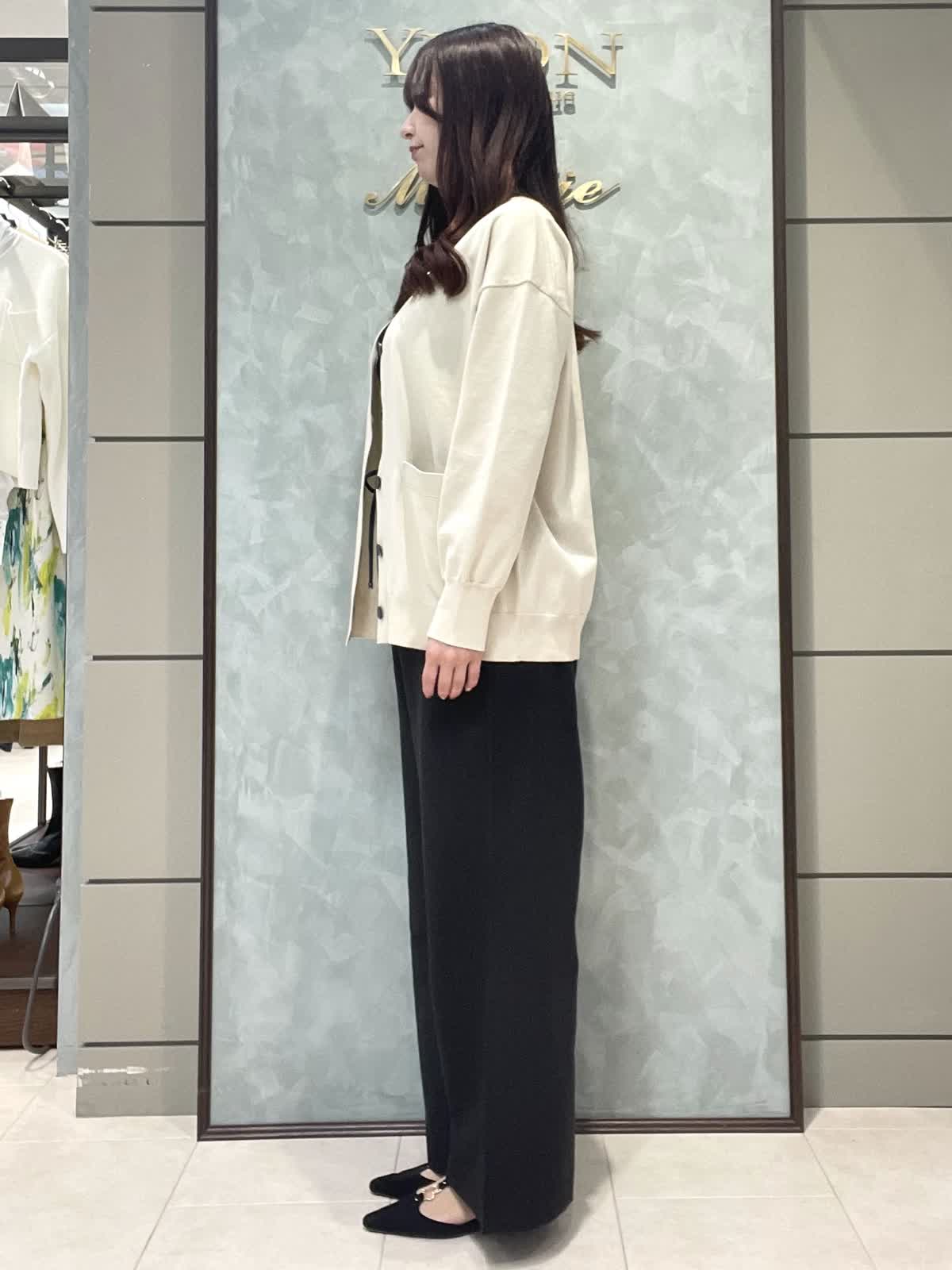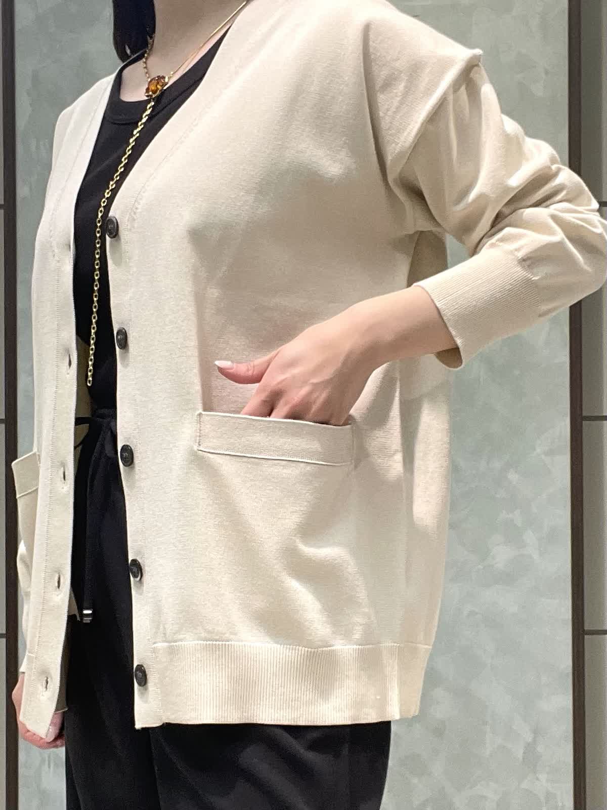 【着用サイズ】カーディガン、カットソー、パンツ:全て9号 抜け感のあるおでかけスタイリングです。カーディガンはベーシックな形でシーズンや流行関係なく着やすいです。程よく薄手なので、レイヤードスタイルやワンピースに肩掛けなど、色々な着こなしを楽しめます。インナーのタンクトップはしっかりした生地感ですがリブで伸縮性抜群です。植物由来の環境にも身体にも優しいお素材で、見せるインナーとしておすすめです。サイドスリット入り。パンツはリラックス感のあるワイドシルエットです。綿麻混なのでサラッと清涼感があり履き心地抜群です。オールゴムでウエスト調節できます。着丈は157センチでかかと上くらいです。