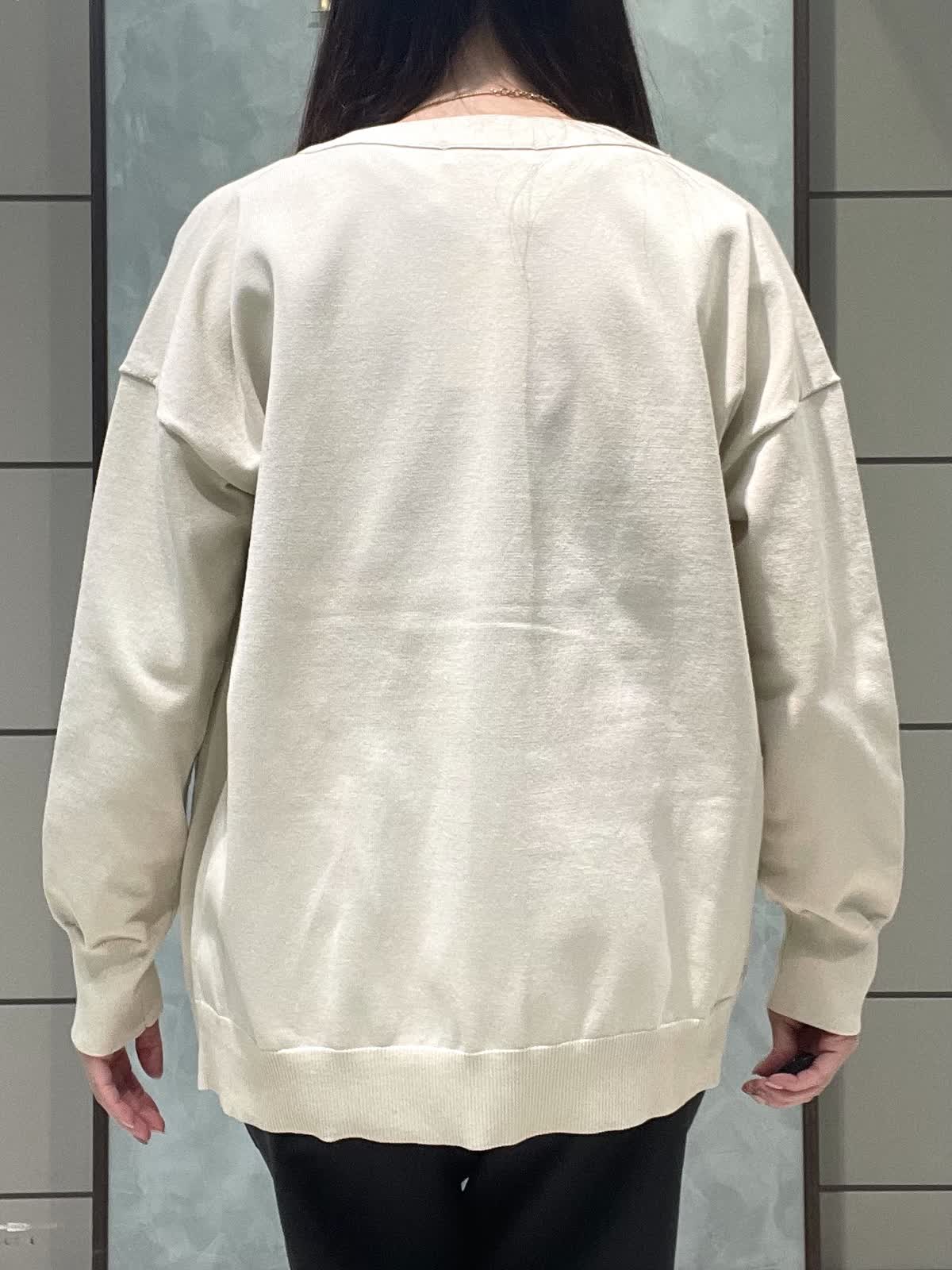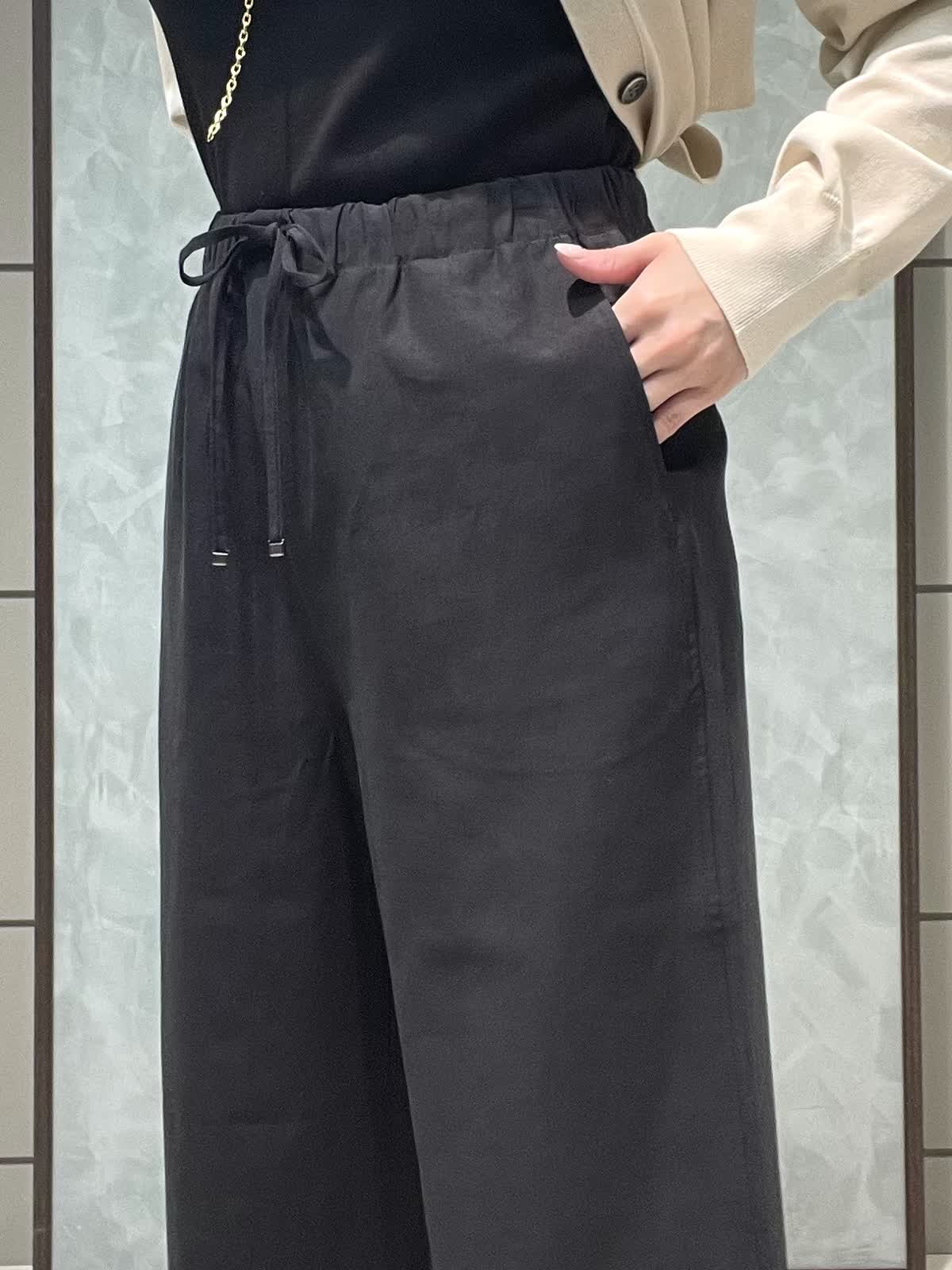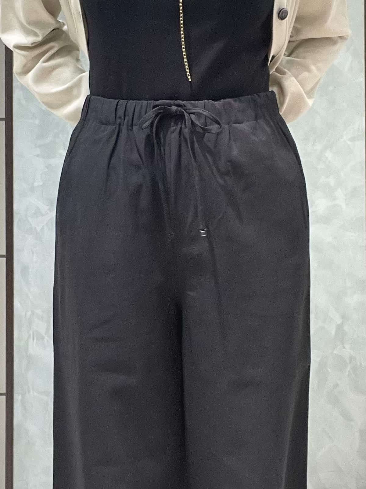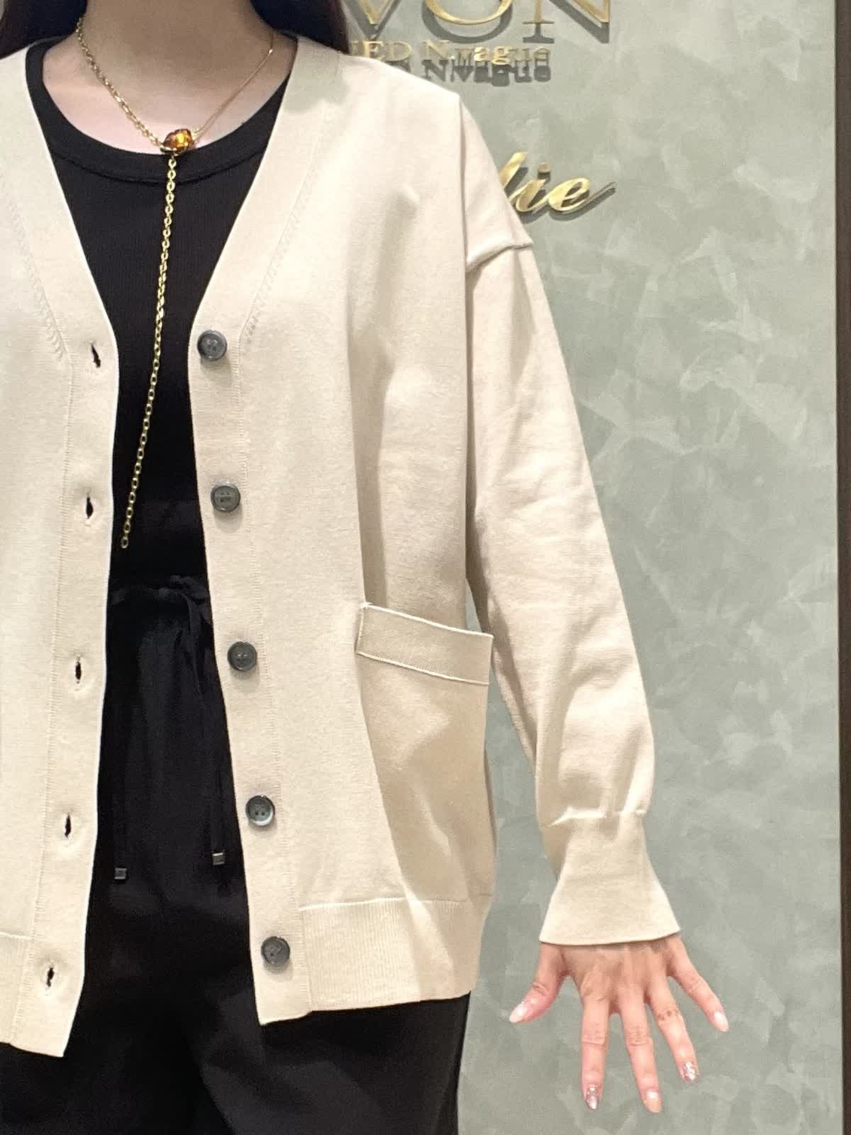 【着用サイズ】カーディガン、カットソー、パンツ:全て9号 抜け感のあるおでかけスタイリングです。カーディガンはベーシックな形でシーズンや流行関係なく着やすいです。程よく薄手なので、レイヤードスタイルやワンピースに肩掛けなど、色々な着こなしを楽しめます。インナーのタンクトップはしっかりした生地感ですがリブで伸縮性抜群です。植物由来の環境にも身体にも優しいお素材で、見せるインナーとしておすすめです。サイドスリット入り。パンツはリラックス感のあるワイドシルエットです。綿麻混なのでサラッと清涼感があり履き心地抜群です。オールゴムでウエスト調節できます。着丈は157センチでかかと上くらいです。