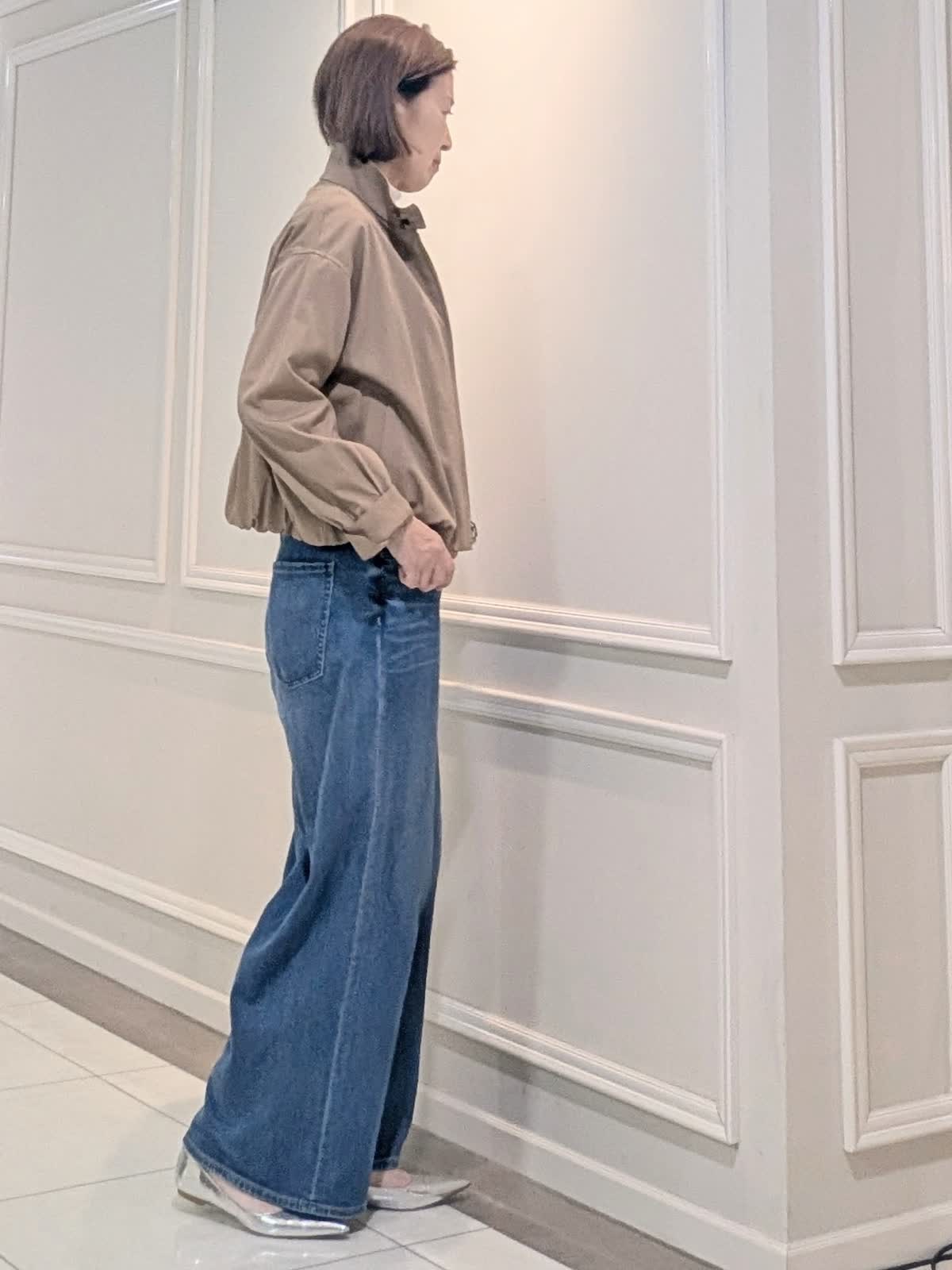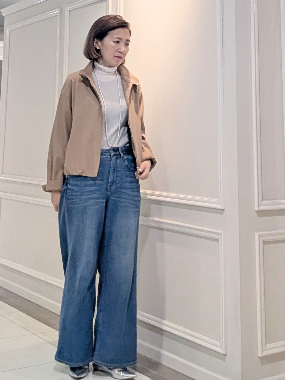 【着用サイズ9号】 おすすめの程よいリラックス感のあるシルエットがこなれた着こなしを叶えてくれるスタンドカラーブルゾン。フロントジップがモード感のある一着。 ずっときていたくなるようなしなやかでソフトな着心地のハイネックプルオーバー。程よいシアー感でスタイリングに抜け感を演出します◎ 合わせたデニムは、 イネド別注《HealthyDENIM》 ワイドバギーデザイン 柔らかく軽い素材でこれからの季節におすすめのボトムスです。