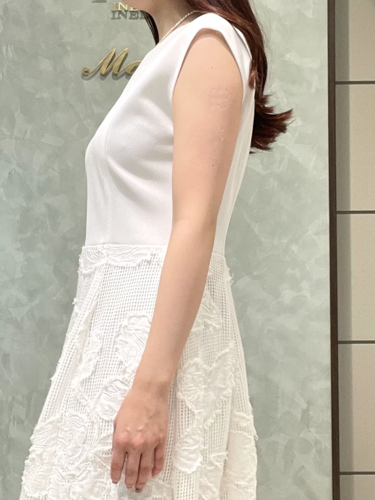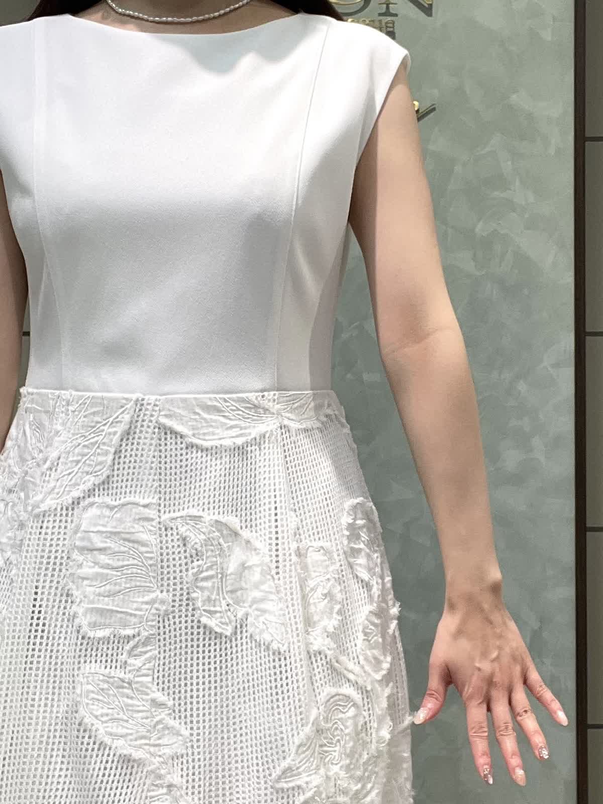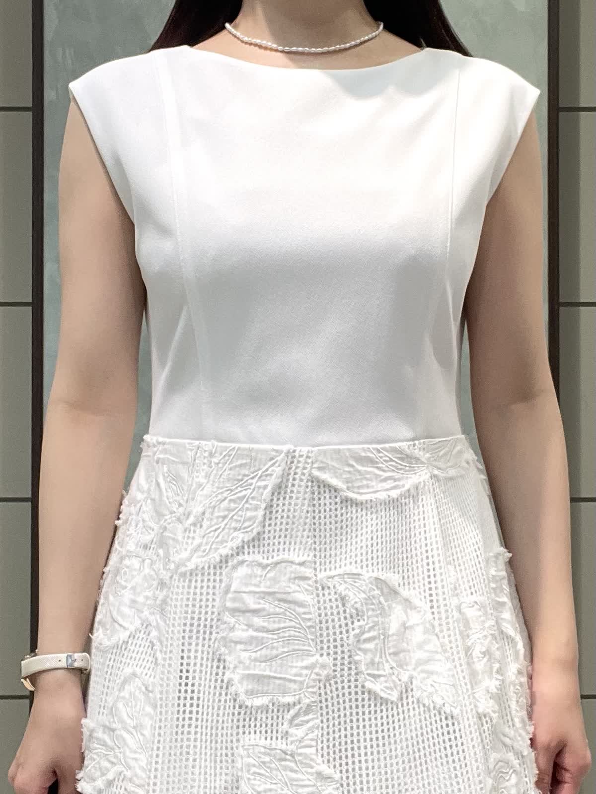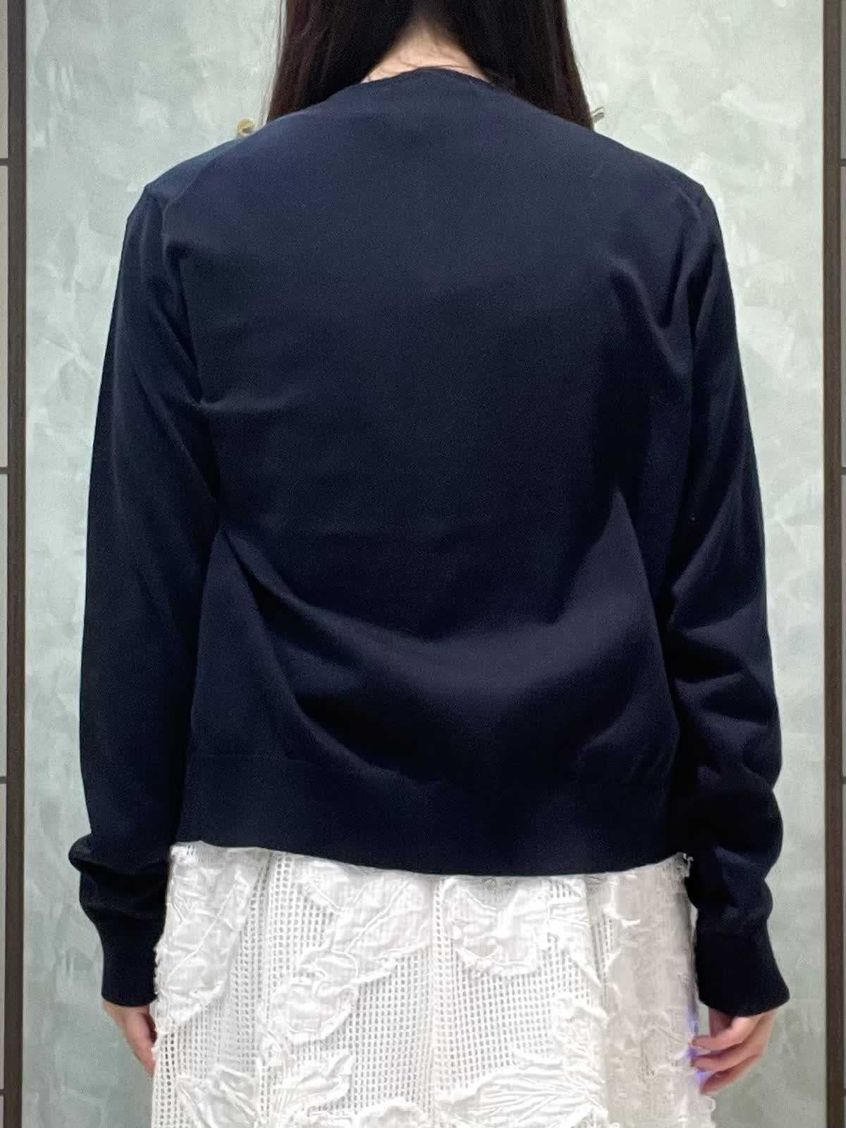 【着用サイズ】カーディガン、ワンピース:共に9号 お仕事、お顔合わせ、パーティーなど幅広いキレイめの場面で活躍するスタイリングです。 カーディガンは超ハイゲージでカットソーのようなさらっとした着心地です。ベーシックな形で流行り廃りなく、長く着用できます。ワンピースはさらっとしたカットソー生地にメッシュ地のドッキングです。首元はすっきり、お袖は肩が華奢見えするカットラインです。白でも着膨れしない、細見えシルエットです。後ろファスナー、ポケットなし。着丈は157センチでふくらはぎ下です。