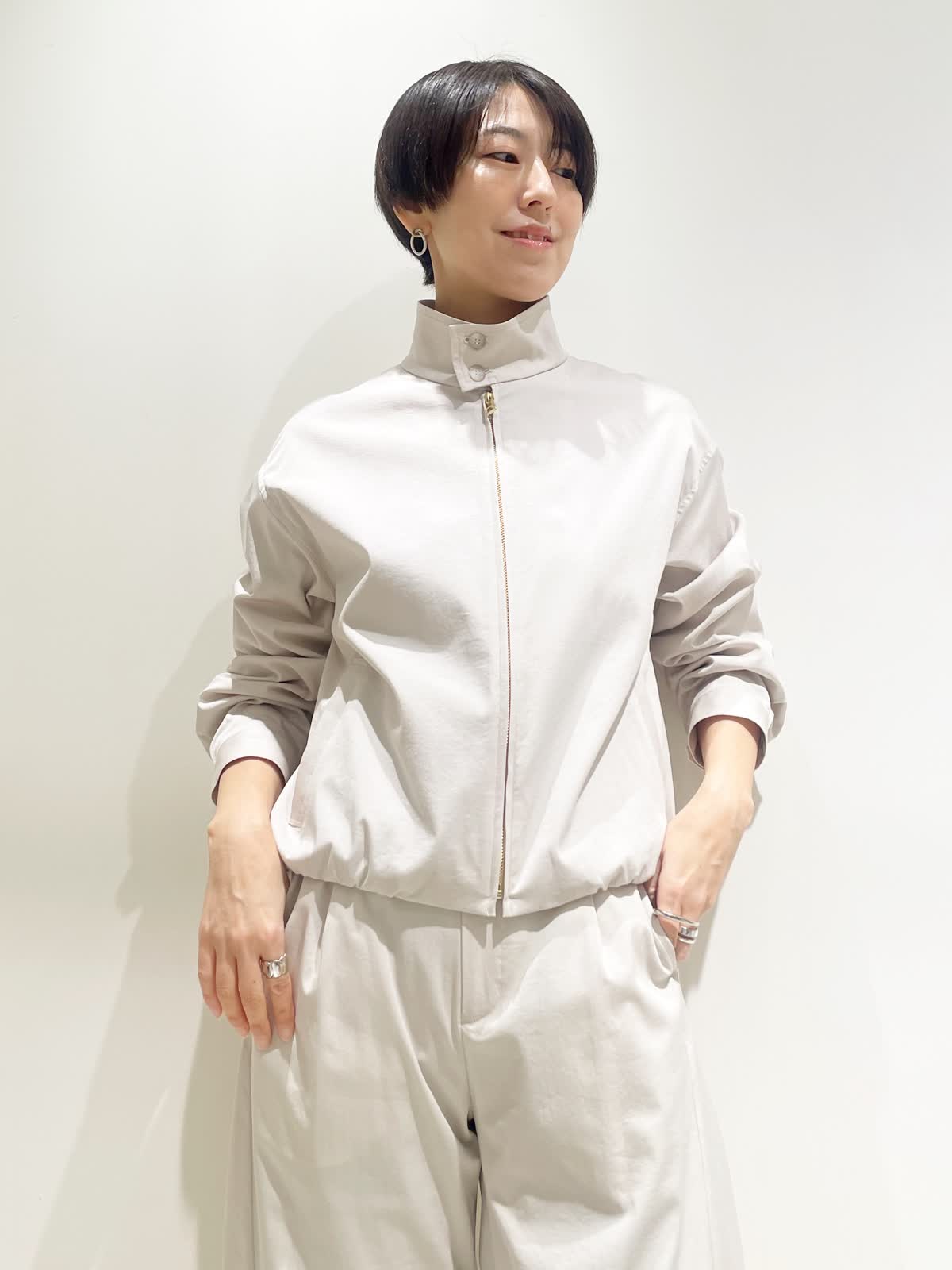 【着用サイズ】全て9号 【カラー】ブルゾン/パンツ:グレーベージュ ニット:オフホワイト ストール:ホワイト ネックレス:ゴールド 【コーディネートテーマ】 セットアップで決まる大人のカジュアルコーデ。 トレンドのバレルパンツがポイントです。 【サイズ感】 ブルゾン:標準 パンツ:標準 ウエストアジャスターで調整可能な為、ゆるっとシルエットがお好みであれば普段7号の方でも履けます。 ニット:標準 163p 普段9号サイズ 骨格ウェーブで上半身に比べてヒップがやや大きい