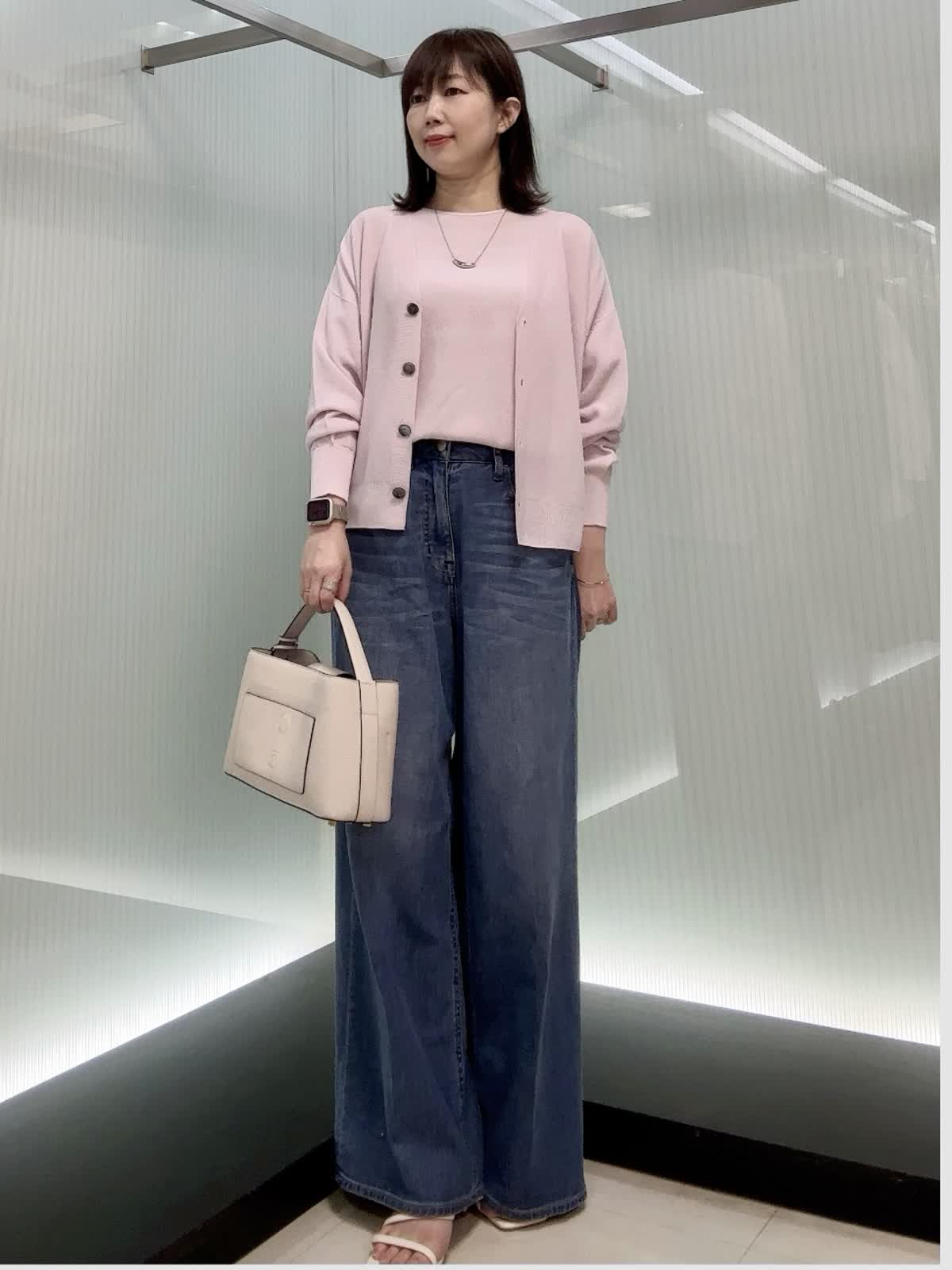 【着用サイズ】全て9号 優しいピンクカラーのニットは夏場まで着回せるサラッとした着心地と五分袖ドルマンです。 便利なカーディガンはたっぷりとしたシルエットで身体のラインを気にせず着ることができます。