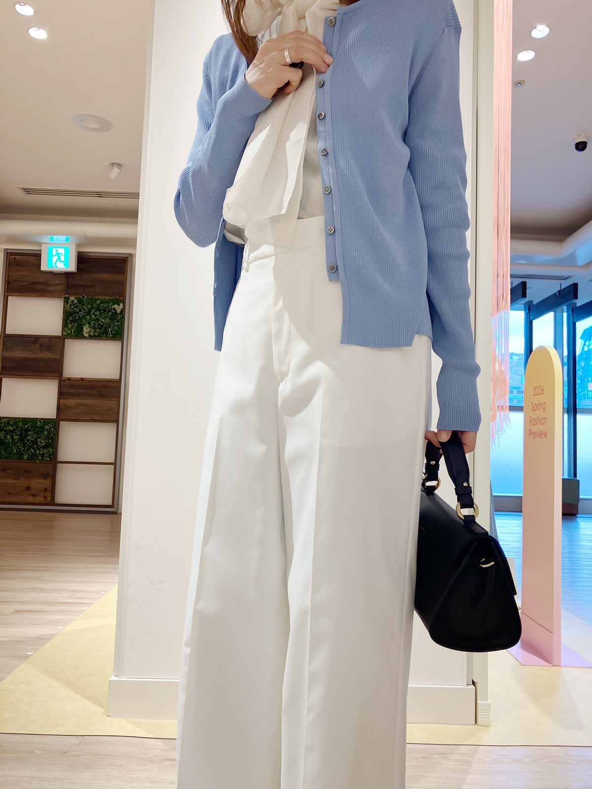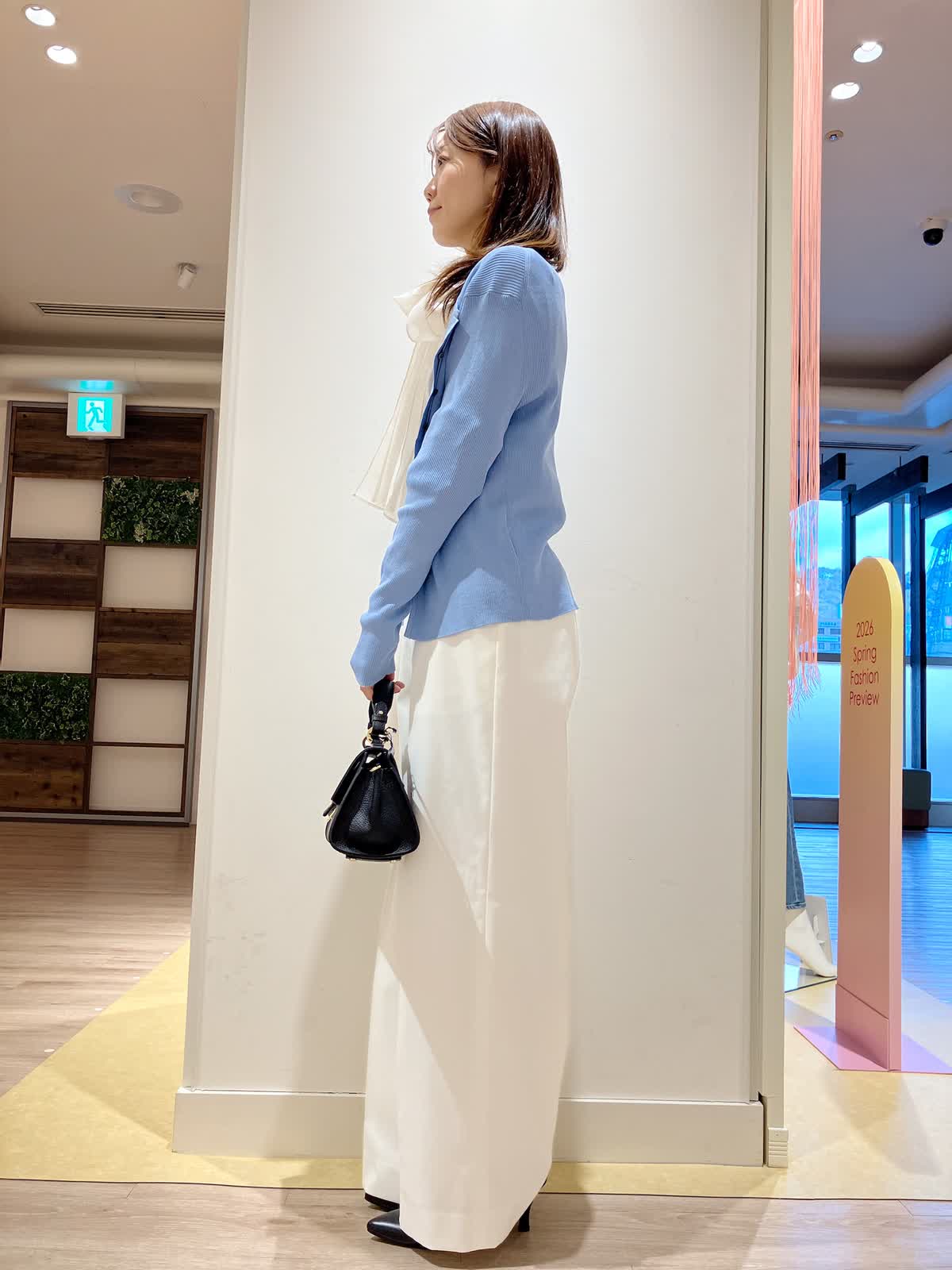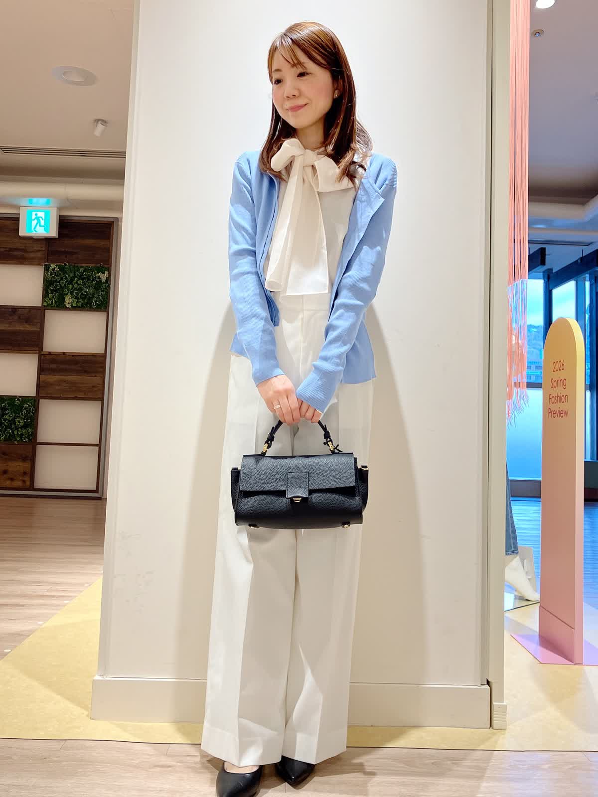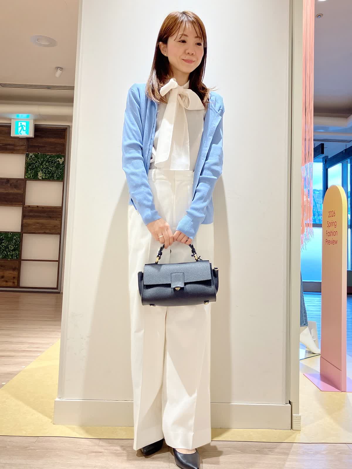 【着用サイズ】カーディガン:9号 ブラウス:9号 パンツ:7号 【着用カラー】カーディガン:ブルー ブラウス:アイボリー パンツ:オフホワイト コーディネートのテーマは通勤スタイリングです。 ブルー×ホワイトの爽やかな印象のコーデは、春の通勤にぴったり。職場でも好感度アップ。 全てウォッシャブルなので、今からの季節にぴったりのアイテムばかりです。